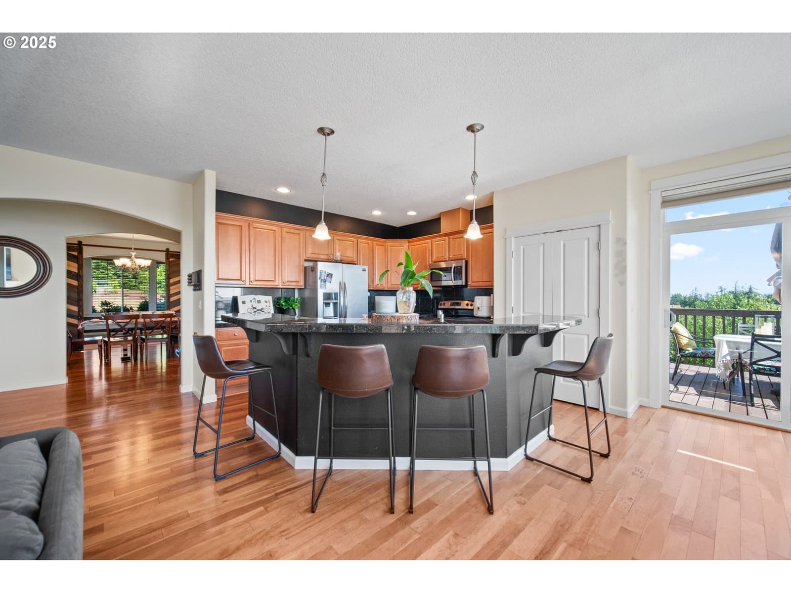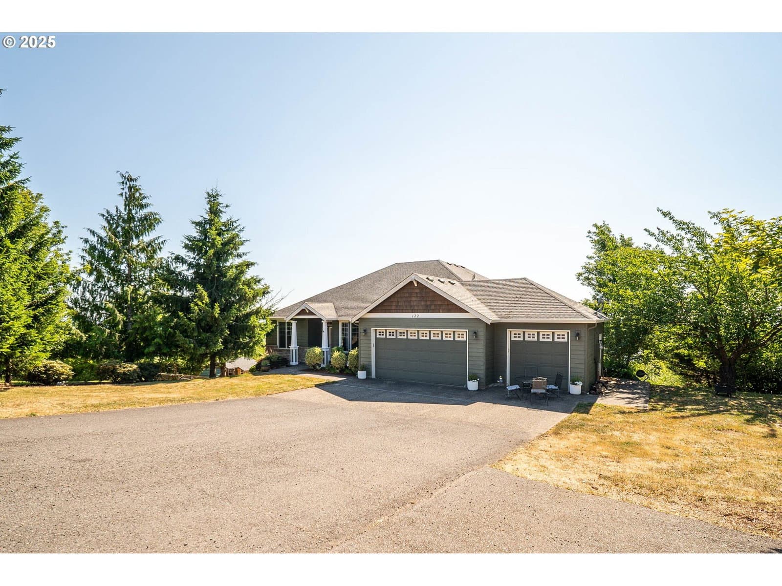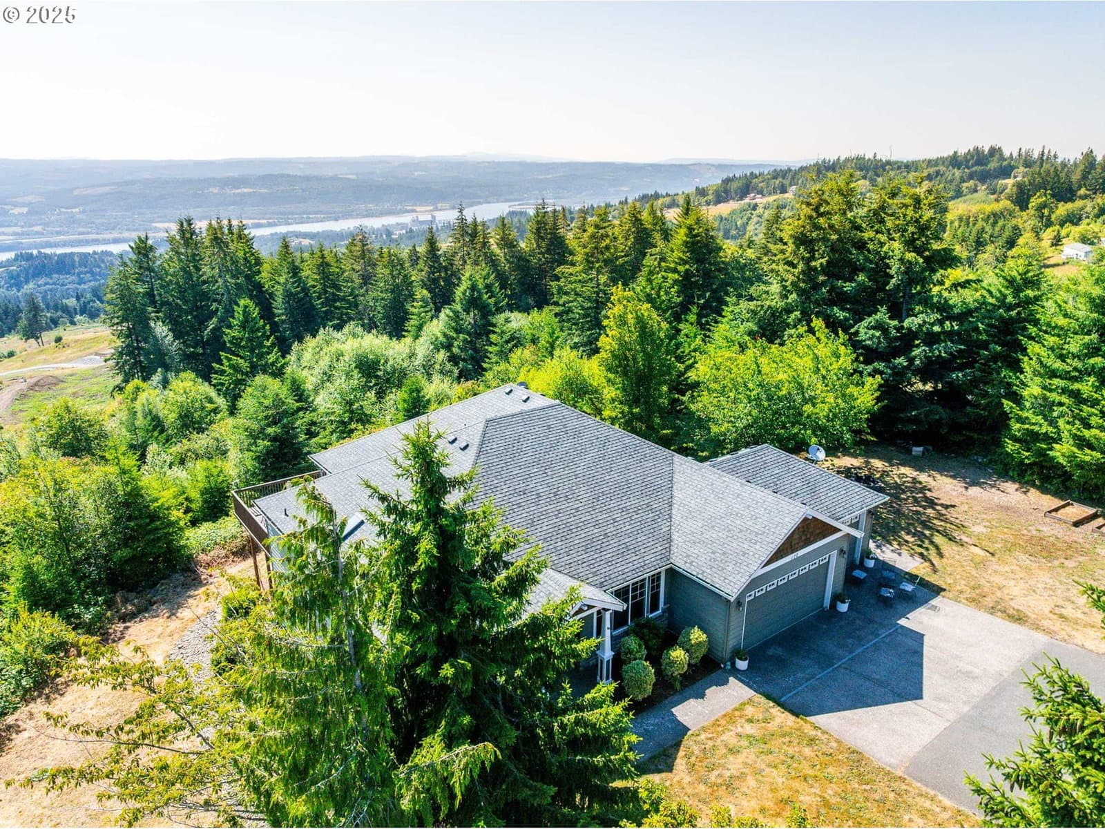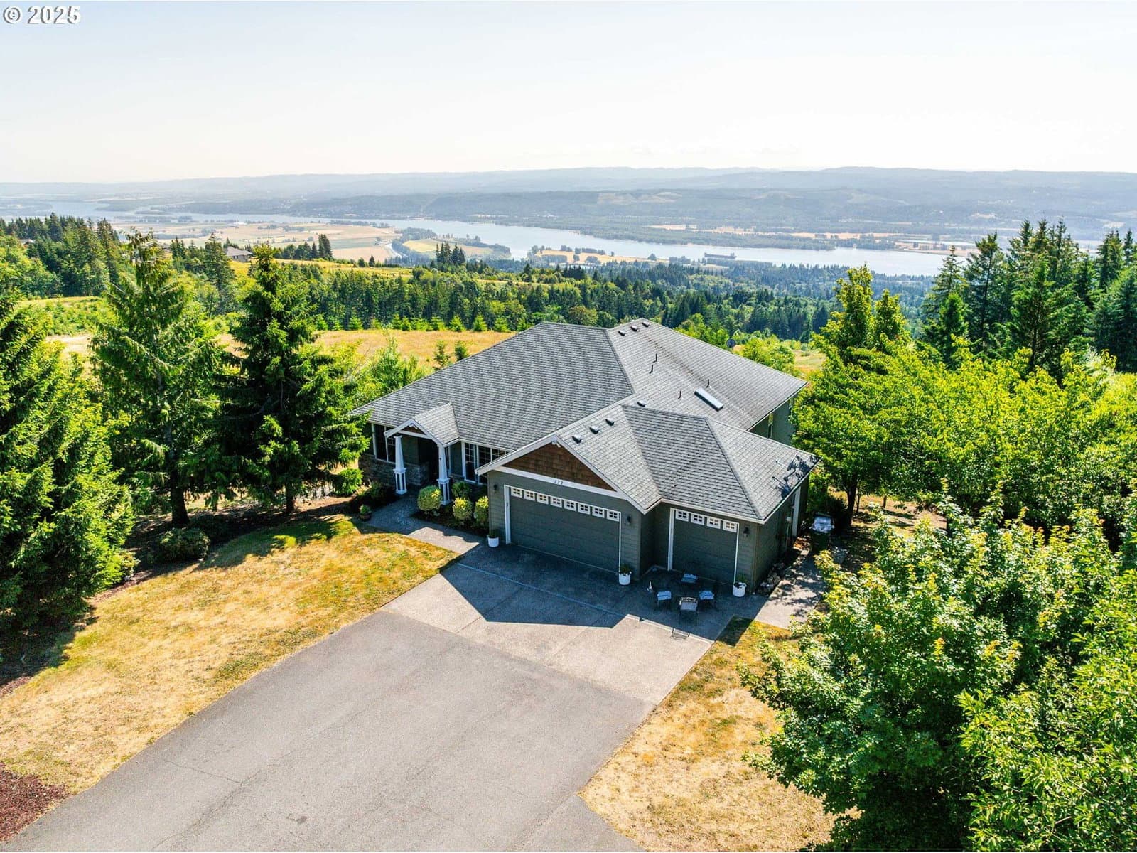 Space and sweeping views! This spacious home offers one level living plus a large daylight basement. At the end of a private gated road, you'll find incredible views of the Columbia River. Enjoy them from your deck. Hardwood floors on the main in an open concept with vaulted ceilings. Granite tile countertops, stainless appliances, pantry. Great for entertaining with formal and informal living and dining spaces. Three bedrooms on main floor including large primary suite. Lower level includes a full bath and has flexible space for 4th bedroom. Pool table stays! Attached three car garage plus extra parking outside. Approximately 2 acres with chicken coup and raised bed garden space. Seller offering a carpet credit for your fresh start. Come see what life on Green Mountain offers!
