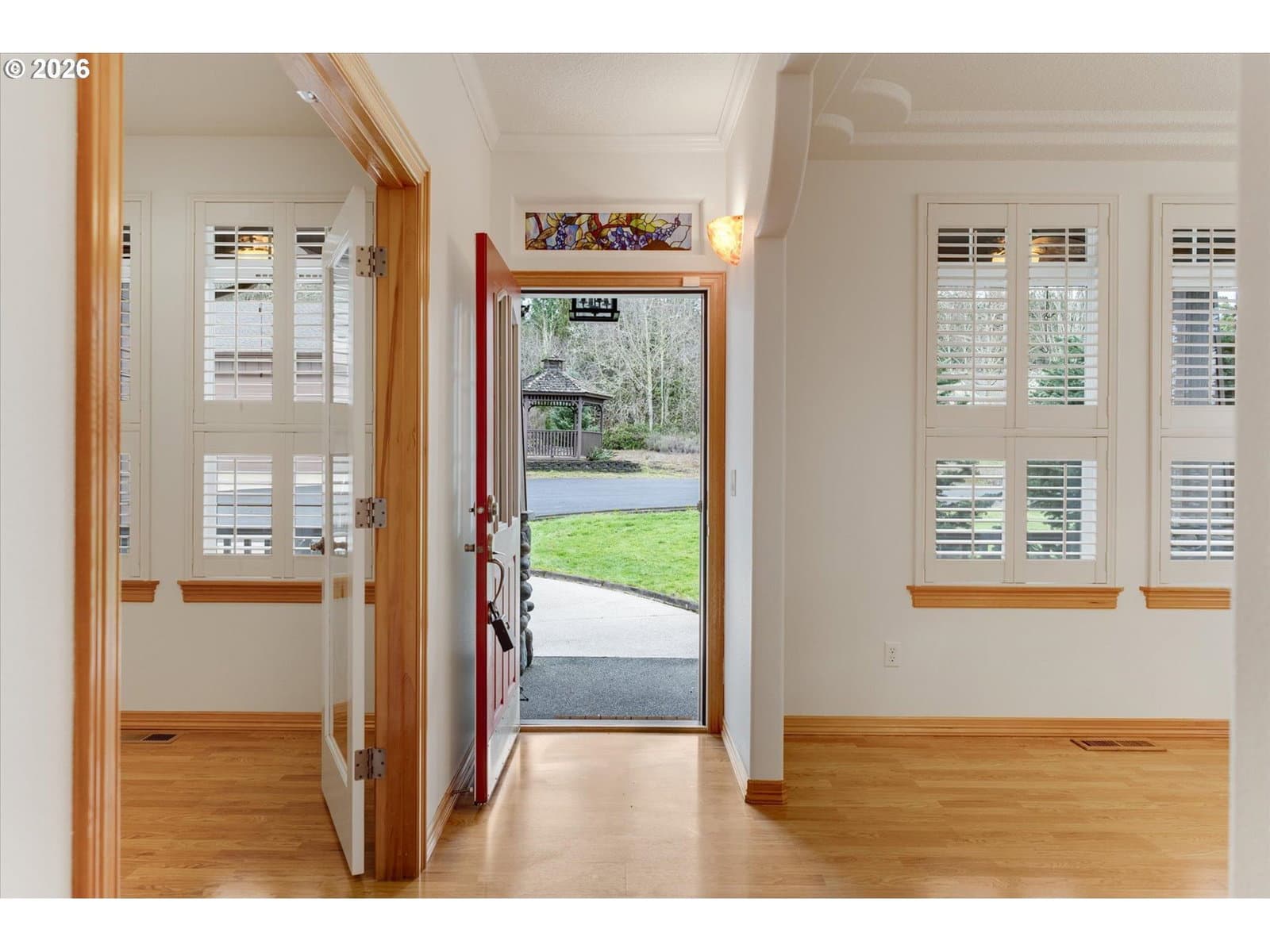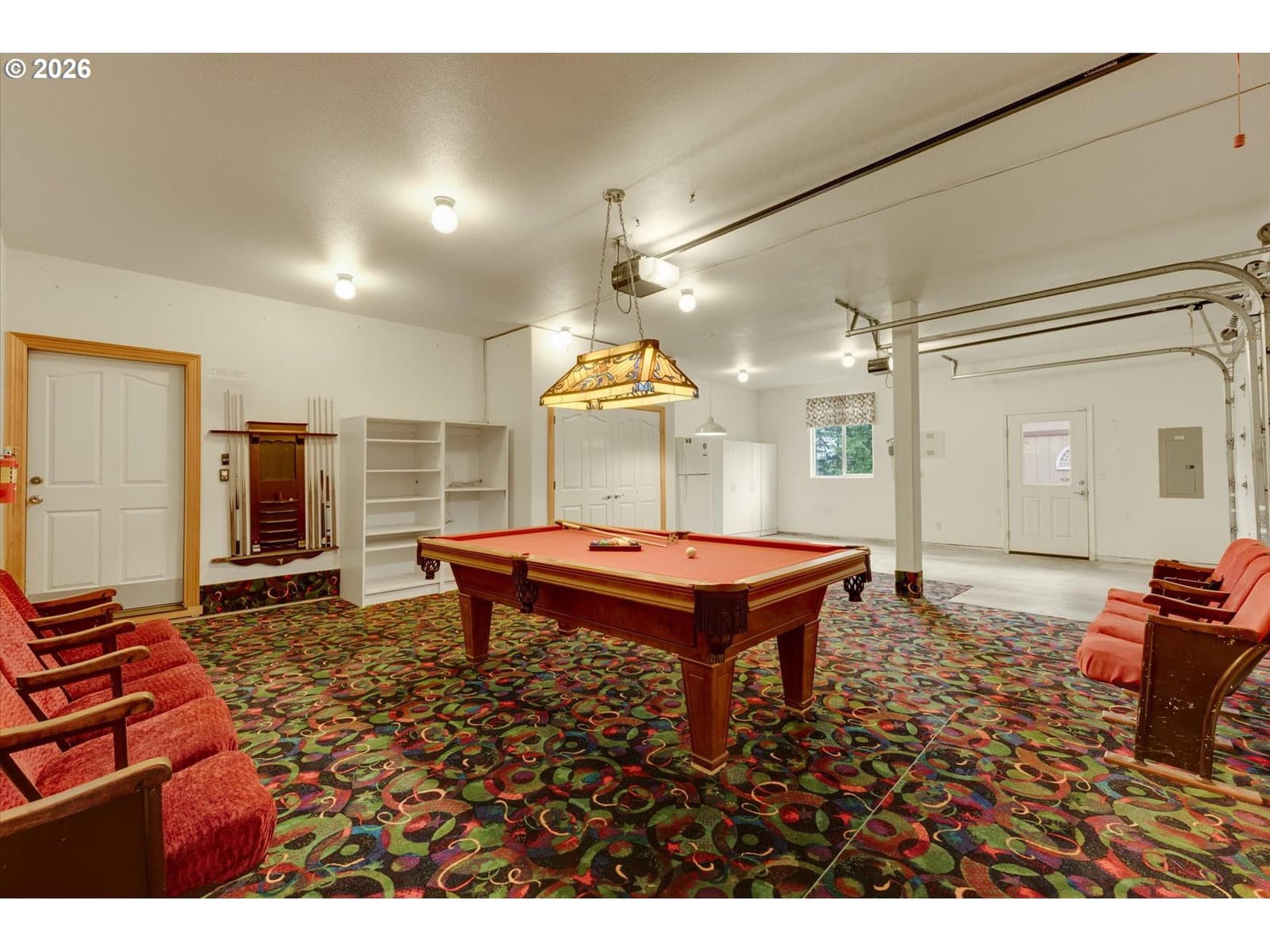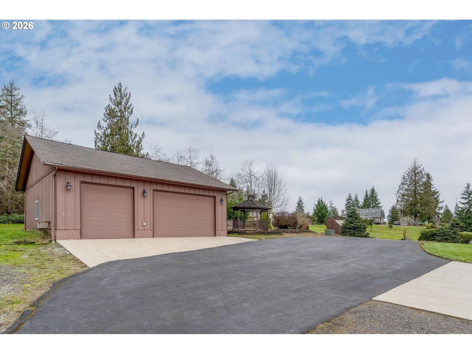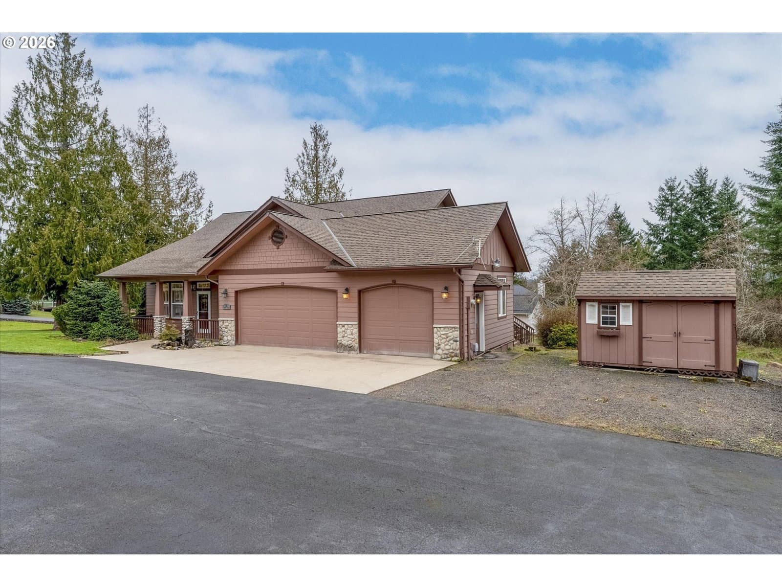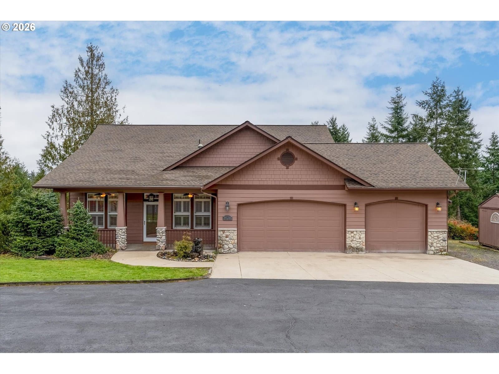 Tucked away on nearly two private acres, this quality-built home offers peaceful country living with easy access to town. The great room design features vaulted ceilings, formal dining room and office, abundant natural light, and a stunning river rock fireplace. The main-level primary suite includes a soaking tub and two walk-in closets, while maple cabinetry and thoughtful finishes highlight the home’s craftsmanship throughout. Upstairs you’ll find two additional bedrooms, one full bath and a spacious bonus room—ideal for work, guests, or hobbies. Enjoy year-round comfort with a heat pump, ample parking with a three-car garage plus a three-bay shop, and relax on the deck overlooking a serene, treed setting. Designed for both comfort and entertaining, the attached three-car garage includes an incredible finished party room complete with carpet and a pool table—ideal for game nights and gatherings. Just 10 minutes to I-5 and close to the lake—privacy, space, and convenience all in one.