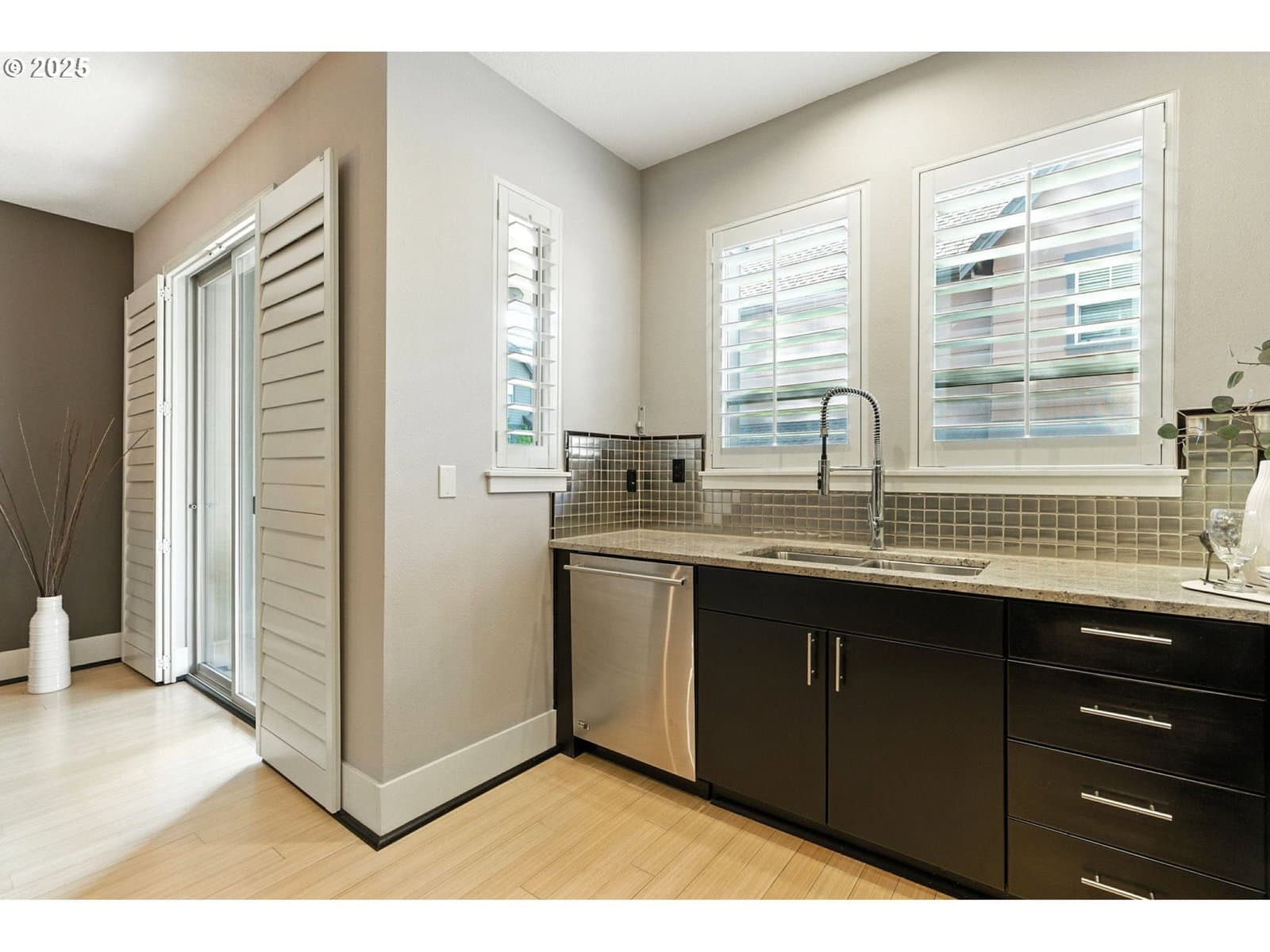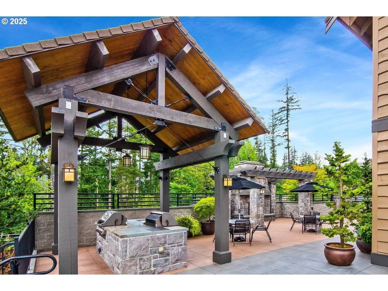 A standout home at an exceptional price. Experience refined, carefree living in Renaissance at Peterkort Woods, one of Washington County’s most prestigious townhome communities. This sophisticated, lock-and-leave residence features sleek bamboo flooring, curated designer paint tones, and the modern loft package. The living room offers a contemporary fireplace with built-ins, while the kitchen boasts granite counters, stainless appliances, a gas cooktop, and ample workspace. The dining area opens to a covered deck, perfect for morning coffee or relaxing evenings. Upstairs, the primary suite includes a spa-inspired ensuite and a large walk-in closet. Two additional bedrooms add flexibility. The lower level offers a versatile bonus room with surround sound and extra storage, plus an EV-ready two-car garage and built-in vacuum. Set within a meticulously maintained community with manicured grounds, walking trails, a private clubhouse, swimming pool, and access to the scenic Merritt Park trail system, this home offers unparalleled convenience. Enjoy nearby shopping, dining, parks, and transit options—plus proximity to major employers like Nike, Intel, Providence St. Vincent, and the MAX light rail. Whether as a primary residence or sophisticated second home, this property delivers an elevated townhome experience in a sought-after neighborhood—with the added benefit of Washington County property taxes. HOA dues cover exterior maintenance, landscaping, pool, clubhouse, and community common areas, as well as association insurance.