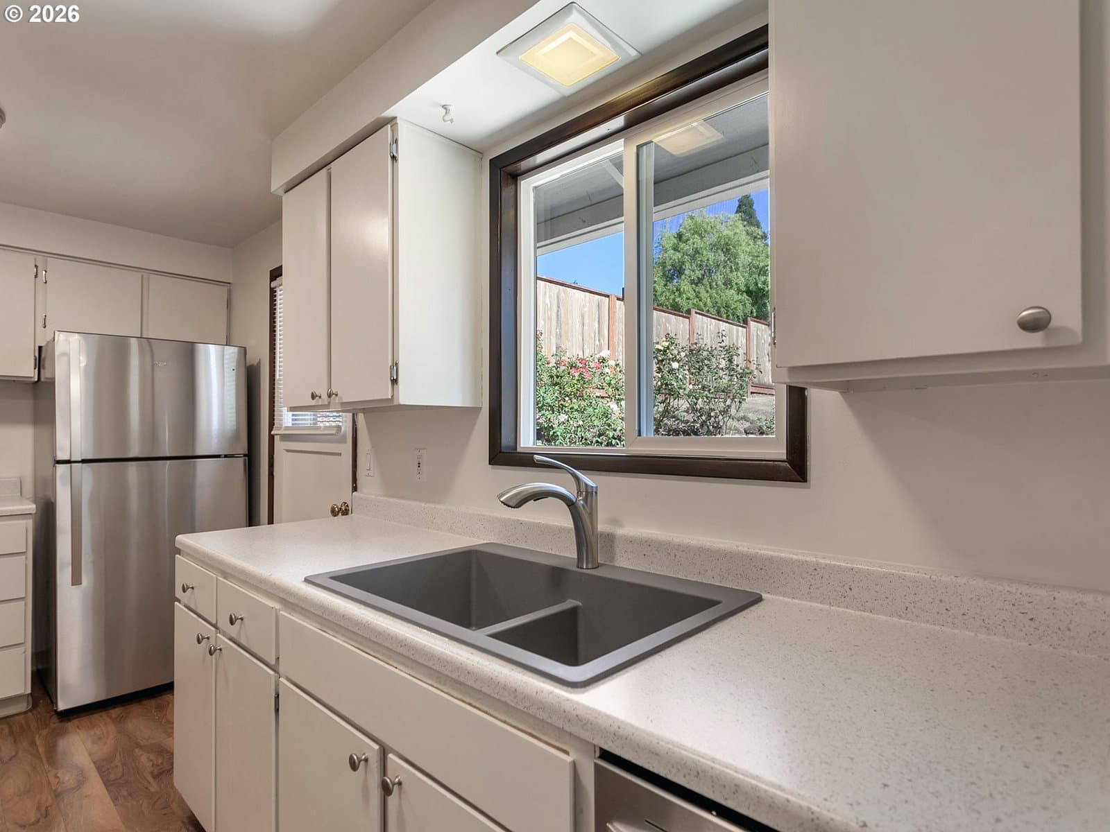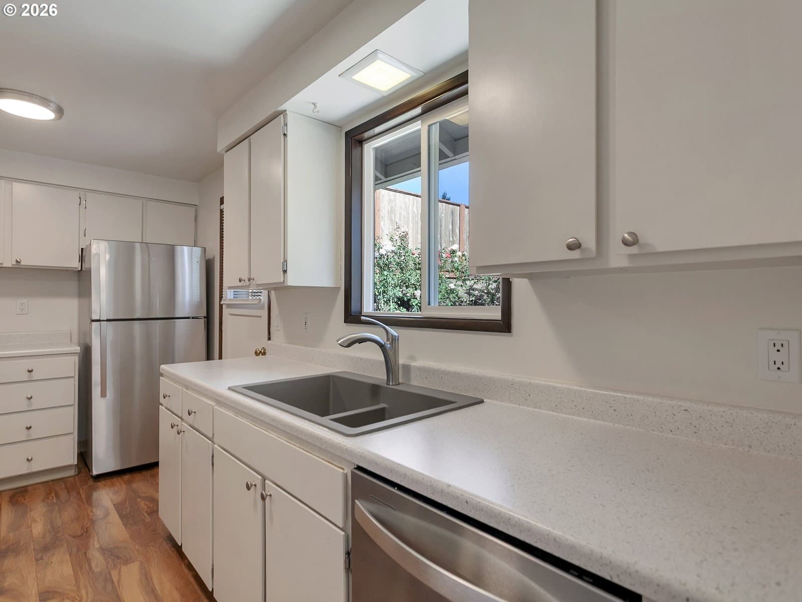 Immaculately maintained ranch in Milwaukie! Featuring an awesome floor plan and extensive updates throughout, this turn-key gem is ideal for both relaxing and entertaining. The kitchen has been refreshed with new countertops and sink, along with all new kitchen appliances, while large windows flood the home with abundant natural light. The interior has been freshly painted throughout, and brand-new carpet was installed in July 2025, creating a bright, cohesive feel. The bathroom has been updated with a new toilet, brand-new tub, and tile surround, and the home’s systems have been carefully maintained, including a serviced furnace and A/C, replacement of all water shutoffs, professionally cleaned air vents and dryer vent, and a fully serviced garage door. A brand-new water heater and washer were also added in 2025. Some other upgrades include vinyl windows, and furnace/AC, providing long-term value and peace of mind. Outside, enjoy a private, fully fenced yard with both front and back patios, plus a generous side yard offering excellent space for a dog run, garden, or additional outdoor living. A large Tuff Shed is included with the purchase, along with all appliances. Tucked into a quiet neighborhood just 20 minutes from downtown Portland or PDX, this home truly has so much to offer its next owner. Call today—this one won’t last long!