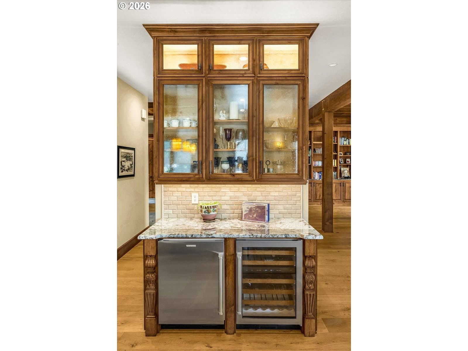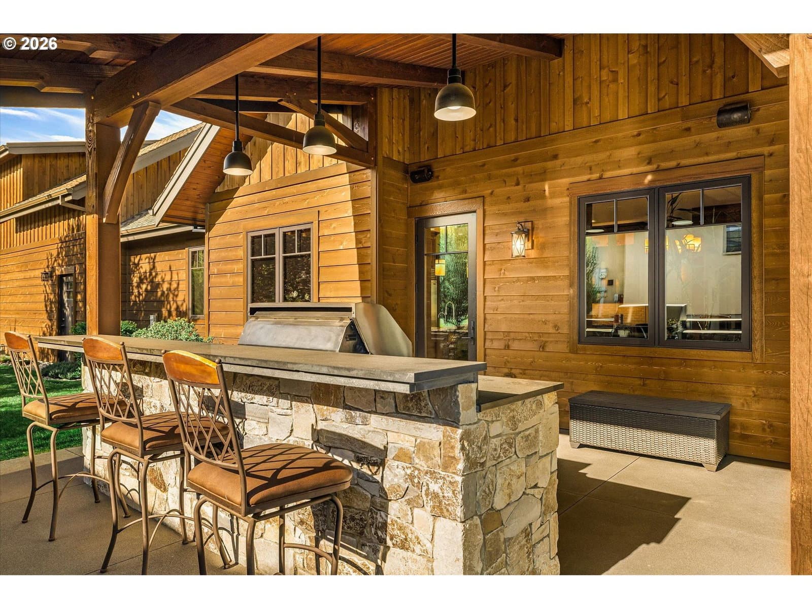 Luxury greenside living along the Indian Creek Golf course this beautiful 4 bedroom 4.5 bath custom built Craftsman home in the desirable Fairway Estates and the heart of the gorgeous Hood River Valley! Designed for easy, grand main -level living, this home features all primary living spaces and the primary suite on the main floor. Showcasing the highest quality and craftmanship and built to the nines! Features include a gourmet kitchen, Granite, Wolf gas range, Sub-Zero built-in Refrigerator, large island, recessed timber frame inset ceiling's, Knotty Alder cabinets, 12" window casings & trim, solid 8ft doors, and built-ins throughout. Solid fir Mortise and Tenon timber frame Vaulted living room w/ 12" Fir window casings & trim, Grand stone gas fireplace, wire brushed European white oak hardwoods, sound system throughout, heated tile floors in primary & secondary bathrooms, custom Artisan Mahogany Mt. Hood entry door, full security system w/camera's. Trifold slider to the large 32x32 covered patio w/sound system & outdoor kitchen, 50 year Hi-Def Presidential roof, cedar siding w/cedar T&G soffits, sprinkler system, 25x44 oversized 3 car garage, ICF foundation(Insulated Concrete Form) for exceptional heating & cooling efficiency, conditioned crawlspace, 18x26 storage/golf cart parking below. 3+ mile walking trail. Come enjoy the peaceful beauty of the Columbia River Gorge, Mt. Hood, and the Hood River Valley— where outdoor adventure awaits year round including hiking, biking, golfing, skiing, snowboarding, windsurfing, and more!!