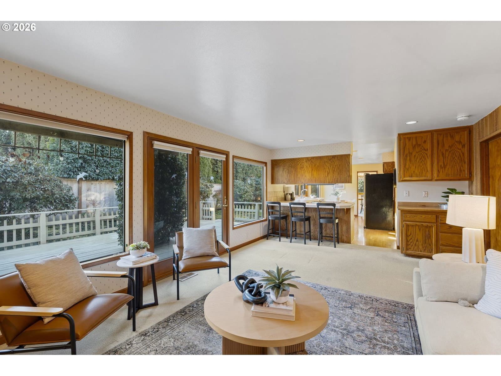 A beautifully maintained Spyglass residence, tucked into one of Eugene’s most sought-after neighborhoods. This spacious home offers incredible natural light, generous living areas, and a flexible, comfortable layout. The home has been meticulously cared for with a newer HVAC/heat pump, updated bathrooms with heated tile and updated siding and exterior paint for long-term peace of mind. The main level features an inviting living room with expansive windows, a dedicated dining area, and a well-appointed kitchen with excellent storage, an eat-in breakfast nook, and an attached family room. The primary suite showcases vaulted ceilings, double closets, and a beautifully updated private ensuite with a tiled walk-in shower. Enjoy the oversized deck; perfect for morning coffee, entertaining, or simply taking in the peaceful Spyglass setting. The property includes low-maintenance landscaping, a two-car garage, and quick access to shopping, restaurants, schools, and all the conveniences of the Ferry Street Bridge area. A rare opportunity to own a well-cared-for home in a premier location. Schedule your showing today.
