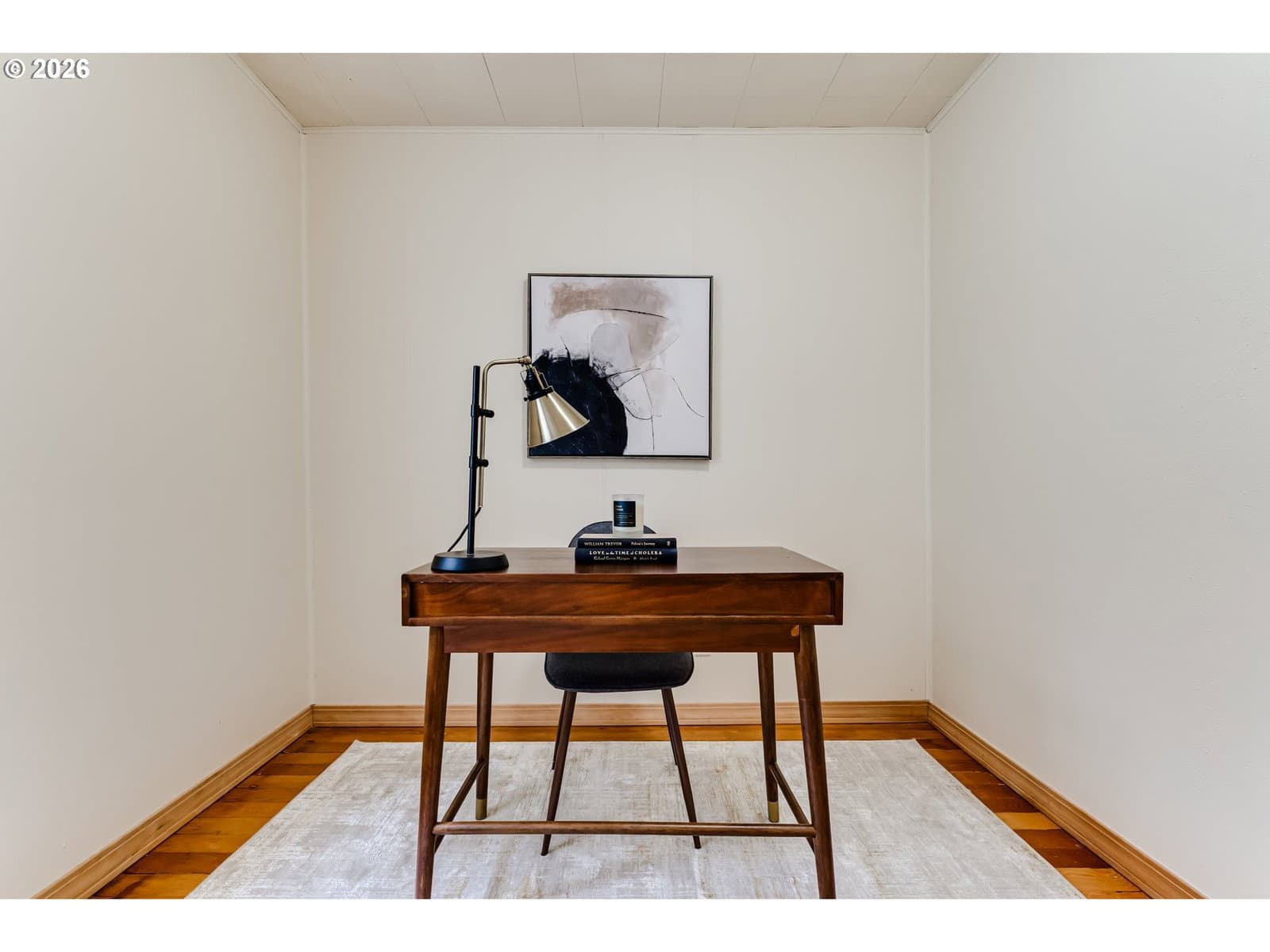 Welcome to this storybook cottage bungalow nestled in one of Eugene's most beloved neighborhoods — the Friendly Street corridor. Thoughtfully updated while retaining its timeless character, this 2-bedroom + office, 2-full-bath home is move-in ready and full of warmth.Rich wood floors flow throughout, complemented by fresh interior paint and a smart, efficient floor plan that lives larger than it looks. The updated kitchen and dedicated inside utility room add everyday convenience, while major systems have been refreshed for years of worry-free ownership — including a new electric panel (2025), newer heat pump and and a newer roof.The standout feature is the generous primary suite addition, a true retreat complete with French doors opening to a covered deck. Step outside and discover a lush, private backyard designed for both relaxation and inspiration — a patio, charming arbors, and abundant garden beds invite you to dig in, dream big, and make it your own.All of this just moments from the Fairgrounds, Hey Neighbor, Friendly Street Market, and the vibrant Friendly Street Garden. A rare blend of cottage character, modern updates, and an unbeatable location — this one won't last.