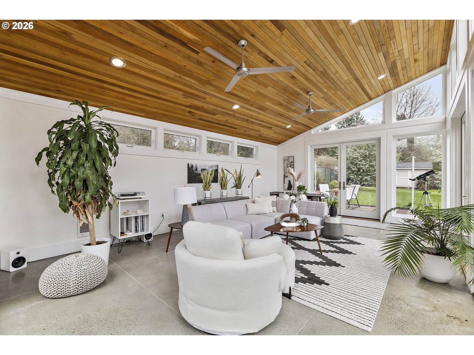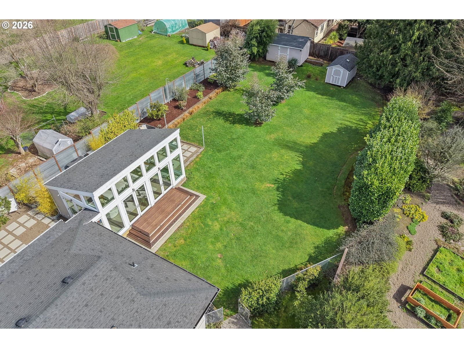 Loving where you live is easy with this rare light-filled retreat featuring a spectacular sunroom, seamless indoor-outdoor living, and an expansive landscaped yard in one of Portland’s most desirable neighborhoods, in Bridlemile. The main living area flows effortlessly between the living room, dining area, and a stunning gourmet kitchen featuring slab quartz countertops, a premium gas range, double ovens, and a large island eating bar. A cozy gas fireplace anchors the living space, while French doors open to a generous south-facing deck, perfect for entertaining and everyday indoor-outdoor living. You will also find two bedrooms and two bathrooms on the main level, highlighted by a spacious primary suite featuring a modern bath, walk-in closet, and French doors leading out to the private courtyard and sunroom. The elegant and thoughtfully designed sunroom elevates this home into a class all by itself. This space feels like a private retreat in nature, showcasing floor-to-ceiling south-facing windows, glass paned doors on multiple sides, and radiant heated floors. Here, you can enjoy year-round comfort with the option to open everything up and seamlessly extend the living space to the surrounding Ipe decking, private courtyard, and lush backyard. The updated lower level offers two oversized bedrooms, a full bath, a large family room, an office/flex space, a laundry area, and two exterior entrances providing excellent versatility for guests, multi-generational living, or work-from-home space.This home truly captures the best of Portland living blending light and bright interior spaces with peaceful outdoor spaces, using exceptional indoor-outdoor flow across a rare oversized private lot. Don't miss out on this perfectly balanced property in one of Portland’s most sought-after neighborhoods: homes with this combination of light, lot size, and indoor-outdoor living tend to go fast at this value. [Home Energy Score = 2. HES Report at https://rpt.greenbuildingregistry.com/hes/OR10243779]