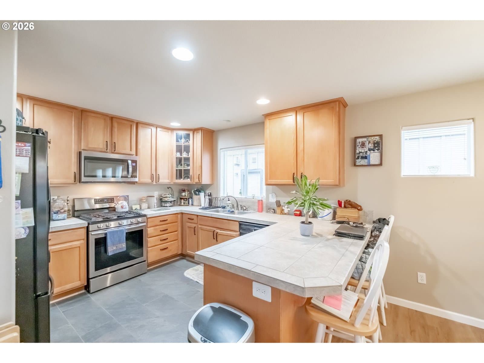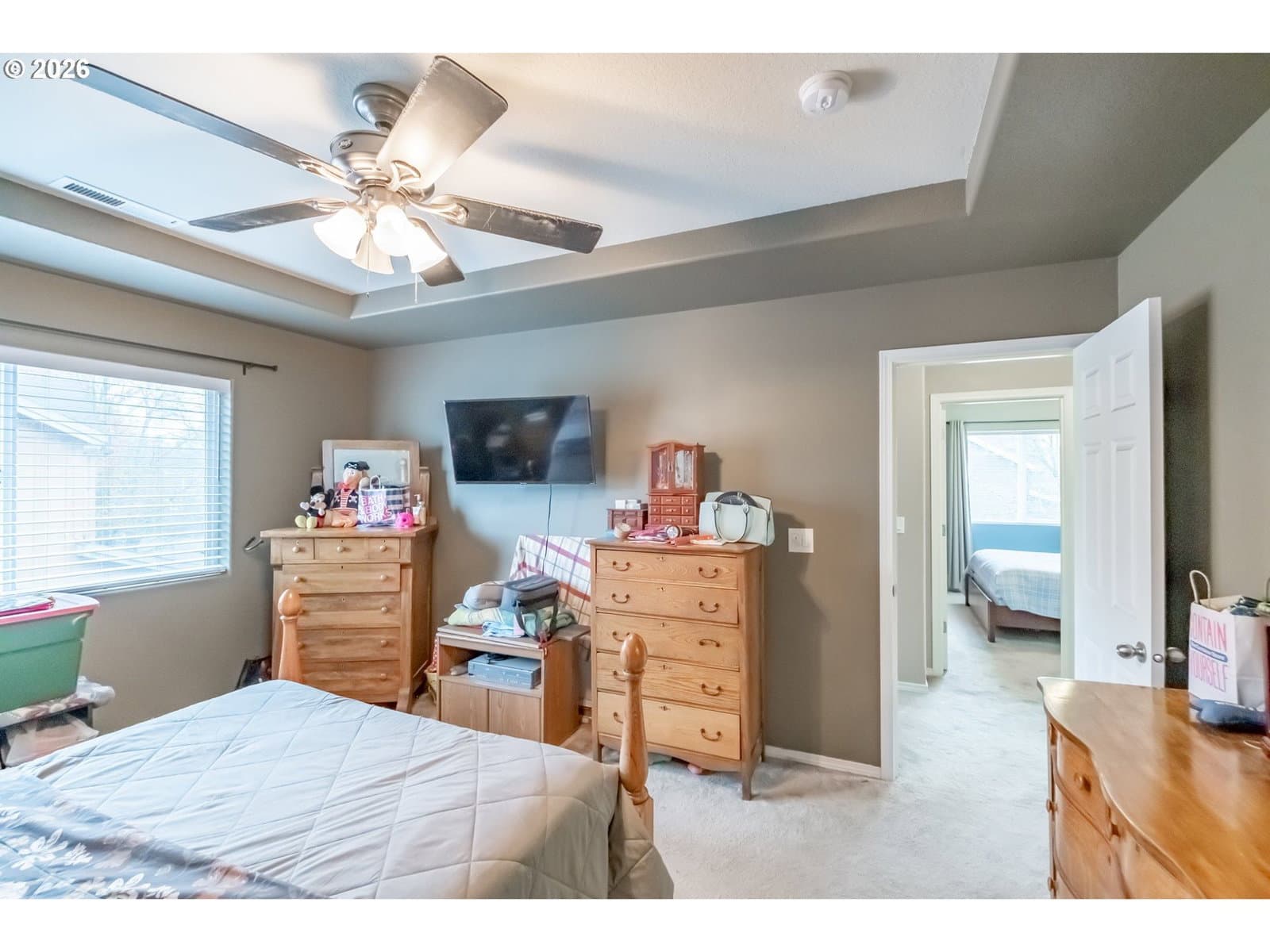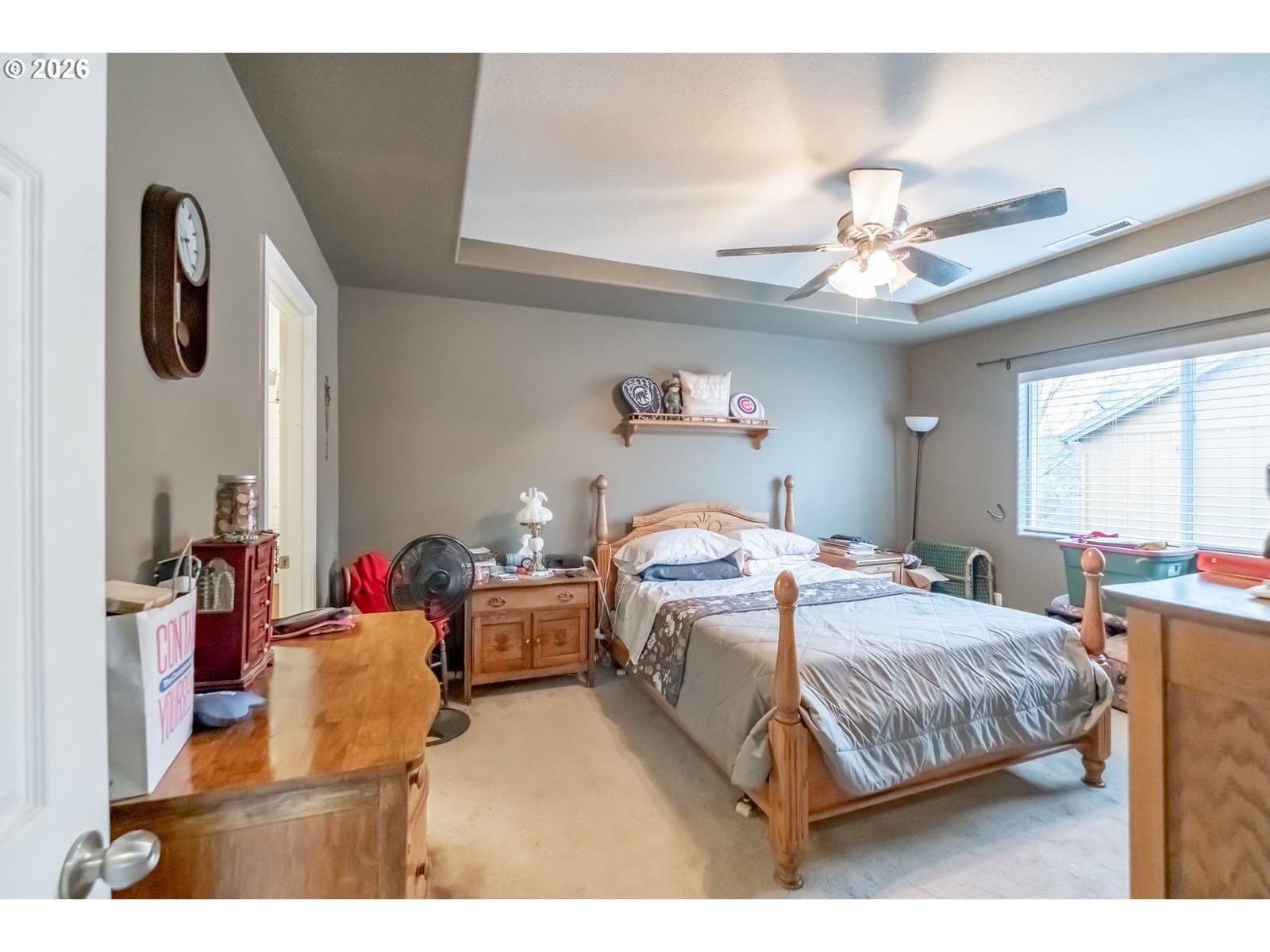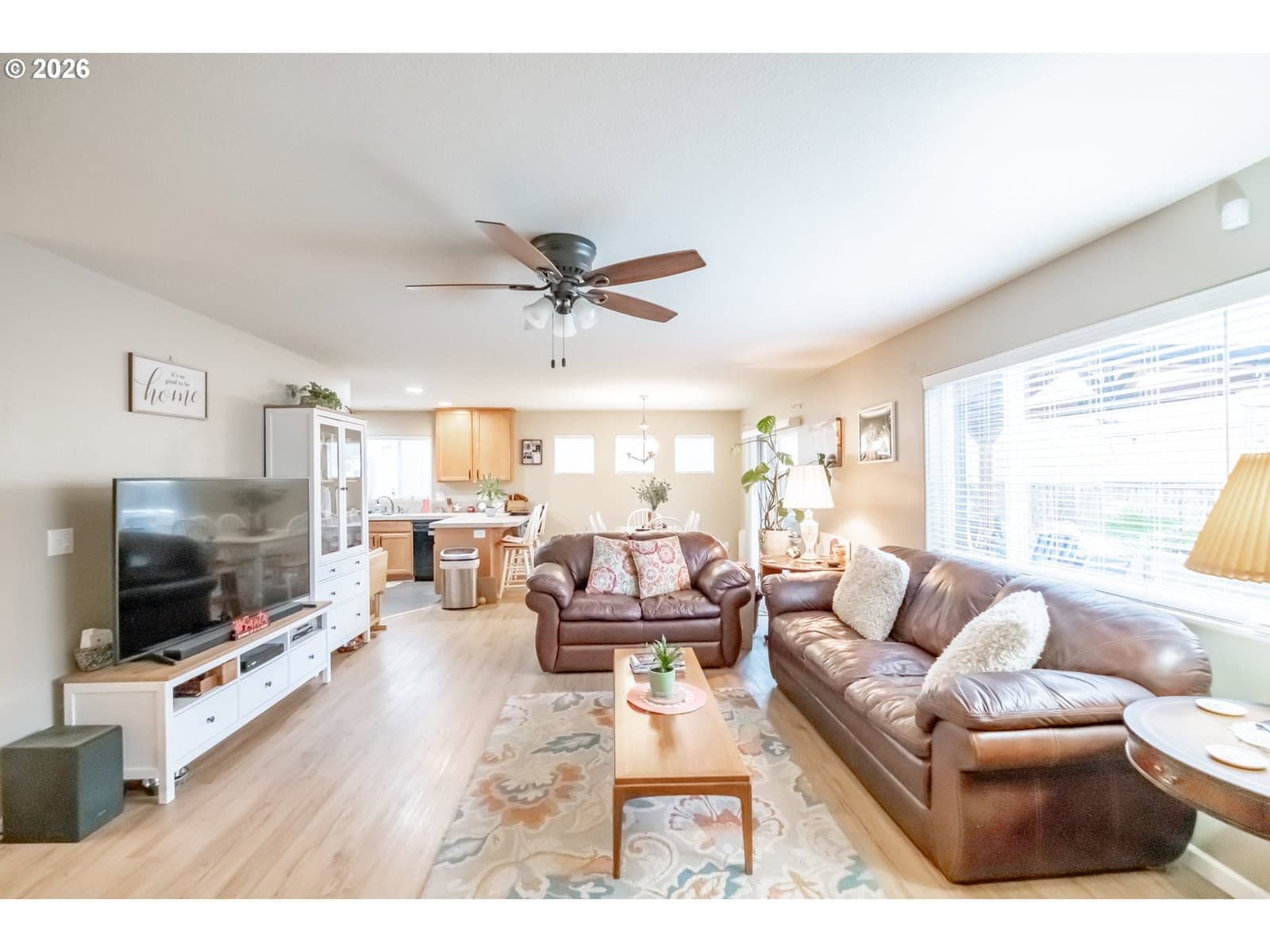 Set on a corner lot across from the neighborhood park, this charming home features a bright, open layout designed for easy living. The kitchen offers a convenient breakfast bar and flows into the inviting living room with a cozy gas fireplace. A slider from the dining area leads to the fully fenced backyard with a covered patio, perfect for year-round outdoor enjoyment. The primary suite includes a trayed ceiling, ceiling fan, dual vanities, and a spacious walk-in closet. Two additional bedrooms share a Jack-and-Jill bathroom for added convenience. With quick access to I-5 and a prime location within the Bridle Springs community, this home offers comfort, convenience, and great neighborhood appeal.