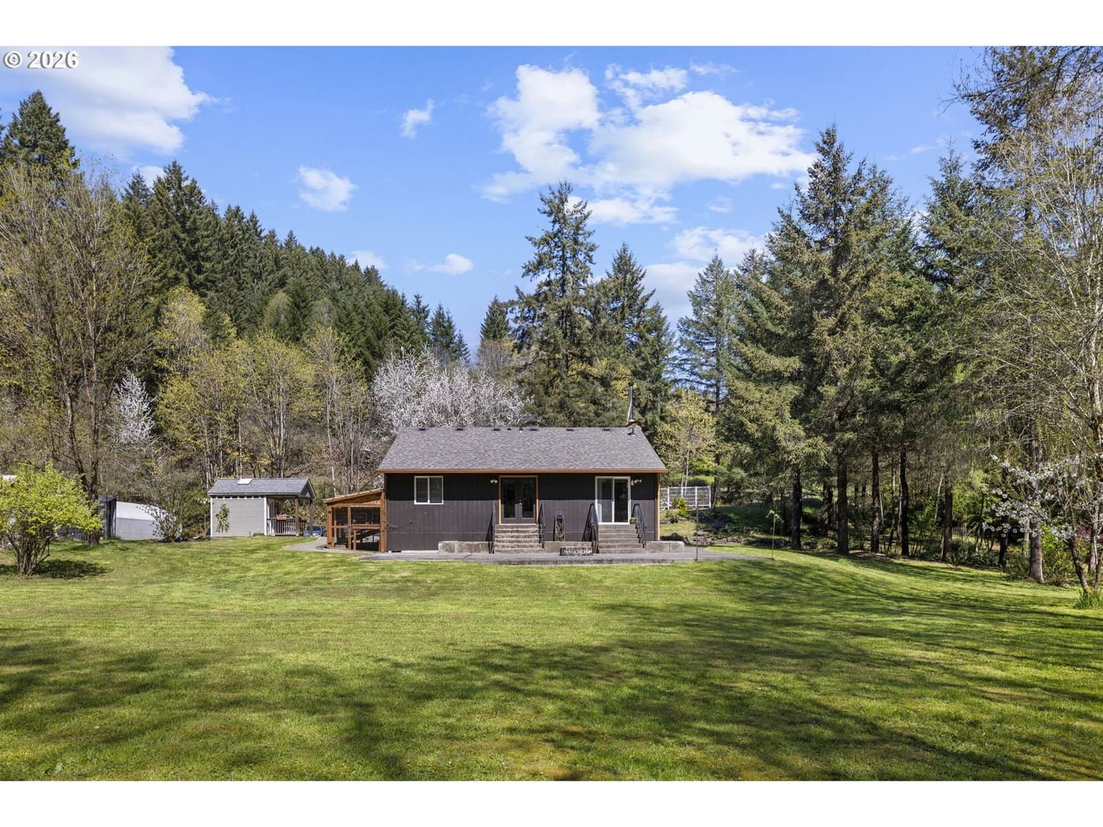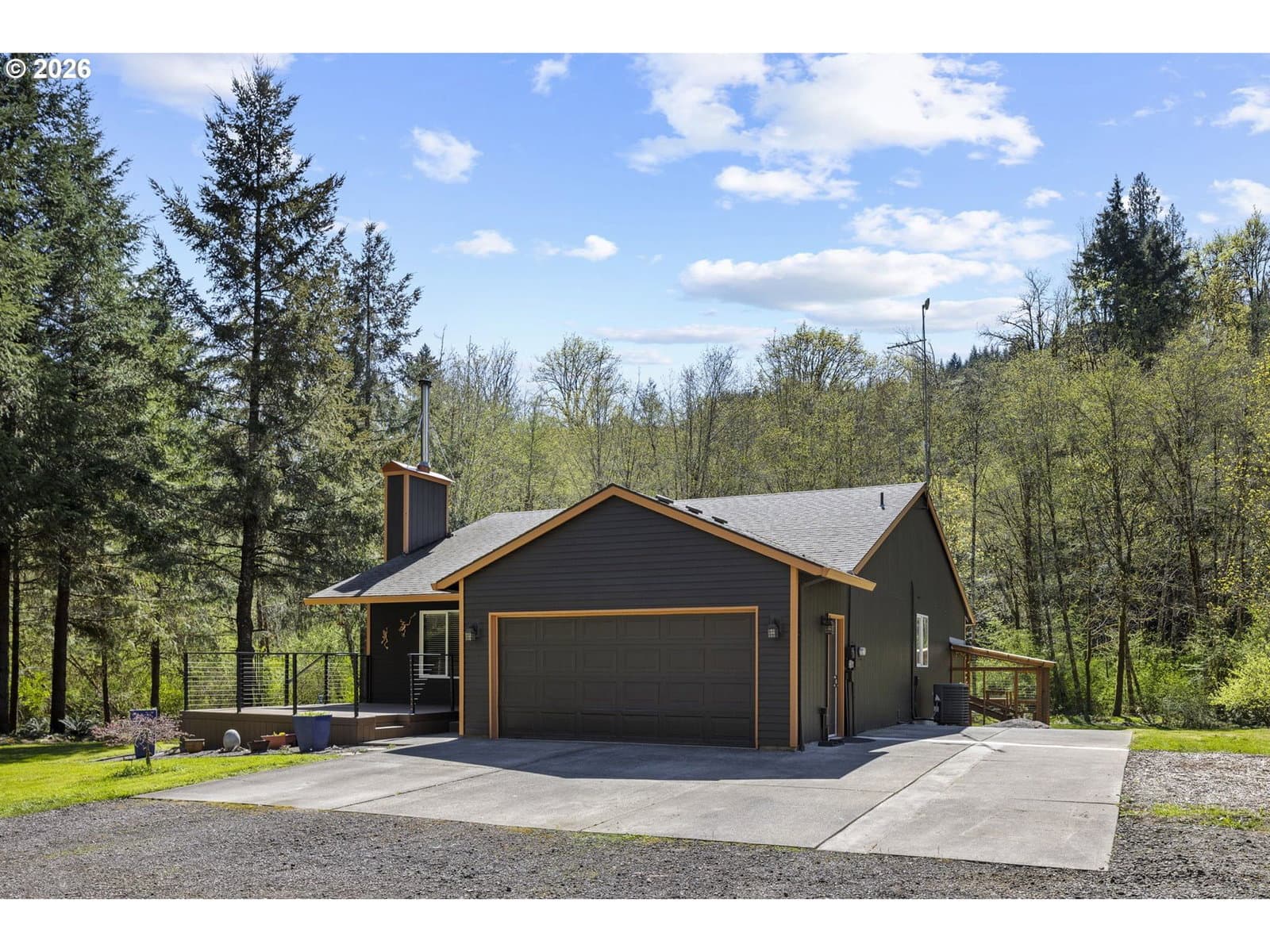Welcome to this country retreat located just outside of Banks. set on nearly 5 acres of flat and useable land. This private 3 bedroom, 2 bath home offers a rare blend of space, function and natural beauty. Complete with a 30x30 insulated shop, 20x50 climate controlled green house, fenced garden area and winding and walking trails that take you to the pond and creek. This property is designed for those seeking room to grow, create and connect with the land. As you arrive down the gravel road, a sense of calm sets in, open space, surrounding trees and the quite rhythm of nature. In the spring, blooming flowers and fresh greenery bring light and vibrancy, while fall transforms the landscape into a stunning display of rich colors. Inside, vaulted ceilings and a cozy wood burning fireplace create a warm and inviting living space. Updated tile flooring flows through the main areas, leading into a remodeled kitchen that blends beauty and function with abundant cabinetry, pull out shelving, tile backsplash and stainless steel appliances. The dining area opens to peaceful forest views with direct access to the outdoors, creating a seamless connection between indoor comfort and natural surroundings. The primary suite offers a quiet retreat, featuring double doors that open to the back patio, perfect for slow mornings or unwinding just in time for the sunset while the recently updated primary bath is a perfect sanctuary for those chilly winter nights. Outdoors this property continues to impress with its versatile features. The 2 bay shop includes 220V electricity with ample storage and space while the greenhouse is fully climate controlled with water access inside. A powered garden shed and fenced outdoor garden area with raised beds support a variety of uses. The winding trails lead to a seasonal pond and creek where you will pass through intentionally planted native vegetation. This is a place where each season brings something new, this is more than a home, its a lifestyle.
