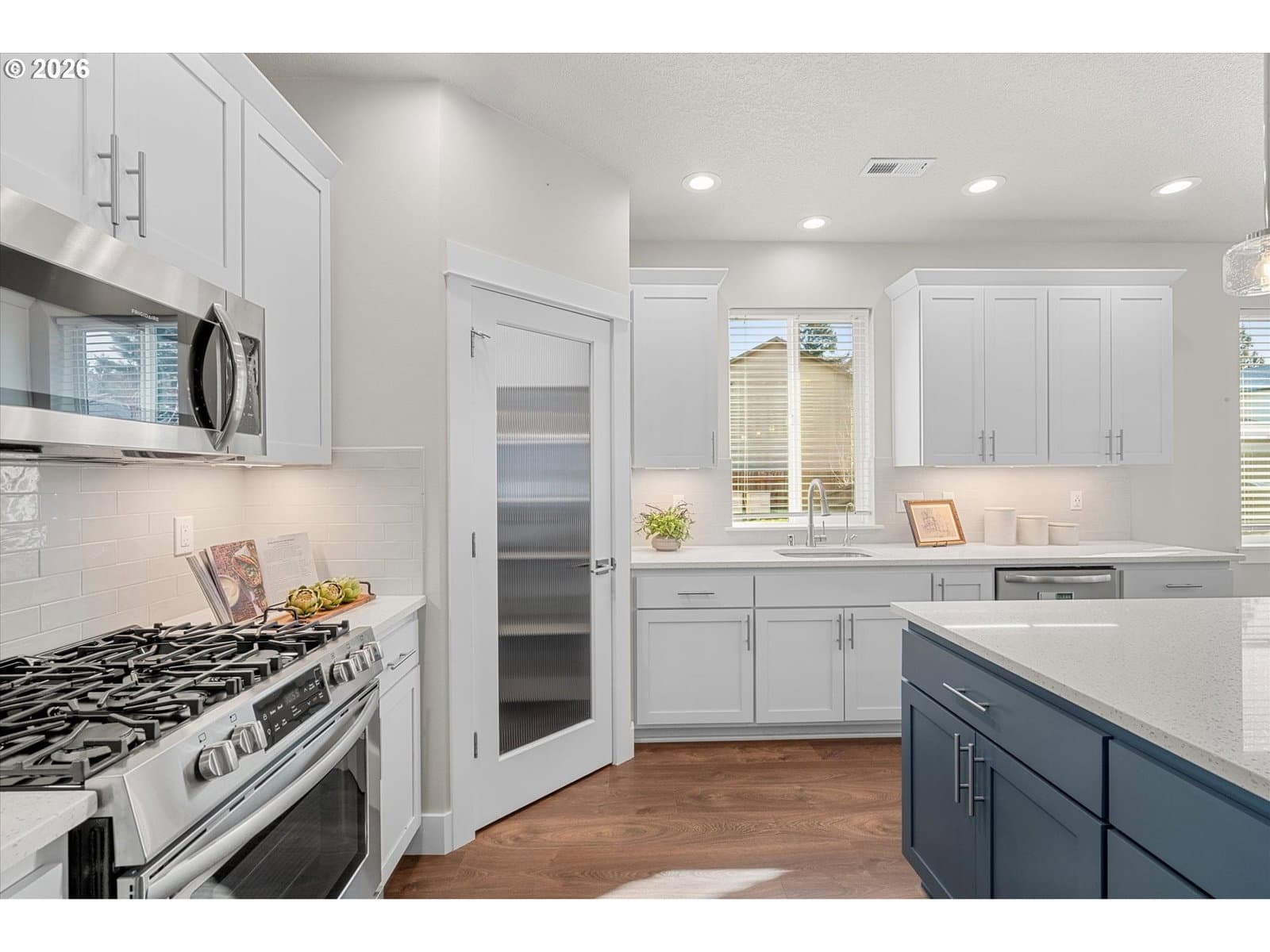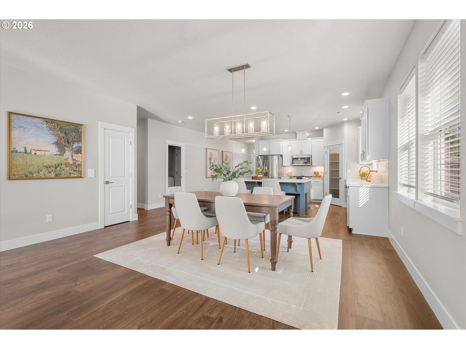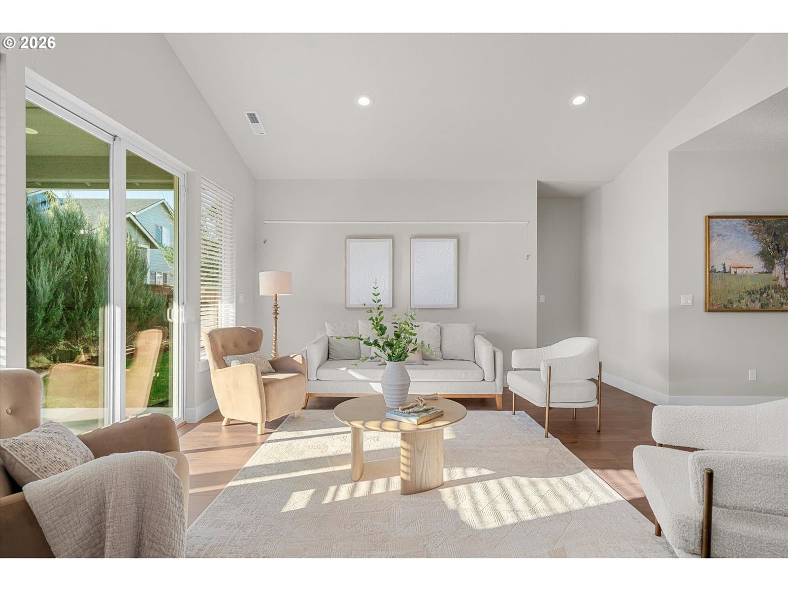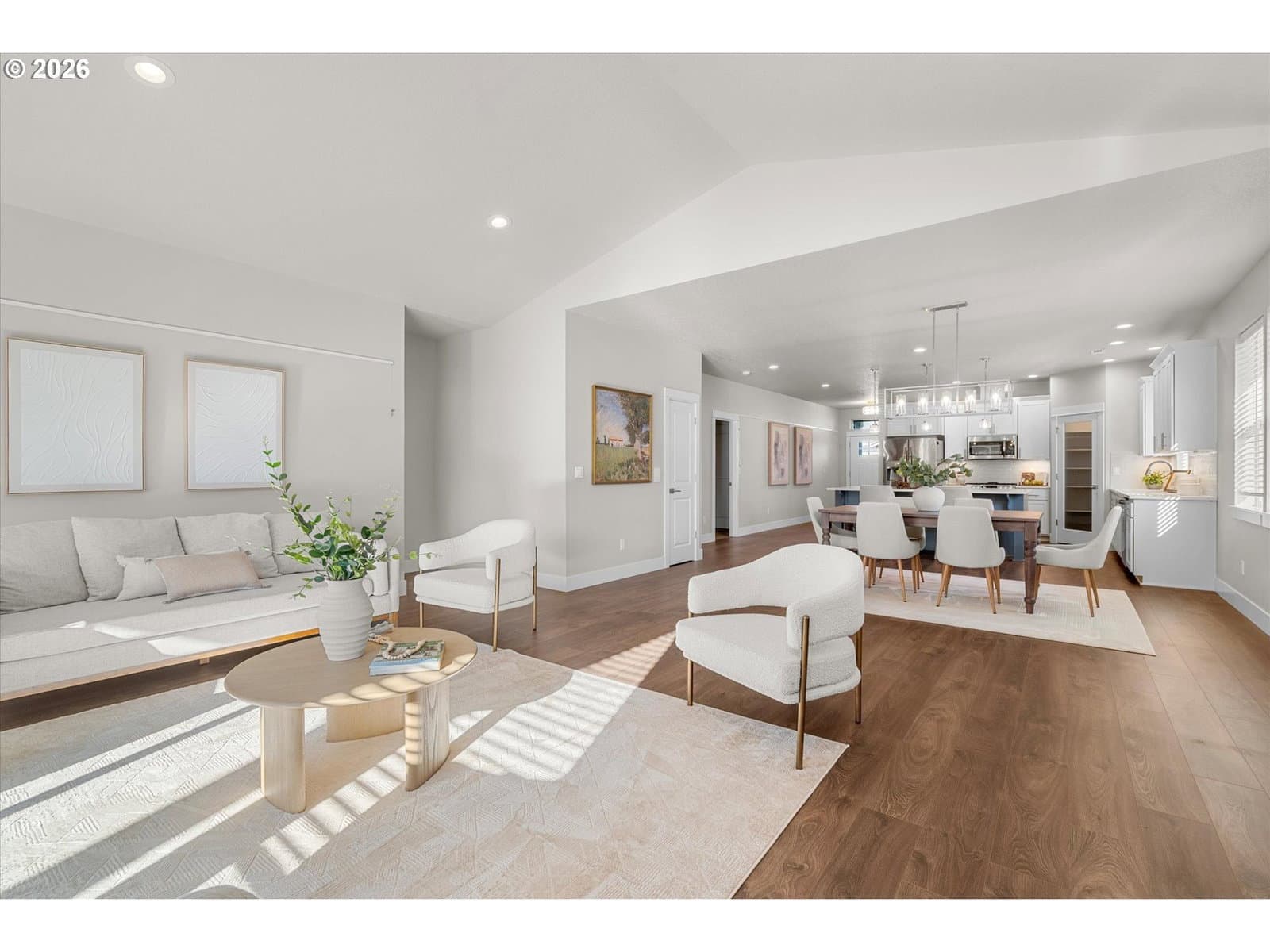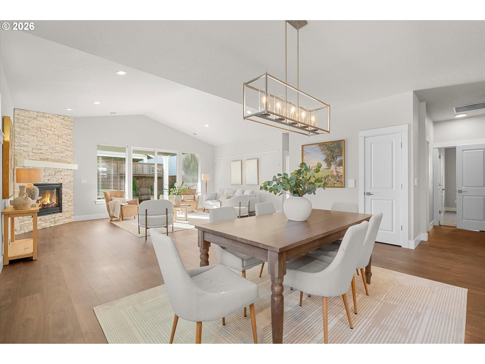 Built in 2020 and situated on a desirable corner lot, this former model home showcases premium upgrades and thoughtful design throughout. A welcoming open-concept layout features high ceilings, durable laminate flooring, and a striking stack-stone fireplace that anchors the main living space. The kitchen is designed to impress with quartz countertops, an oversized 8-foot island, soft close cabinets, ss appliances, generous pantry storage, and abundant workspace—ideal for everyday living and entertaining alike. Additional upgrades include central vacuum, whole-home water softener, jacuzzi walk in ADA shower, and a tankless hot water heater for efficiency and comfort. Enjoy a covered patio year-round with a manicured and fully fenced yard offering privacy and low-maintenance enjoyment, while the 2-car garage provides ample parking and storage. This home blends modern style, upgraded features, and a prime location—truly move-in ready with no detail overlooked.