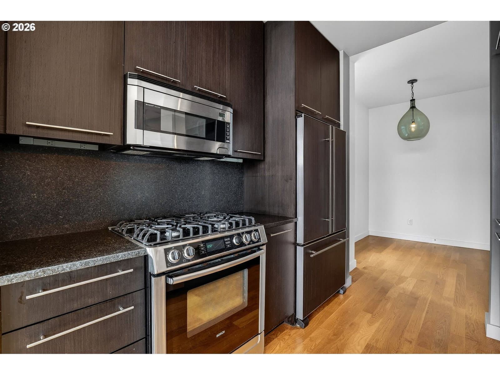 Location matters—and The Encore delivers. Overlooking The Fields 3-acre park with the Willamette River as its backdrop, this well-managed building with a strong HOA offers a rare opportunity to own in one of the Pearl District’s most established communities.Rare corner residence with no shared walls—offering a level of privacy seldom found in condo living. Southeast exposure brings in beautiful natural light year-round, plus Mt. Hood views on a clear day. The spacious open floor plan includes a flexible space ideal for a home office or guest area. Features include high ceilings, quartz countertops, Bosch appliances, designer lighting, hardwood floors, and an LG washer/dryer. Enjoy 3rd-floor amenities including a community room and gym. A resident favorite, Ovation Café, is conveniently located on the ground level. Step outside to restaurants, breweries, fitness studios, groceries, and waterfront paths just moments away. Includes storage unit and a PRIME parking space.