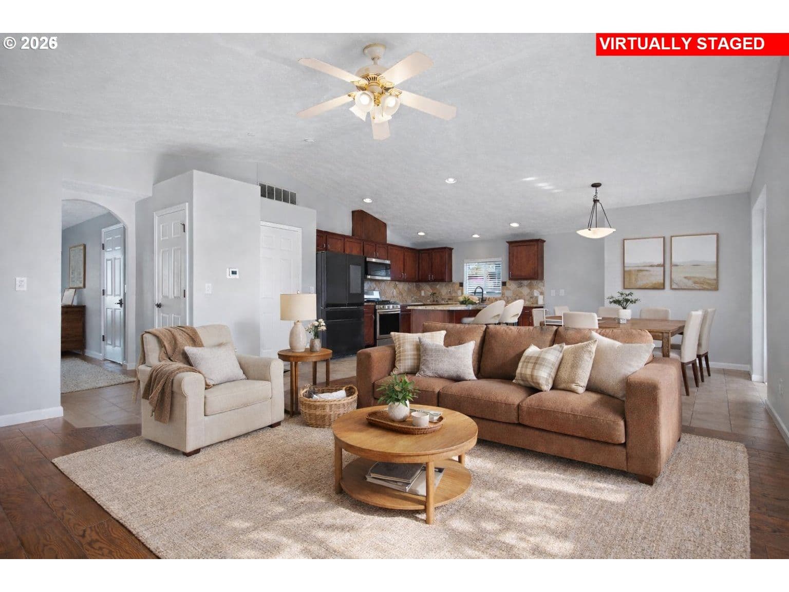 Home with ADU potential! Charming 3-bedroom, 1.5-bath home with a daylight basement and a new furnace and air conditioner installed in 2022. The main level offers an open-concept living, dining, and kitchen area that flows seamlessly to a covered deck overlooking the backyard—perfect for entertaining or quiet evenings at home. Downstairs features additional flexible space with direct yard access. The 638-square-foot detached shop includes water, sewer, and electricity, plus a covered parking area and a separate driveway for convenient access. The shop offers excellent potential for future use; buyers to perform their own due diligence regarding possible conversion to living space or ADU. Enjoy a prime Gresham location just one block from the Springwater Trail, with easy access to nature parks, schools, and amenities.
