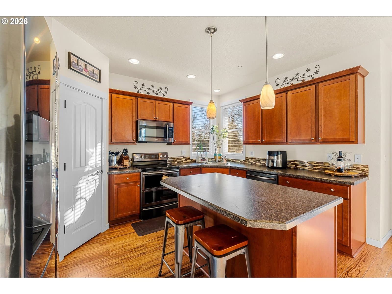 Beautifully kept home in a great, low traffic, Gladstone neighborhood close to everything! Located on a private flag lot this custom, Colton Homes residence has so much to offer both inside and out! Inside the home has enough room for the whole family with 4 bedrooms and 2 and a half bathrooms and 2,300 SF with multiple living spaces and oversized bedrooms. You will love the high ceilings throughout, ceiling fans in every room, fully air conditioned, built in features, pantry in the kitchen, loads of closet space, and valley views! Outside includes beautiful hardscaped backyard with both turf and grass areas with automatic sprinklers, raised beds for gardening, followed by a built in pool surrounded by concrete with a water slide! You will love the outdoor fire pit and covered storage area. Open the exterior door to the unfinished basement you will find ample dry storage with a large built in 7'x9' walk-in cooler along with a work shop. Home features a finished garage with a work space and cabinets throughout The privacy of the flag lot also allows for plenty of parking for all of your toys and RVs with a huge graveled 2,800 SF area out front. This home truly has it all and ready for a new owner!