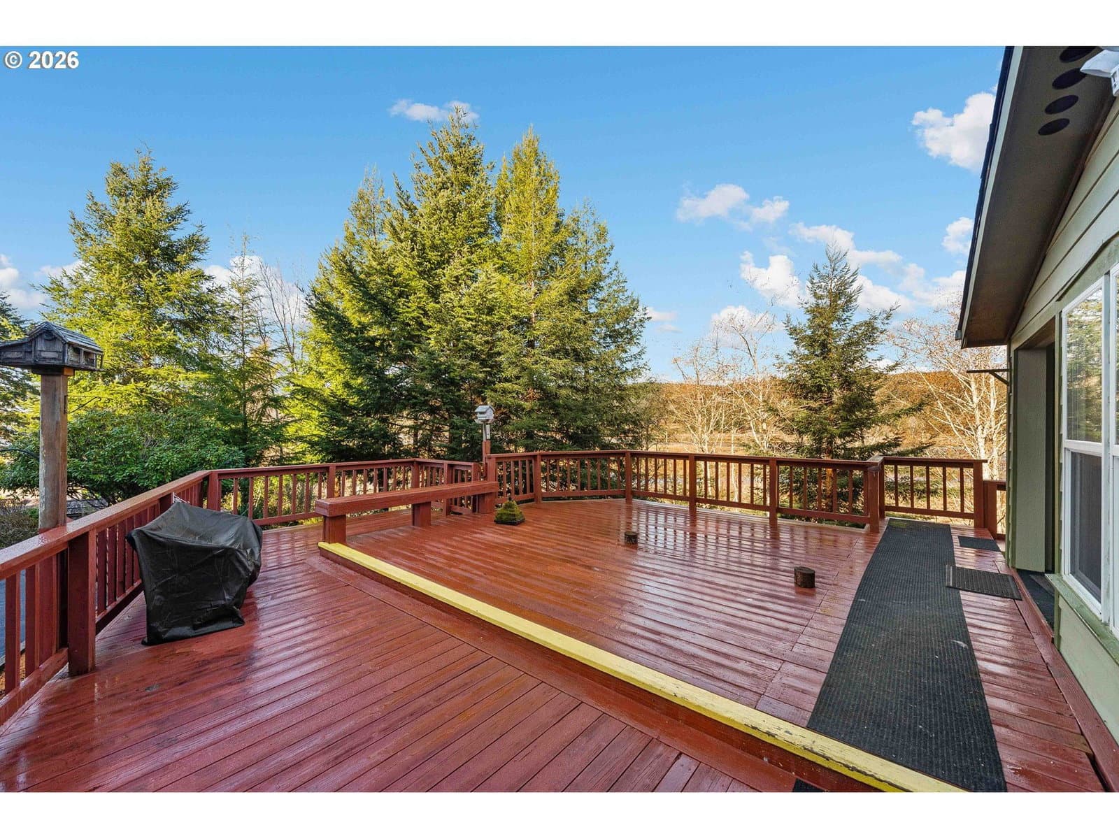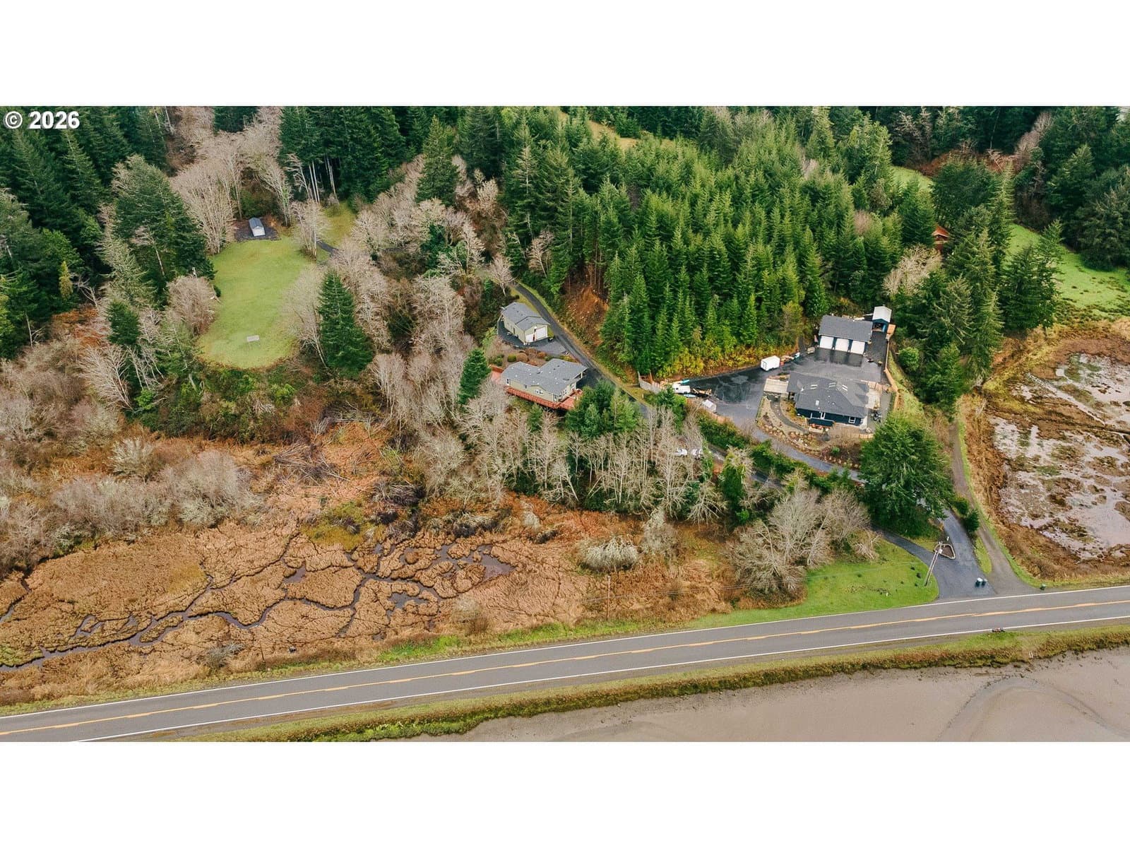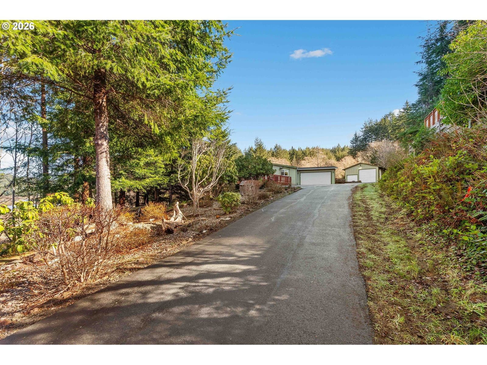 Priced to sell and DEFINITELY A MUST SEE BEAUTIFUL HOME with BREATHTAKING VIEWS! This beautifully maintained 1,512 sq. ft. double-wide manufactured home offers two bedrooms with an easy conversion to a third bedroom or den (currently used as an office). Pergo, tile, and laminate flooring are featured throughout the home, complemented by high ceilings, skylights and a welcoming covered entryway. The spacious primary suite includes a walk-in closet, garden tub, walk-in shower, and private access to the wraparound deck ideal for taking in the stunning views of the North Bend Bridge and the beautiful Bay along with a view of Kentuck Inlet. The kitchen is thoughtfully designed with granite countertops, a double oven, built-in microwave, ample pantry space along a charming coffee nook perfect for enjoying your morning beverage. Step outside to the expansive wraparound deck, perfect for sunrise coffee or evening sunsets and enjoy the fully fenced backyard offering privacy and outdoor space. This property also features an impressive approximately 24’ x 36’ detached 2 bay shop with power, concrete flooring and an approximately 15-foot-high garage door ideal for RV parking, additional vehicles, or hobby use along with the 2 car garage attached to the home. Lower yard is perfect for family gatherings. Build a fire and enjoy! With stunning views from the deck in both the mornings and evenings, this home delivers comfort, functionality and scenery in one exceptional package.