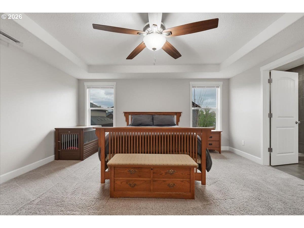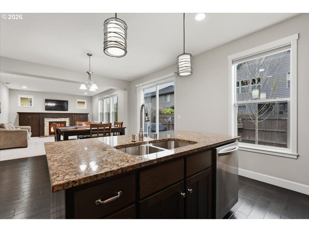 The word spacious just doesn't do this 5-bed, 2.1-bath home enough justice. On the main level, 1540 sqft of high-ceilinged, open & flowing design offer a sense of calm coziness. Rich & sturdy engineered hardwood floors in the kitchen and dining areas are balanced by carpeted living spaces, providing a smooth sense of transition between formal and casual areas of the main. The kitchen offers granite counters, a walk-in pantry, and an island with double sink & breakfast bar. As part of the great room design, the family room is comfortably centered around a gas fireplace, with a view of the backyard. A main level office provides a bit of seclusion. Upstairs, the 5 bedrooms and bonus room are impressively spread over 1940 sqft. The bonus room is wired for surround sound. The primary suite is made luxurious with separate vanities, a tile walk-in shower, and a soaking tub. A walk-in closet completes the primary suite trifecta. The 2nd full bath offers a double vanity, ensuring less fighting for sink space! Laundry on the upper has a tile floor and an air circulation system to keep things fresh! The water heater is tankless. Out back, you'll find a patio, and the backyard is fully fenced. In front, a covered front porch with no steps offers a happy view of this sweet corner lot. And the cherry on top of all this: Original owners have taken loving care of what is truly a fantastic home. It's dialed in & ready to be yours!