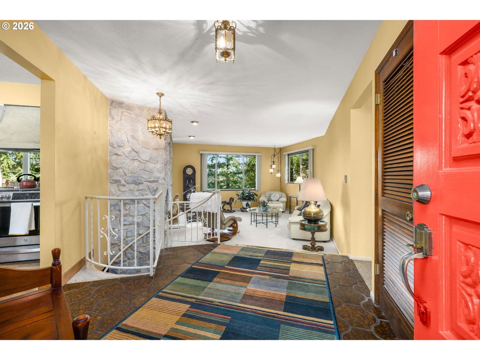 Sweet Spot! Room to play, garden, hobby, or just relax on this one acre slice of heaven, a stone's throw from Happy Valley shops, dining and nature park. First time on the market in 40 years! Daylight ranch with deep setback from the street, yielding privacy along with vast valley and mountain views. Sweet retro floor-to-ceiling mantle in sunken formal living room. Ground floor dining & family room combo off the kitchen opens to pleasant 30' wise composite deck. One level living, with daylight basement space for hosting, gaming or entertaining! Apple and pear trees, berries galore and irises in bloom.