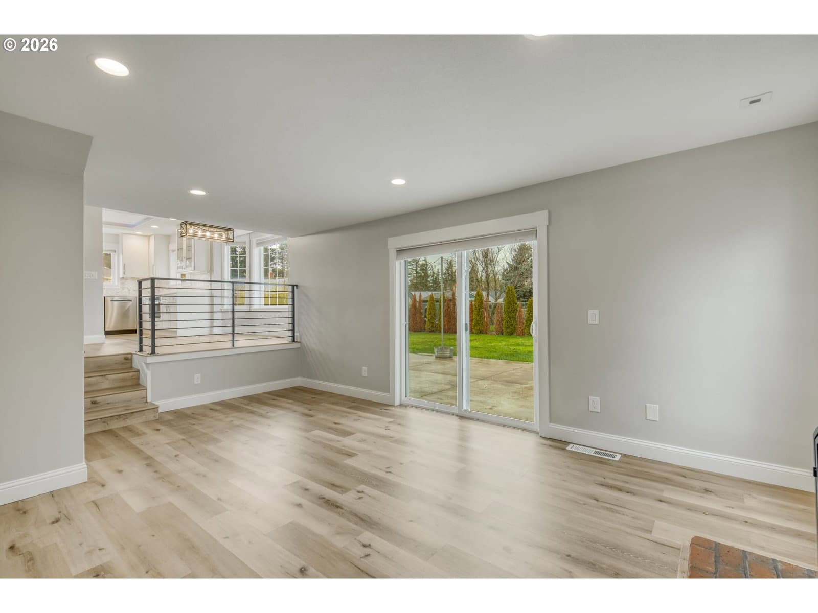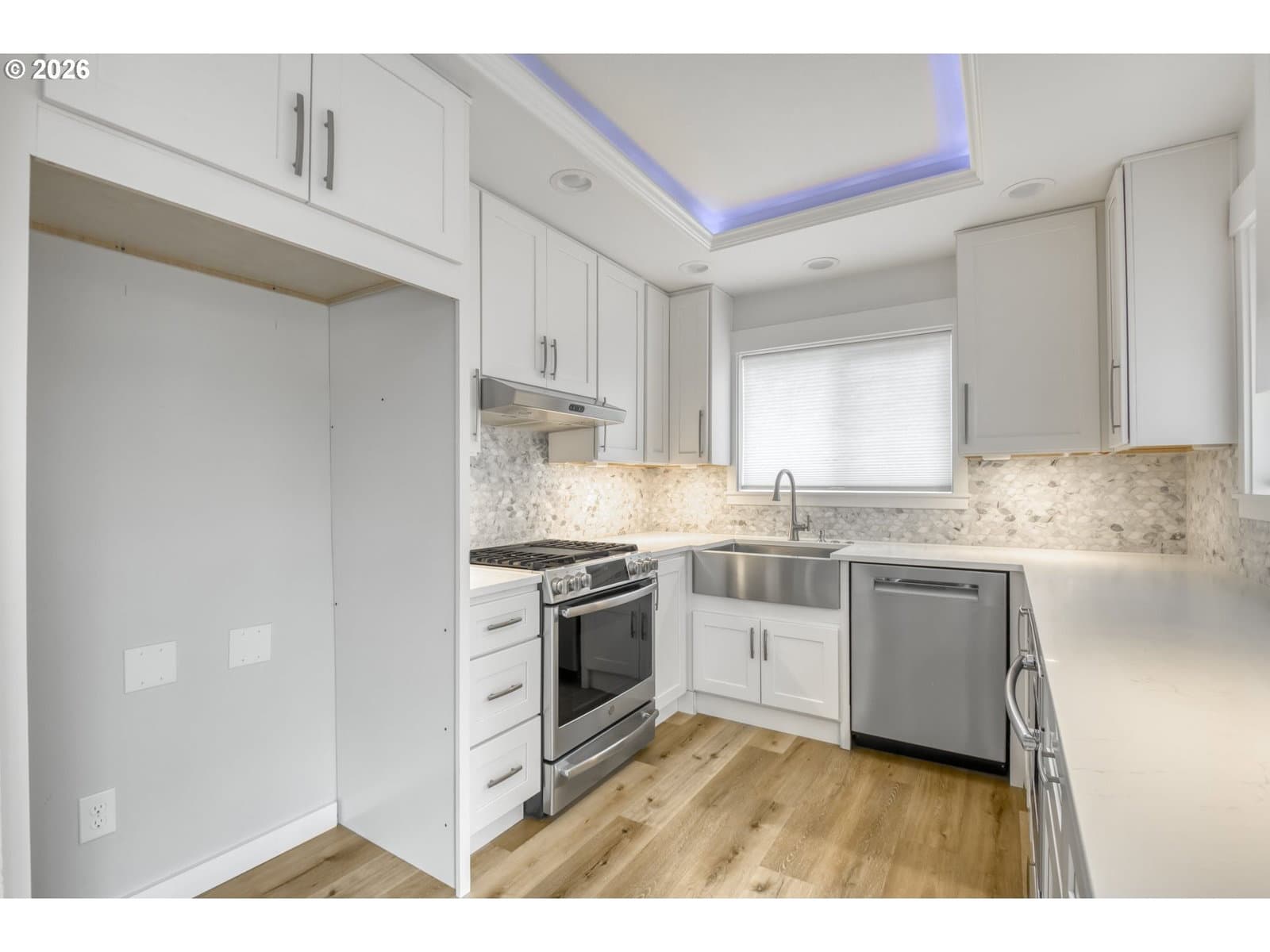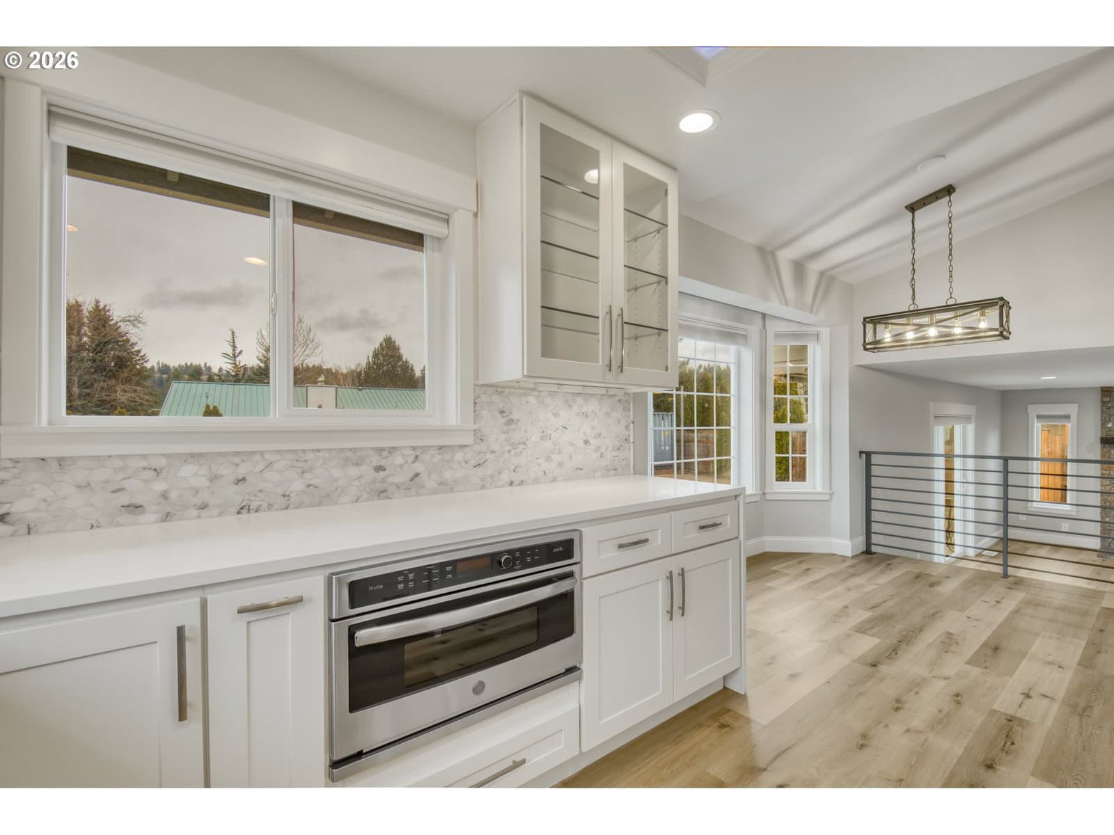 Located in the sought-after Sandee Palisades neighborhood, this beautifully remodeled home sits on a generous .24-acre lot and was thoughtfully updated by the owner for personal use, with every detail carefully considered for comfort, function, and quality. High vaulted ceilings create an impressive entry, while the stunning kitchen showcases custom crown molding with integrated lighting, quartz countertops, a farmhouse sink, and top-of-the-line stainless steel appliances, including a GE Profile Gas cooktop/range, GE Profile Advantium built-in microwave/convection oven combination, high-output range hood, and Bosch dishwasher. The home has been freshly painted and features durable LVP flooring throughout the main level. Both bathrooms include humidity sensors for added functionality and air control. The primary suite offers high ceilings and a beautifully appointed bathroom featuring custom lighting and an oversized shower with dual shower heads. All closets throughout the home are built out with custom lighting and organized storage systems, adding both luxury and functionality. A 95% high-efficiency furnace, central A/C, and a newer water heater provide year-round comfort and efficiency.The attached two-car garage includes a convenient utility sink for added practicality. Outside, the expansive lot offers RV parking, a hot-and-cold outdoor faucet, a fully fenced backyard, and a large concrete pad — ideal for entertaining, relaxing, or creating your perfect outdoor retreat. Located near two parks and a scenic hiking trail, this home offers a rare blend of space, thoughtful upgrades, and everyday convenience. Move-in ready and filled with custom details and upgraded features throughout — don’t miss this opportunity to own a home that stands apart!