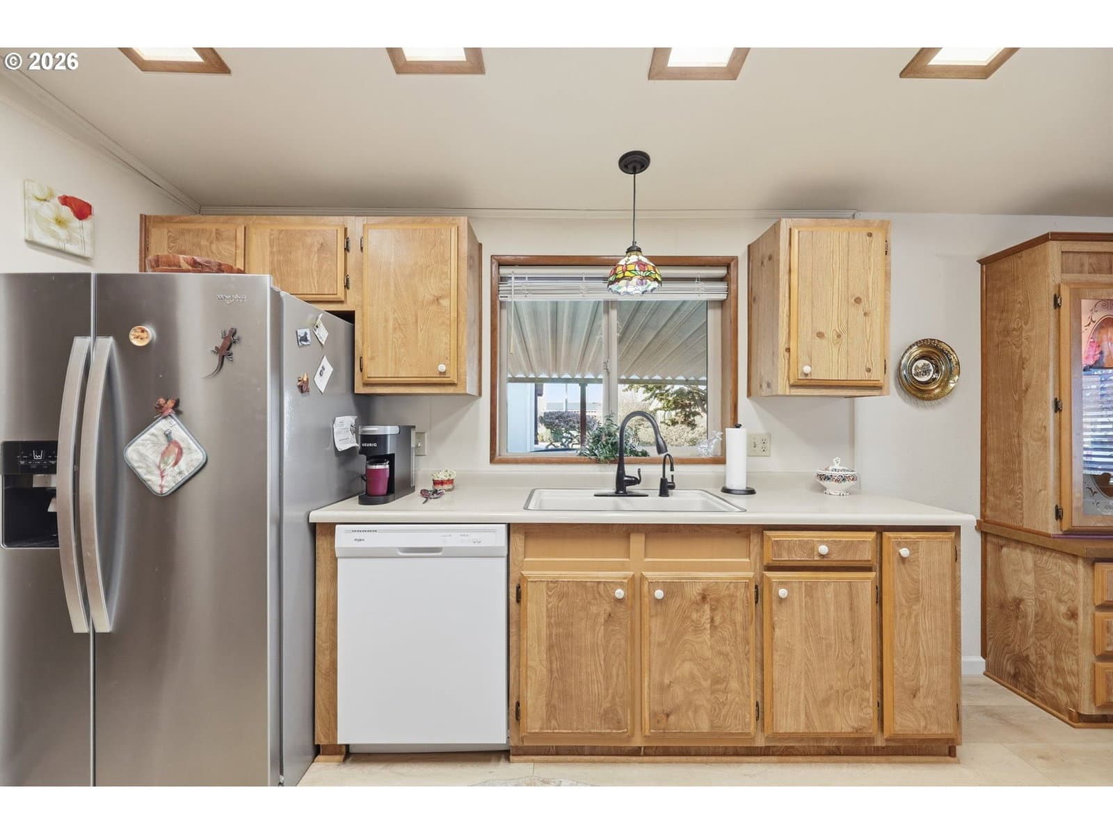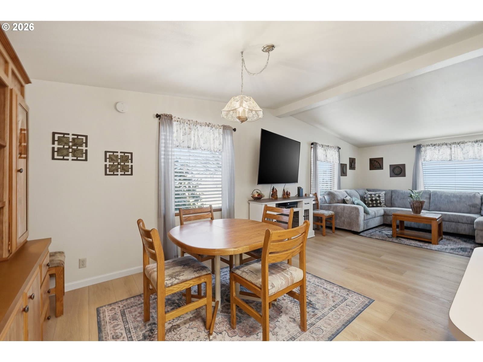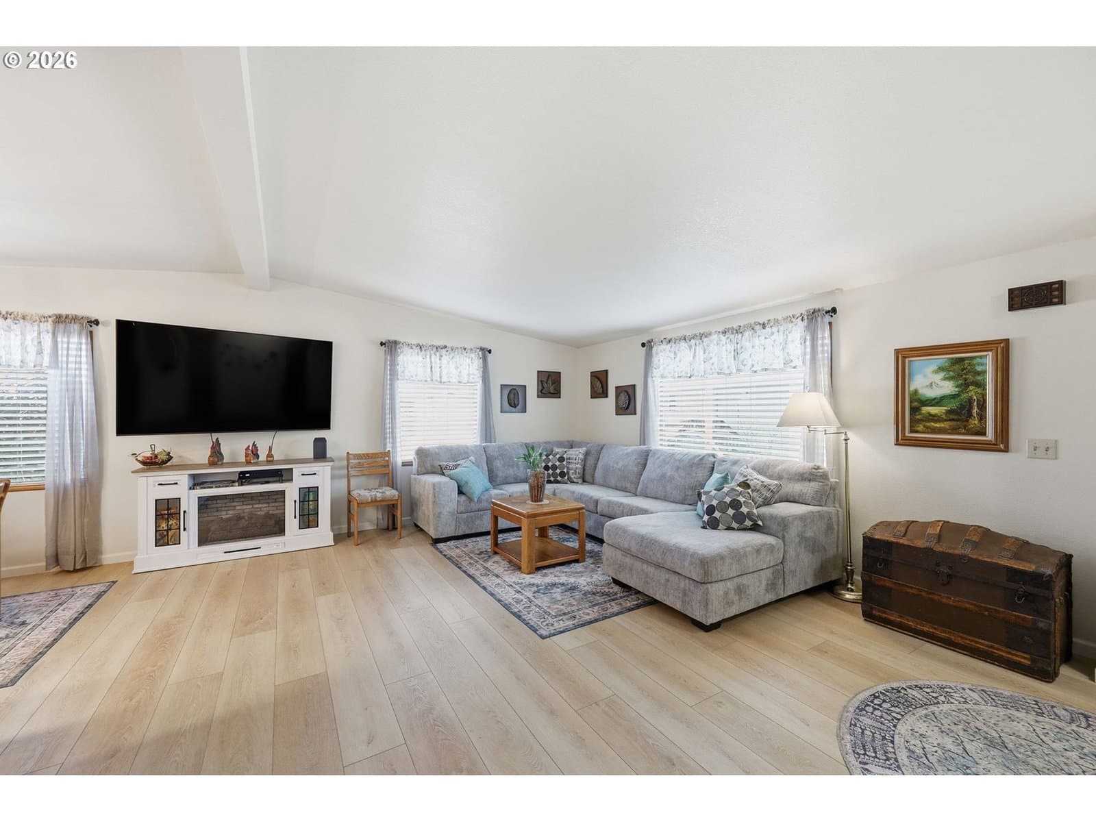 Welcome home to this freshly updated 3-bedroom, 2-bath, 1296 sf manufactured home in desirable Daneland Mobile Home Park of Eugene, Oregon! This well-maintained home features a spacious and functional layout, vaulted ceilings, and an abundance of natural light. Inside, you’ll find several fresh upgrades such as the interior paint, new heavy-duty laminate flooring and new carpet in all bedrooms, new fixtures and hardware, and new window coverings. The kitchen is fully equipped with newer appliances, eating bar for added seating, and ample cabinetry space. The large primary suite has double closets and a full bathroom with an updated shower unit. The interior laundry room comes complete with washer and dryer. Enjoy relaxing mornings on the covered, private front porch overlooking the newly landscaped yard with added drip irrigation systems. Additional recent upgrades include a newer water heater and newer heat pump! Residents of Daneland enjoy a wide range of amenities, including:-Social room & kitchen-Library-Indoor swimming pool & indoor spa-Exercise room-Pool table and ping pong-Open green spaces. This move-in-ready home offers comfort, convenience, and a vibrant community lifestyle—don’t miss this opportunity!THE MAJORITY OF THE FURNITURE CAN STAY WITH THE HOME IF THE BUYER CHOOSES.