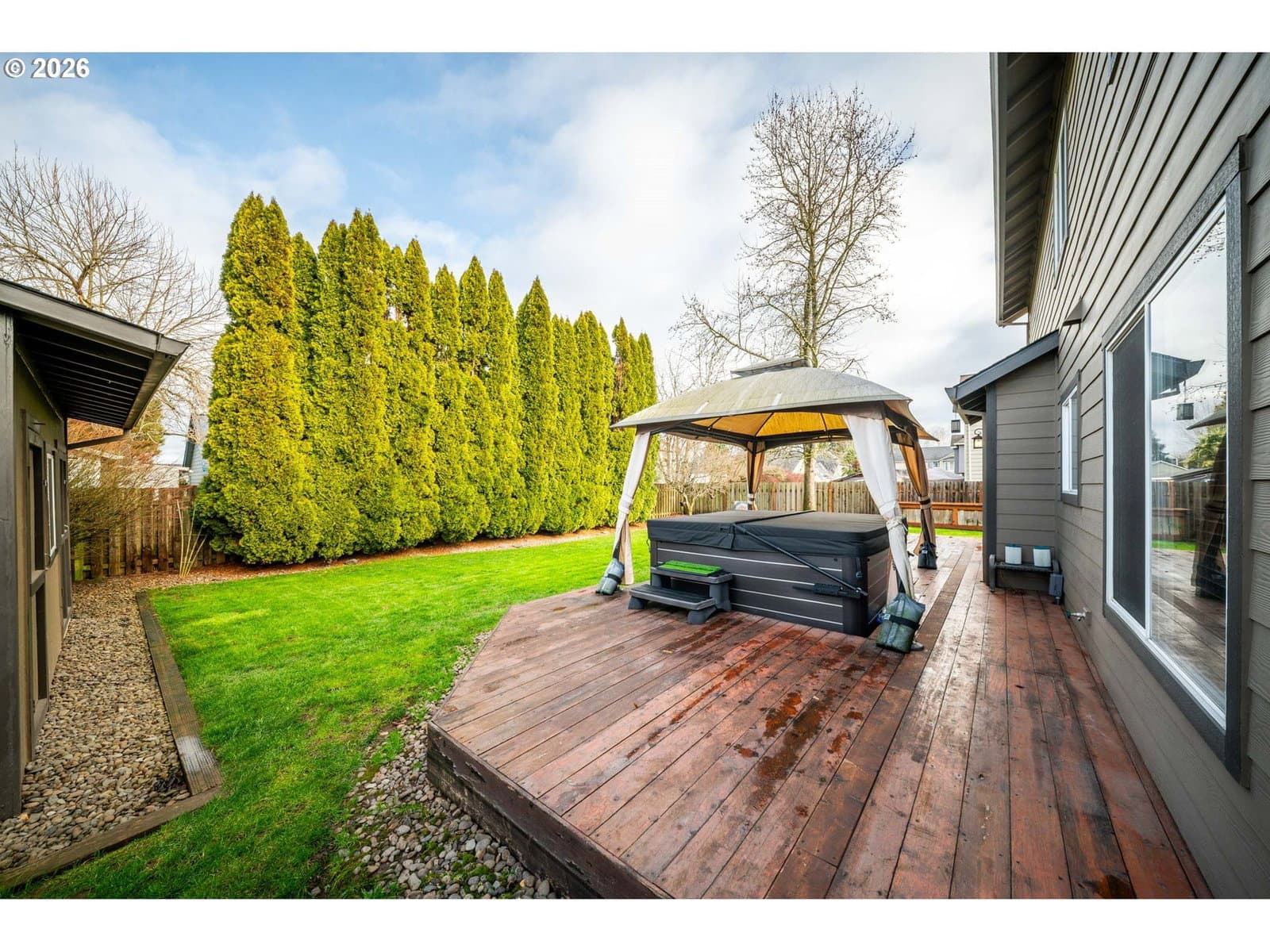 Lovely Canby area home, priced to sell. Charming 2-story with 4 bedrooms, 2.5 baths, and 1,813 sq ft of well-appointed living space. Enjoy newer countertops throughout home. The main level features a convenient built-in desk in the kitchen. Primary suite with vaulted ceilings and remodeled en suite. Upstairs nook provides ideal workspace or study area. Enjoy outdoor living with a relaxing hot tub and practical shed for extra storage. This home combines functional updates with comfortable living spaces. Shelves in Garage included. Washer/Dryer Not Included. Personal Representative, disclosures exempt. Agent related to personal representative.