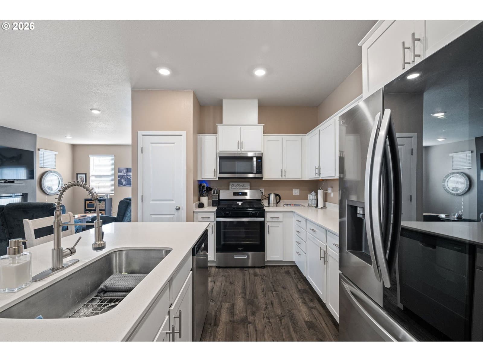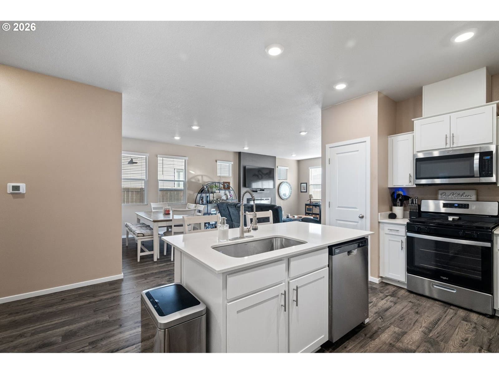 Better-than-new, highly desirable single-level home in Marcola Meadows. This popular Spruce floor plan features an open-concept design with the kitchen seamlessly connected to the living space, perfect for everyday living and entertaining. Enjoy high ceilings, a stunning electric fireplace, custom fit blinds and fresh interior paint throughout. Stylish laminate flooring flows through the main living areas, complemented by luxury vinyl tile in the bathrooms and laundry room. The chef’s kitchen offers a large quartz island, solid-surface countertops, pantry, and gas range, making it both beautiful and functional. Upgraded faucets enhance both the kitchen and bathrooms, adding a touch of elegance. Energy-efficient features include a high-efficiency furnace, hybrid heat pump water heater, and a Smart Home package for modern convenience. Outside, sit on the charming front porch or enjoy the patio and fully fenced yard with sprinklers in both the front and back. Ideally located near shopping, bus lines, and with easy freeway access, plus just a short walk to the neighborhood park, this home truly has it all. Call to see this fantastic home today!