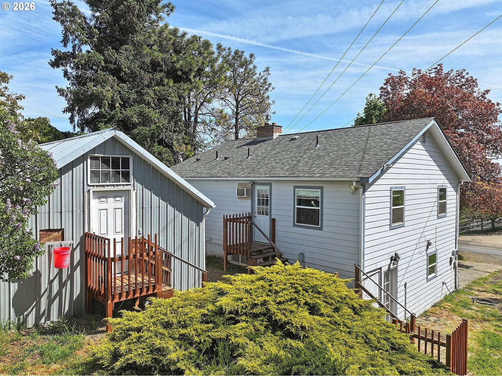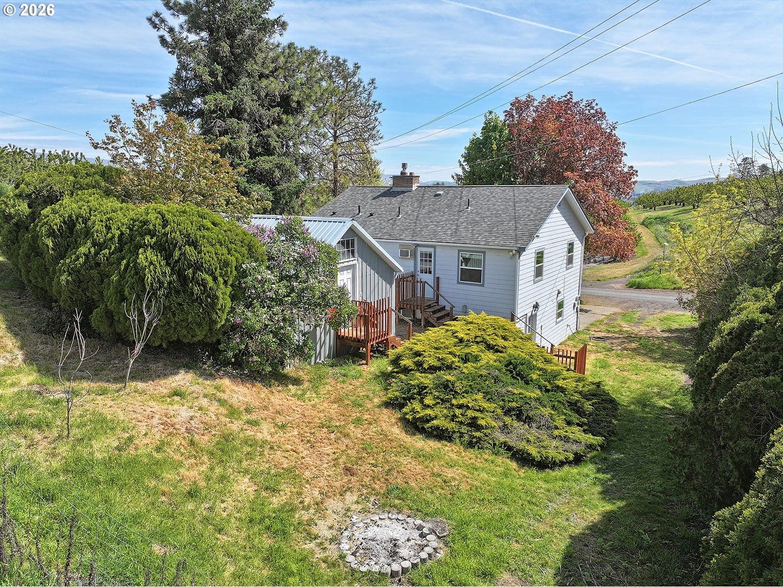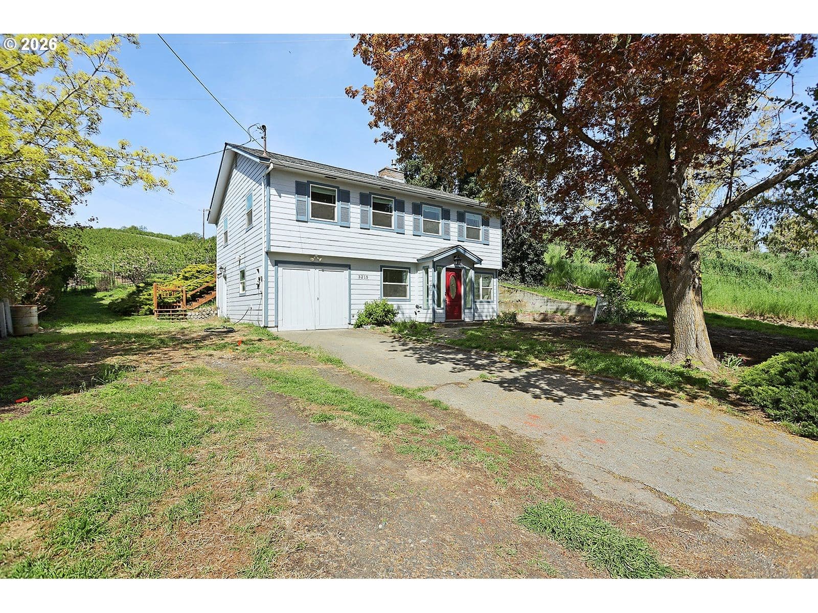 Enjoy the perfect blend of country charm and convenience with this inviting two-story home situated on a third of an acre, just under five minutes from downtown The Dalles. The spacious main living area is filled with natural light and anchored by a cozy gas fireplace, creating a warm and welcoming atmosphere. A generously sized dining room offers plenty of space for gatherings, while the kitchen features abundant counter space, ample cabinetry, and excellent storage. All bedrooms are located upstairs, including a large primary suite complete with a full ensuite bathroom and double closets. Outside, the property offers a large parking area ideal for trailers, boats, or an RV. A powered storage shed provides additional versatility for hobbies or workspace needs. Recent updates include a brand-new well pressure tank and filtration system, as well as a new septic tank.
