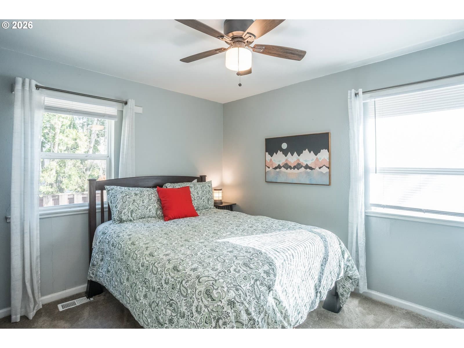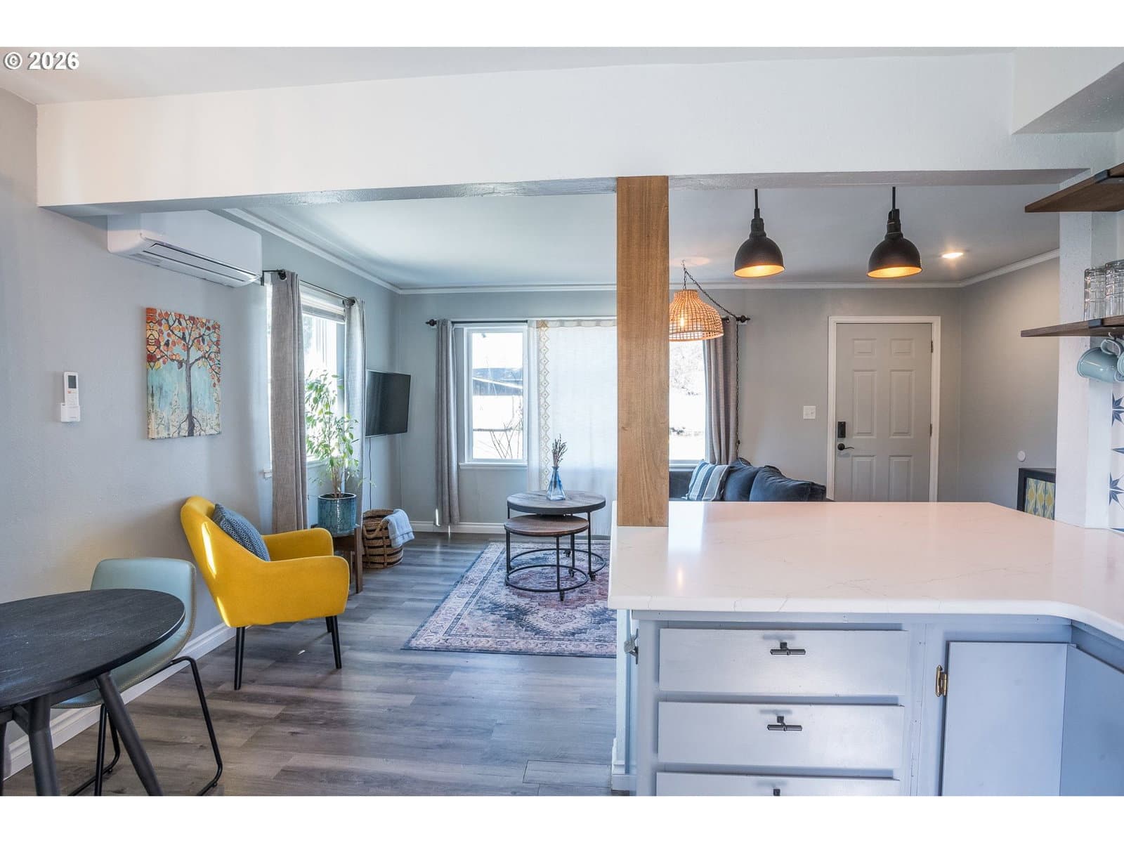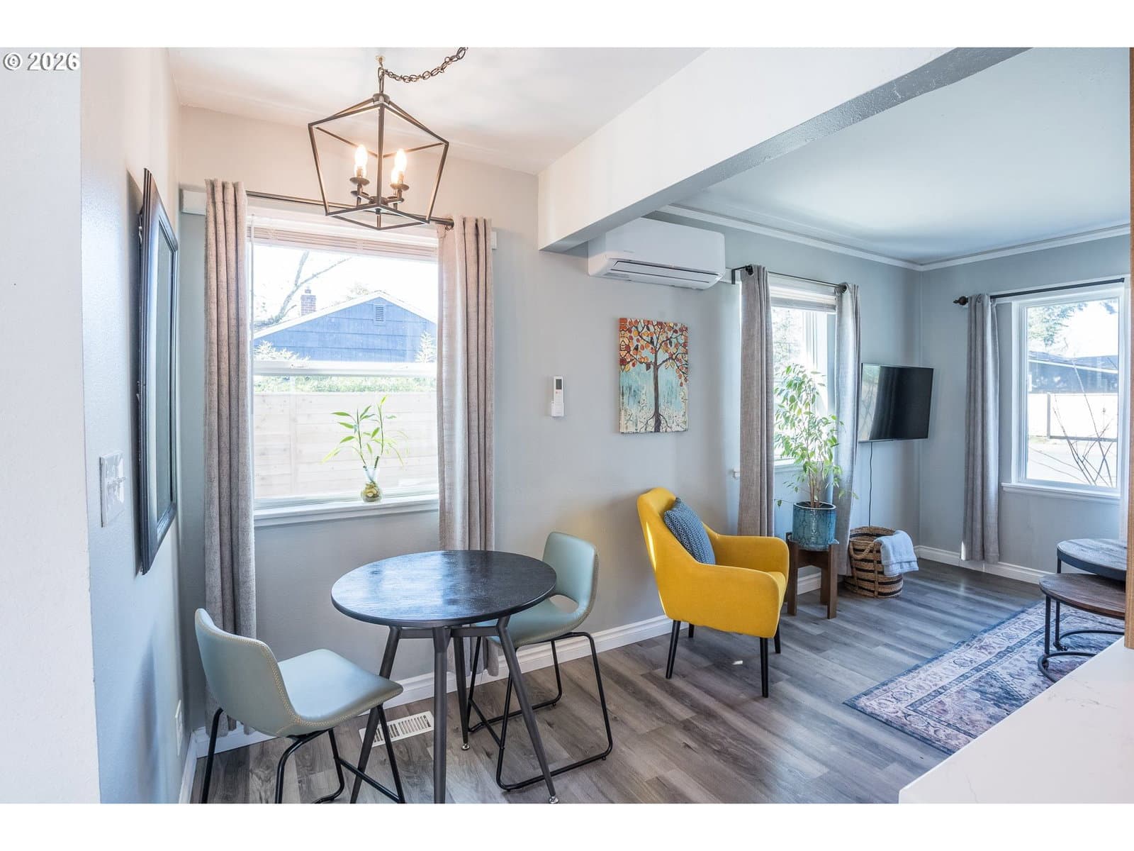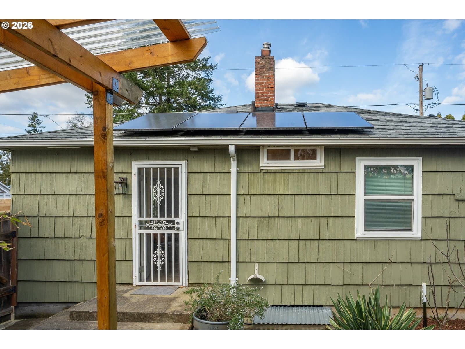 Small but mighty, this thoughtfully upgraded bungalow offers comfort, efficiency, and peace of mind. Earning a perfect 10/10 Home Energy Score, the home reflects careful updates including extensive electrical upgrades with a new panel and subpanels for the house and garage. Solar panels added in December of 2022, insulation blown into all exterior walls, a tankless hot water heater, minisplit system, and newer appliances including a dishwasher, range with hood, and washer/dryer support easy, sustainable living. Additional updates include a remodeled kitchen with quartz countertops, an earthquake retrofit, active radon mitigation system, and a newly built covered back patio with a built-in bench. Set back from the street, the home enjoys a private front yard and an efficient layout. The kitchen offers space for dining and countertop seating, opening to a warm and welcoming living room. Two bedrooms are tucked toward the back for privacy, with a centrally located full bathroom. Enjoy year-round outdoor living on the covered patio, plus RV parking with a 30-amp hookup. A detached two-car garage provides space for parking, storage, or projects. Conveniently located near parks, transit, and neighborhood amenities—come see how easily you could make yourself at home here. [Home Energy Score = 10. HES Report at https://rpt.greenbuildingregistry.com/hes/OR10087035]