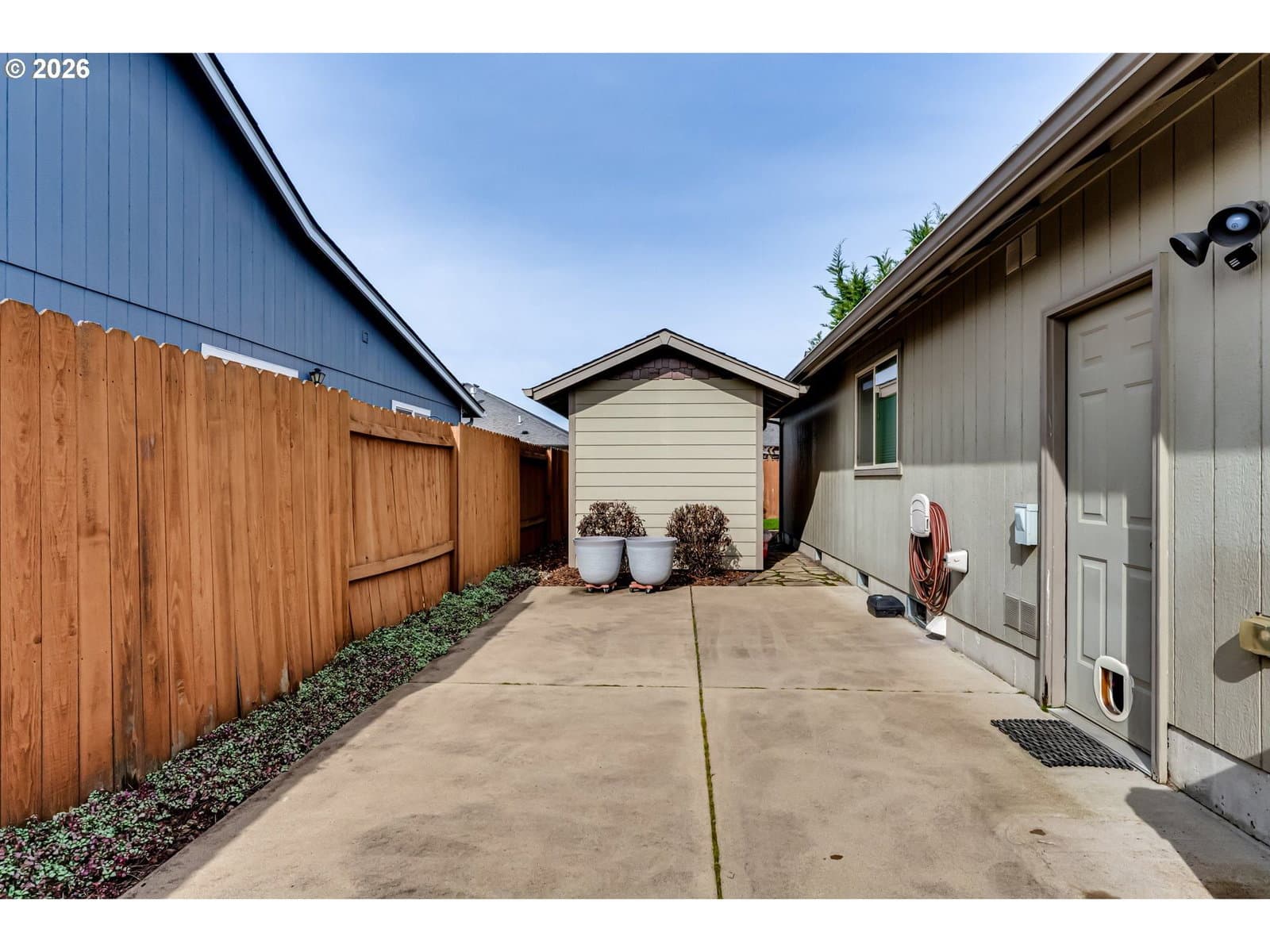 Beautiful, well-maintained single-level home in Creswell! This home offers an open floor plan with vaulted ceilings and large windows that fill the space with natural light. The kitchen features updated quartz countertops, bar-top seating, a gas range, and ample storage. The living room includes a cozy gas fireplace and views of the well-manicured backyard. The spacious primary suite includes a walk-in closet and an ensuite bathroom with a walk-in shower and double sinks with granite countertops. Two additional bedrooms are located on the opposite side of the home for added privacy and share a hallway bath with granite counters and a tub. Enjoy the beautifully maintained, fully fenced backyard with a concrete patio and storage shed, plus paved RV parking! A must see!