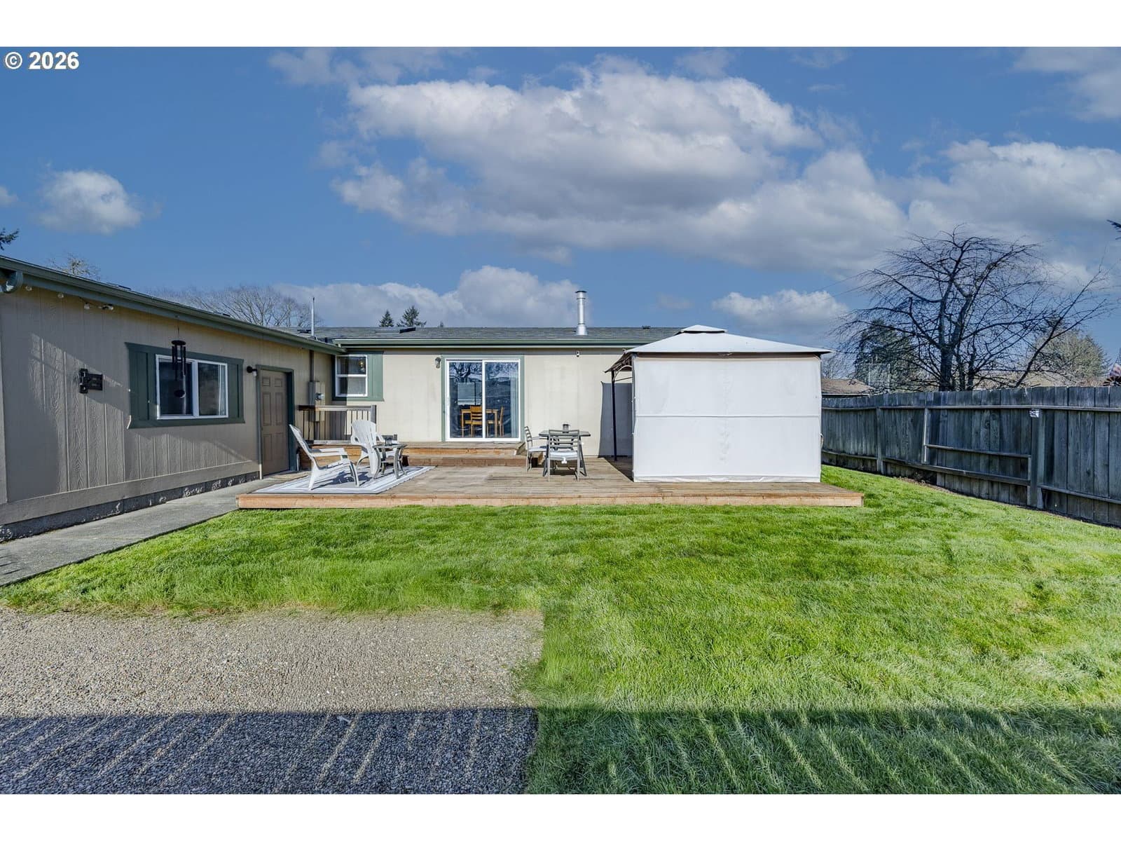 Tucked quietly off River Road, this light-filled 3-bedroom, 2-bath home offers a peaceful setting that truly feels like home. The open-concept layout is bright and airy, creating an inviting space for gatherings, movie nights, and everyday living. One bedroom features charming French doors—perfect for a playroom, home office, or cozy guest space. The true primary suite provides a relaxing retreat with its own ensuite bathroom and walk-in shower. Outside, enjoy a newly landscaped backyard with a large deck ideal for barbecues and outdoor play, fully fenced with new privacy fencing so everyone can relax and roam freely. Warm, comfortable, and move-in ready, this home is the perfect place to put down roots and make lasting memories.