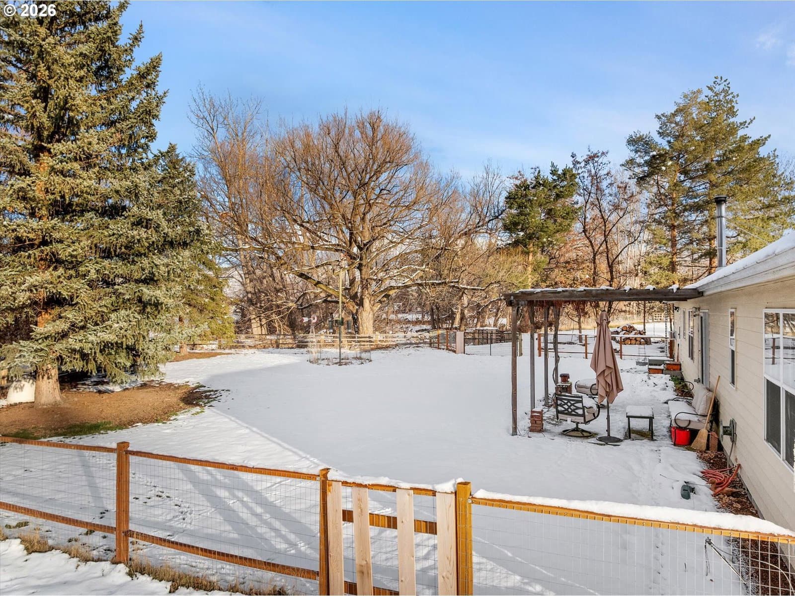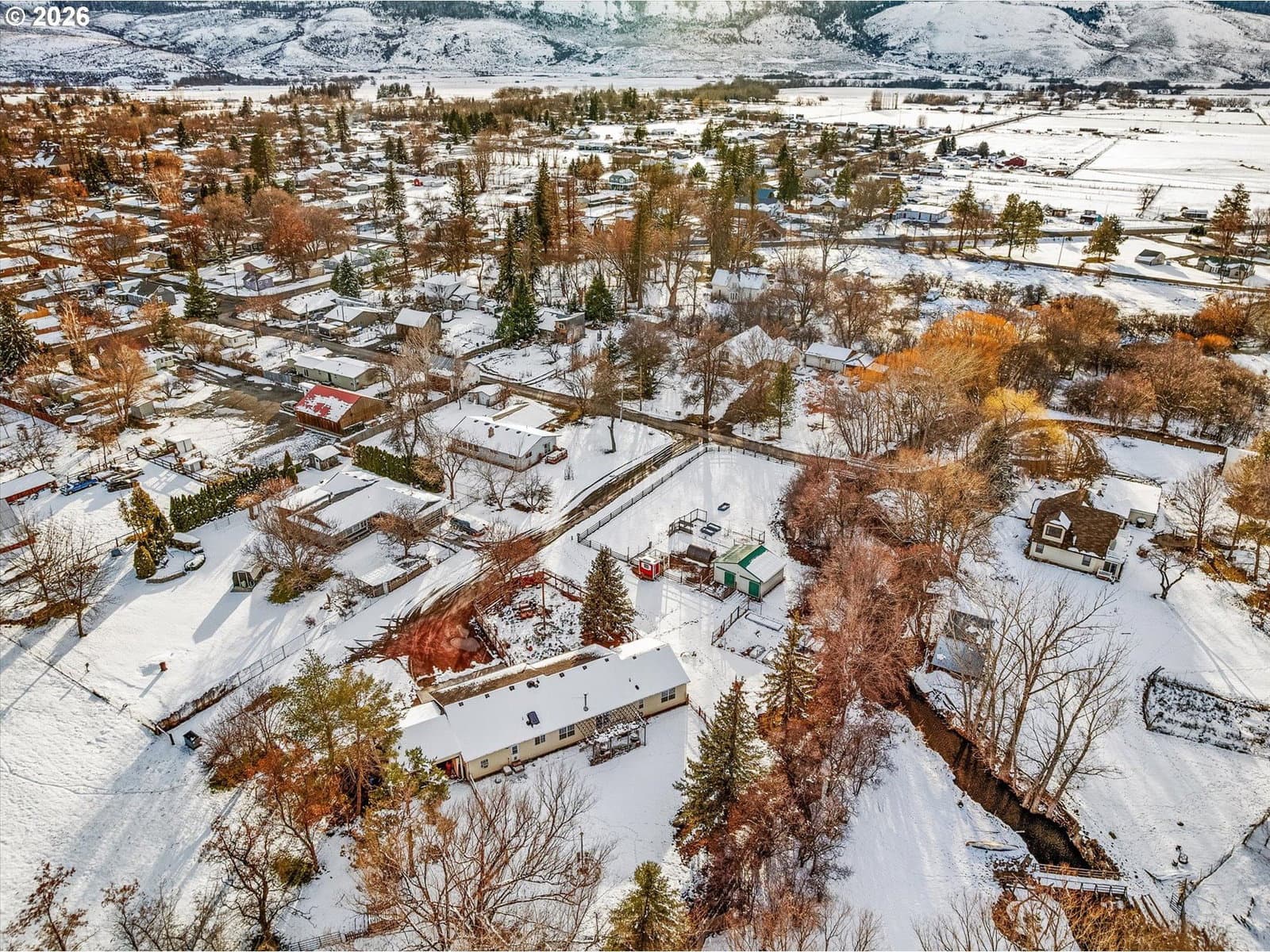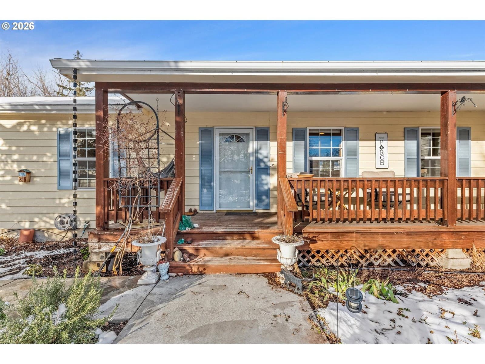 Serene country retreat on 1.1 acres in Union, OR! This immaculate one-level ranch home delivers 1,630 sq ft of easy living with 3 bedrooms, 2 baths, and an open layout. The spacious master suite is a true highlight: retreat to its beautiful, spacious bathroom—perfect for unwinding—and generous walk-in closet for effortless organization. Engineered hardwood floors flow throughout, reflecting abundant natural light that pours in through vinyl-framed windows, a cozy wood stove anchors the living room, central air keeps things comfortable, and the kitchen shines with a gas range, dishwasher, range hood, microwave, and a beautiful stone sink for elegant functionality with a built-in disposal. An oversized laundry room adds everyday convenience with huge pantry storage—perfect for supplies, folding, or extra organization! Step outside to your own peaceful paradise on a quiet corner lot in a cul-de-sac: the backyard view is stunning, with lush, mature trees lining a charming creek that meanders through the property—offering the soothing sound of babbling water, dappled shade, and a tranquil, nature-immersed backdrop right at home. Six raised garden beds ready for your touch, poultry coop for fresh eggs, large horse barn, an attached 3-car garage, and a dedicated 2-bay RV carport for your motorhome, trailer, or extra vehicles! All appliances stay: refrigerator, washer and dryer, plus a mower for easy acreage upkeep. Move-in ready—perfect for hobby farming or quiet country living along your private creek. Here is your blank canvas... come make it beautiful!