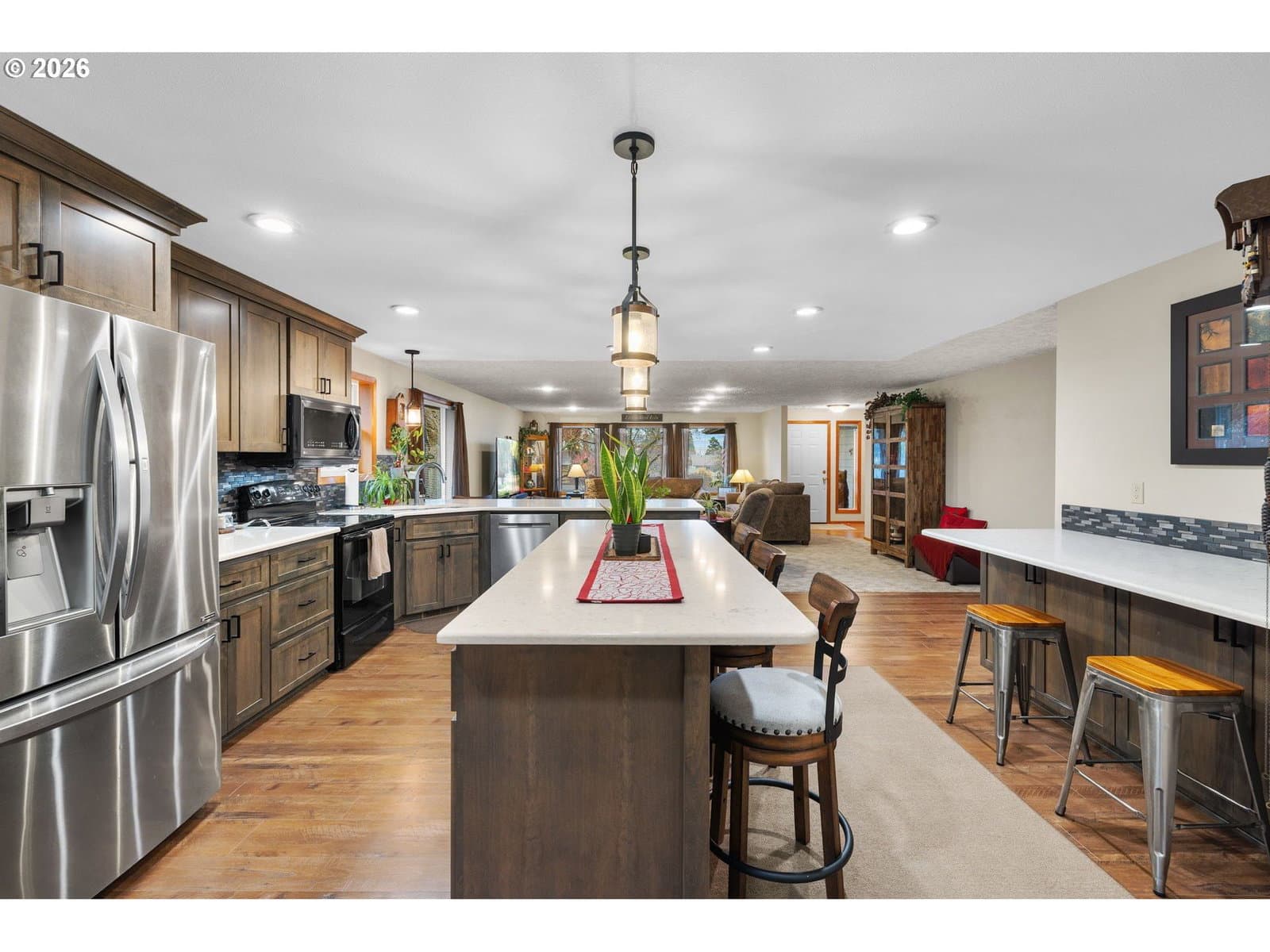 Rare In-Town Quarter Acre Gem with Large Shop! A truly hard-to-find in-town property offering space, function and upgrades you almost never see together. This nearly 1800sf single level home sits on a rare 1/4 acre lot and delivers perfect blend of everyday comfort and serious utility. Highlights: 3 bedrooms, 2 bathrooms, newer roof, HVAC, brand new $40k kitchen update with quartz counters, stainless appliances, huge entertainers dream islands w/28ft of quartz counters and pantry. Covered back patio ideal for year round enjoyment, extended driveway for RV & boat parking. Insulated Shop boasts high ceilings, concrete floors, pellet stove and more. This property is a dream for car enthusiasts, hobbyists or anyone who needs room for toys, tools and trailers-all while staying conveniently in town. Opportunities like this are extremely rare, if you have been searching for space without sacrificing location...this is the home for you!