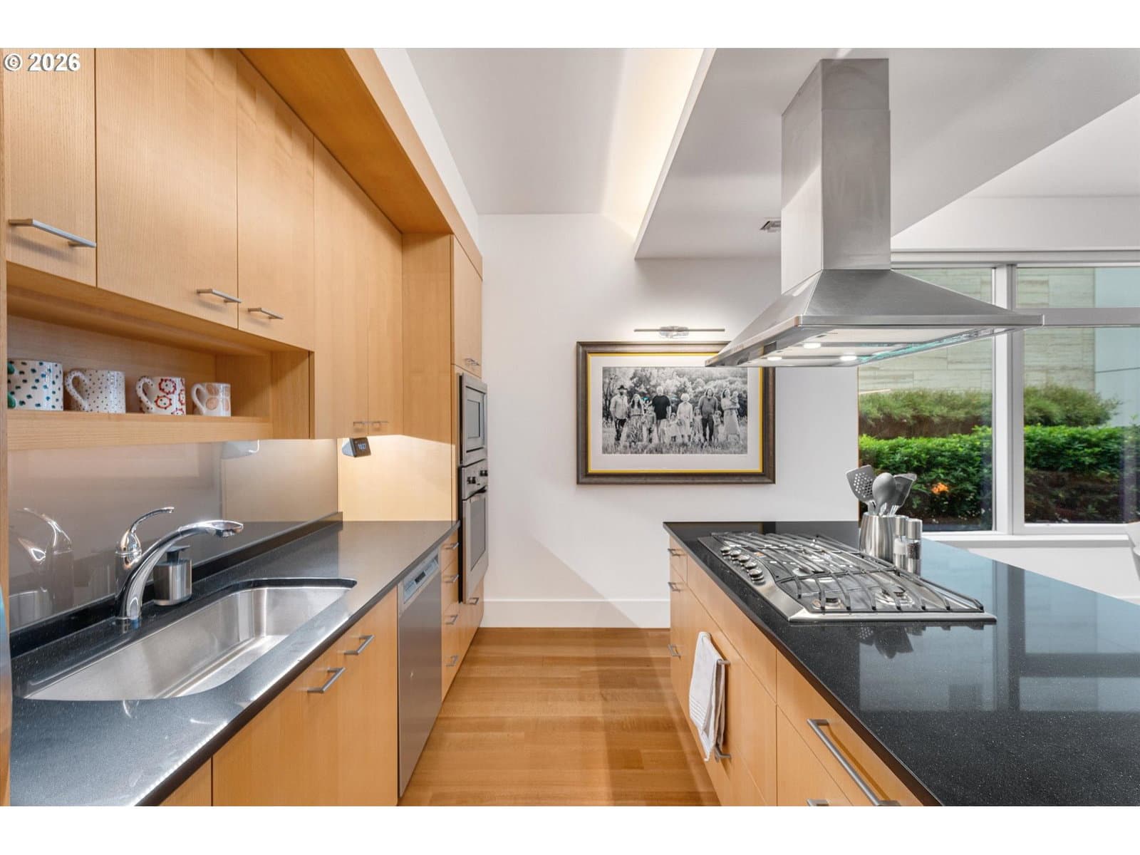 This exceptional corner residence at the Metropolitan offers a rare blend of privacy, light, and luxury in the heart of Portland’s Pearl District. Surrounded by lush greenery, the private outdoor patio provides a peaceful retreat—perfect for morning coffee—while walls of windows fill the pristine, open living space with natural light. Hardwood floors, a fireplace, granite counters, a cook’s island, and Viking & Sharp stainless steel appliances elevate everyday living, complemented by Hunter Douglas blinds, recessed lighting, a new $12,000 HVAC system in 2022 and a brand-new LG washer and dryer. Spa-inspired bathrooms feature travertine stone accents, with a serene primary suite offering a walk-in closet, soaking tub, walk-in shower, double sinks, and new Kohler lighted medicine cabinets. Enjoy a true 5-star lifestyle with 24-hour concierge service, fitness center, guest suites, elegant lounges, wine storage, and beautifully designed outdoor common areas—all just steps from the Pearl District’s renowned dining, shopping, parks, and nightlife. Includes two deeded parking spaces and a storage unit.