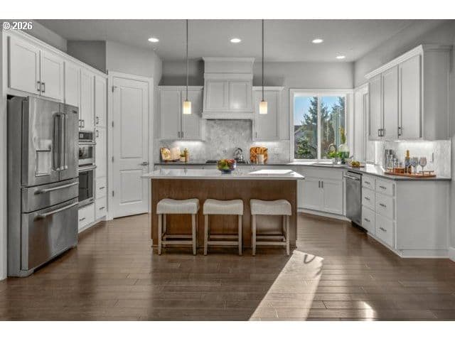 This 3,044 sq. ft. residence perfectly blends luxury and functionality, offering 4 spacious bedrooms plus a dedicated home office. Hardwood floors on main floor and wall to wall carpet upstairs. Designed with a sophisticated open-concept flow, the home features a gourmet kitchen that serves as the heart of the great room, anchored by an expansive eat-in island and high-end stainless steel appliances.Key Features:Chef’s Kitchen: Equipped with a gas cooktop, built-in double ovens, and a convenient butler’s pantry.Inviting Living Spaces: The great room is framed by elegant built-in bookshelves and a cozy gas fireplace, flowing seamlessly into both formal and informal dining areas.Primary Retreat: A sprawling 19’ x 17’ suite offering breathtaking Mt. Hood views, dual walk-in closets, and a spa-like ensuite with a soaking tub and walk-in shower.Thoughtful Layout: All secondary bedrooms are generously sized; bedrooms 2 and 3 feature walk-in closets, while the 4th includes a custom closet organizer.Modern Utilities: Efficient living with a tankless gas water heater, gas heat, and an oversized 3-car attached garage. 1621 114th Ave. SE Ste. 123, Bellevue, WA, 98004