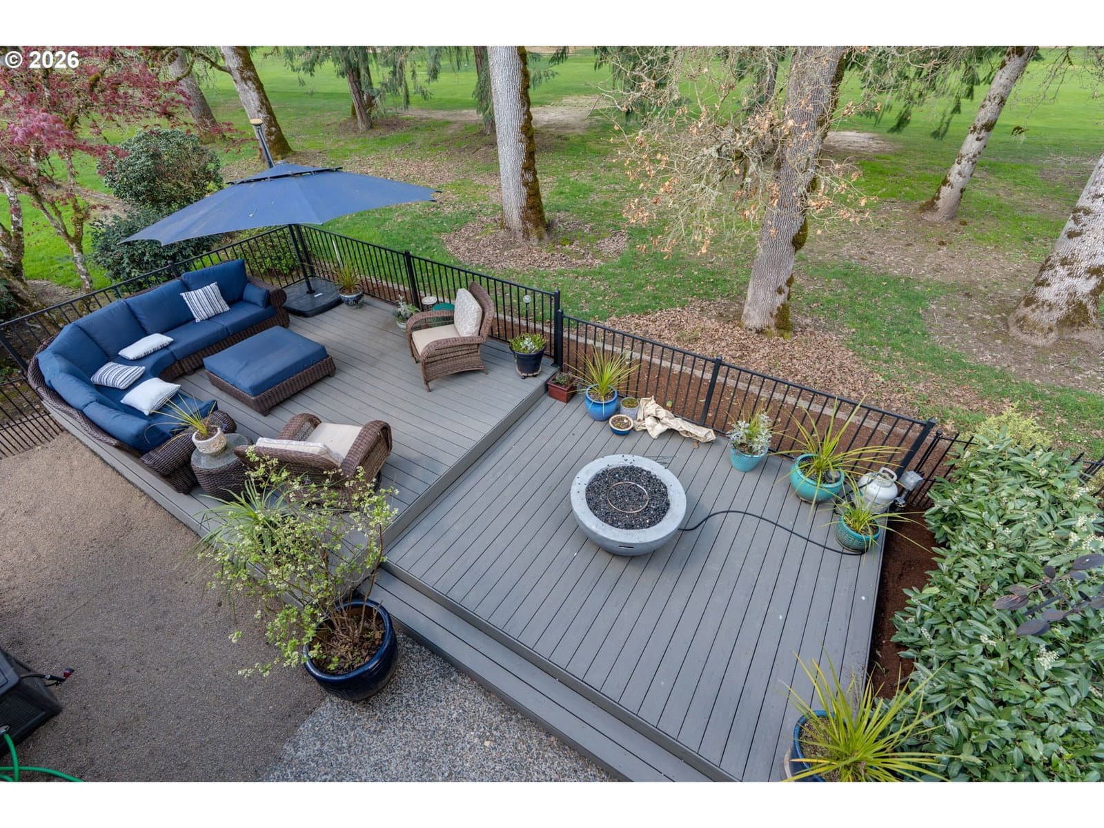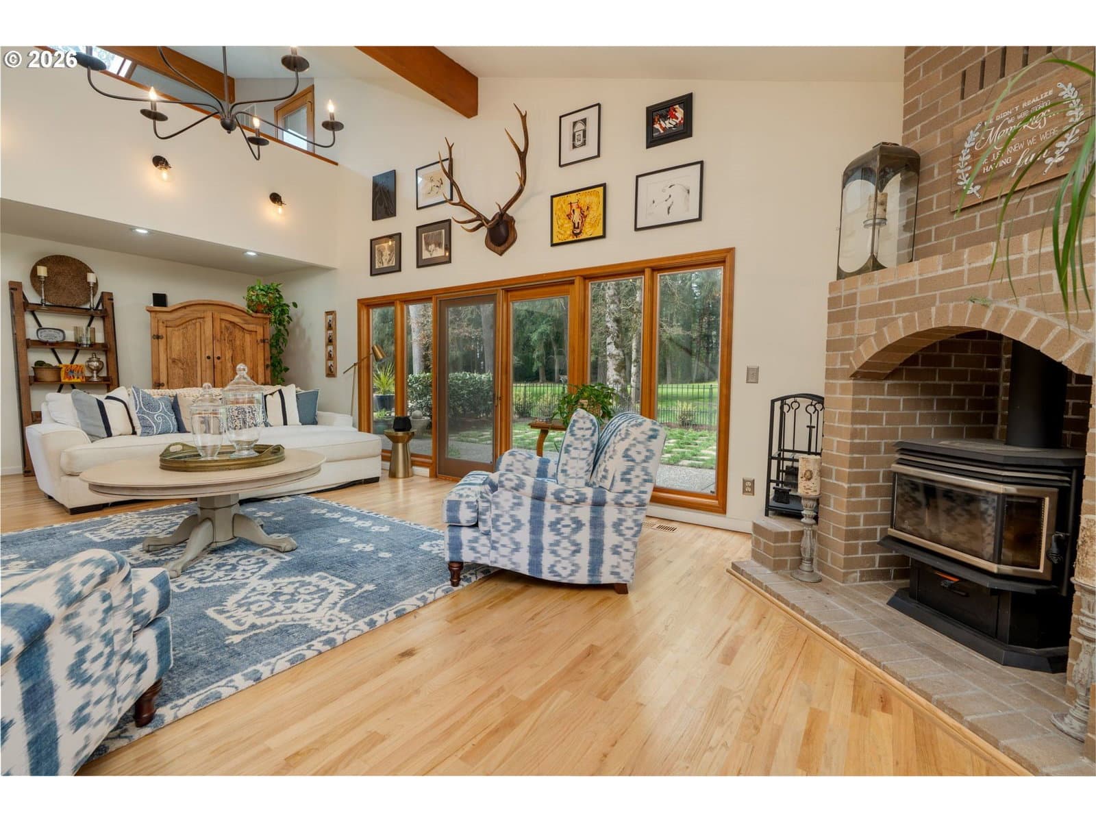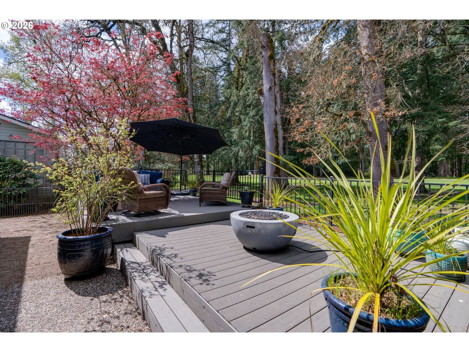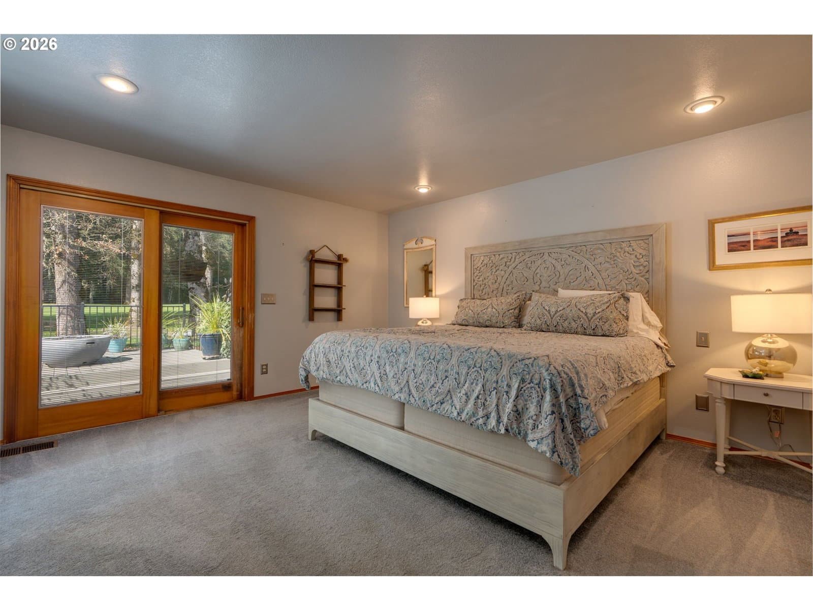 Entertainer's dream home! Located in one of the most desirable, private neighborhoods in McMinnville, you will love coming home as you drive through the heart of a golf community. This is one of the largest homes in Michelbook's 4th Addition, and features a loft for extra room. You'll look out at the 3rd tee in your over-sized living room, featuring vaulted ceilings and a wall of windows. When it's cool, stay cozy with your wood burning stove. Extensive updates, including hard wood flooring, carpet, tiled laundry room and bathrooms, and granite counter tops in the kitchen and bathrooms. Huge primary bedroom with slider to backyard. Luxurious, spa-like primary bath with stand alone soaking tub, heated floor, double sinks and sky lights. Two hot water heaters means you'll never run out of hot water. The outdoor living areas are set among the tall trees, featuring a two-level composite deck, extended patio with tiles, and a beautiful garden courtyard entry with fountain. Nature lovers will enjoy the 75' of golf course frontage, watching the deer, squirrels and birds in your backyard. Large lot and driveway gives you room to spread out. Owners are licensed real estate brokers.