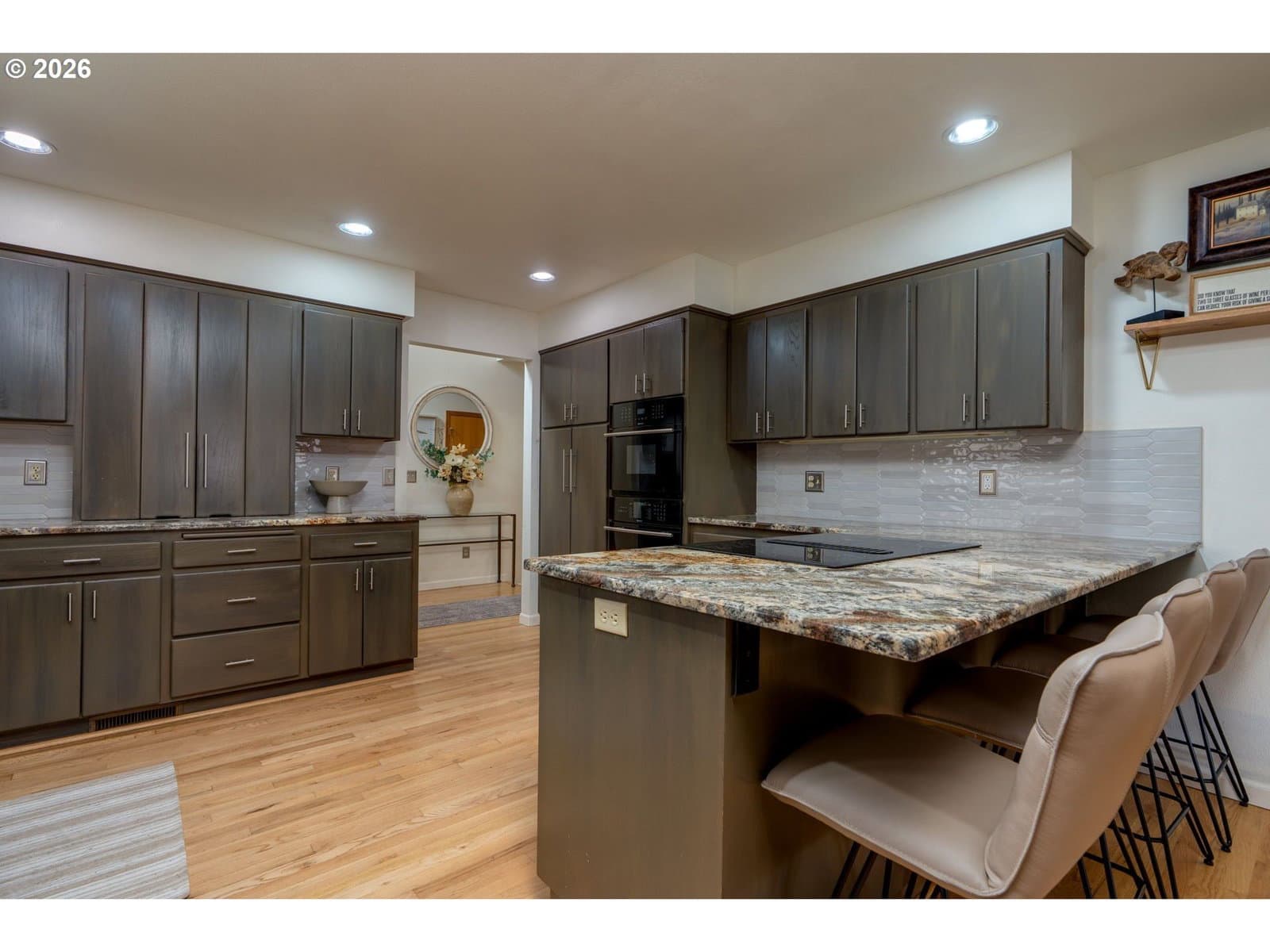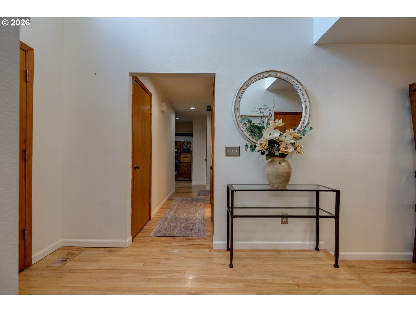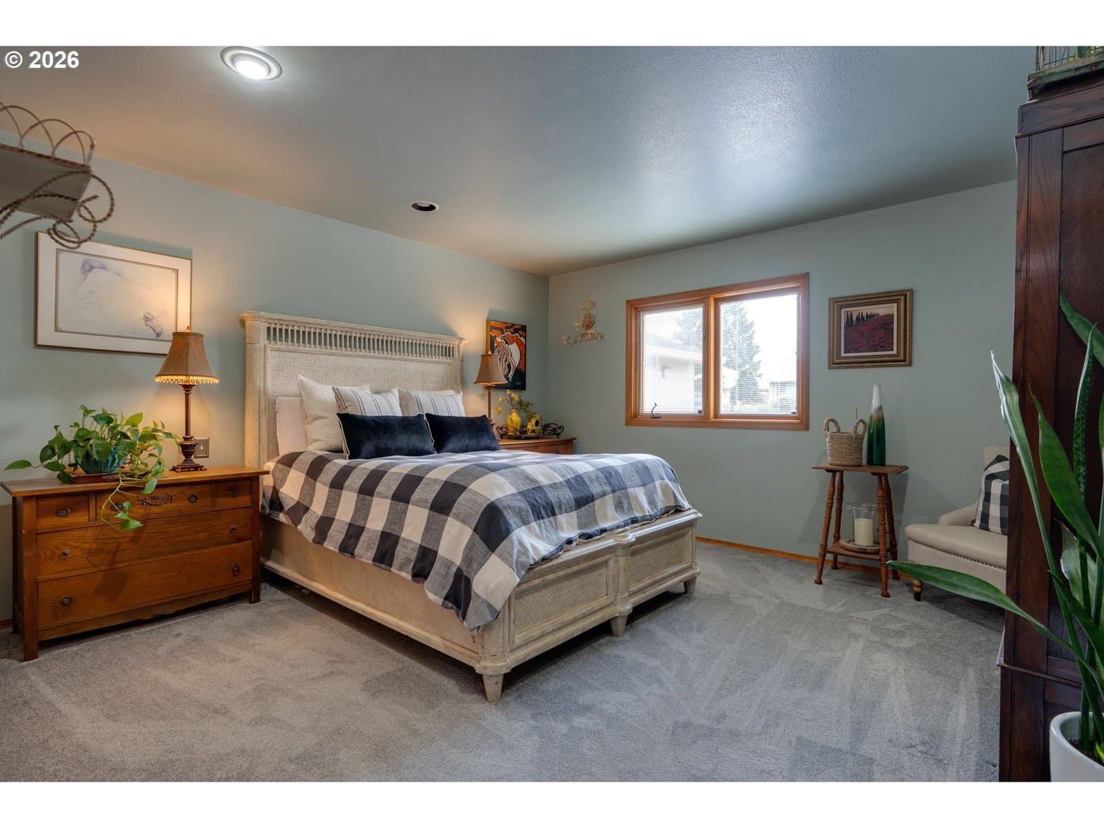 Entertainer's dream home! Located in one of the most desirable, private neighborhoods in McMinnville, you will love coming home as you drive through the heart of a golf community. This is one of the largest homes in Michelbook's 4th Addition, and features a loft for extra room. You'll look out at the 3rd tee in your over-sized living room, featuring vaulted ceilings and a wall of windows. When it's cool, stay cozy with your wood burning stove. Extensive updates, including hard wood flooring, carpet, tiled laundry room and bathrooms, and granite counter tops in the kitchen and bathrooms. Huge primary bedroom with slider to backyard. Luxurious, spa-like primary bath with stand alone soaking tub, heated floor, double sinks and sky lights. Two hot water heaters means you'll never run out of hot water. The outdoor living areas are set among the tall trees, featuring a two-level composite deck, extended patio with tiles, and a beautiful garden courtyard entry with fountain. Nature lovers will enjoy the 75' of golf course frontage, watching the deer, squirrels and birds in your backyard. Large lot and driveway gives you room to spread out. Owners are licensed real estate brokers.