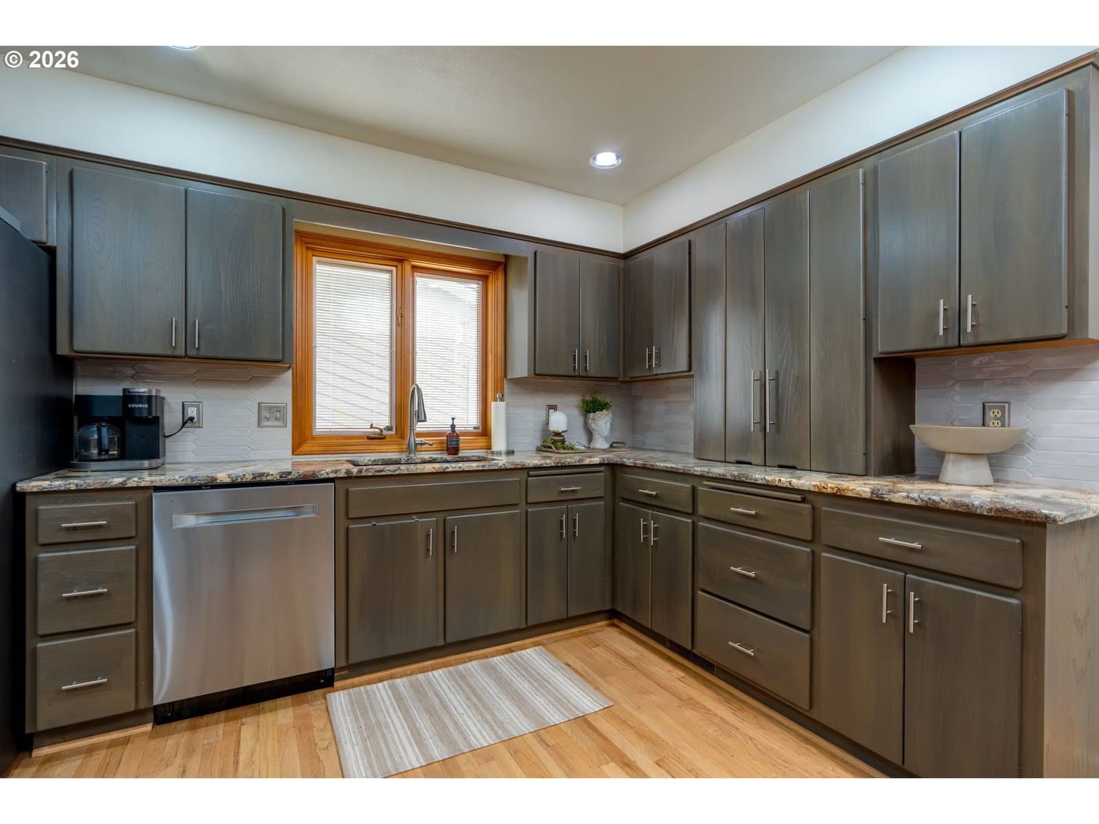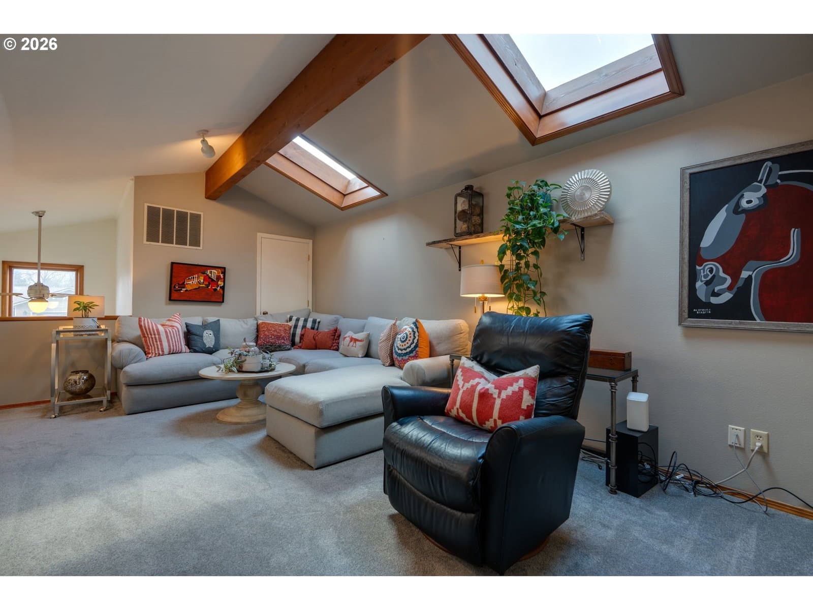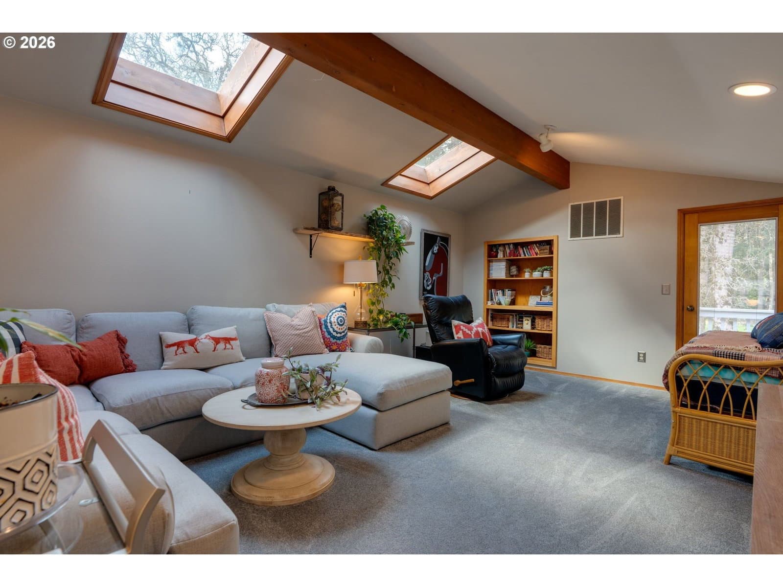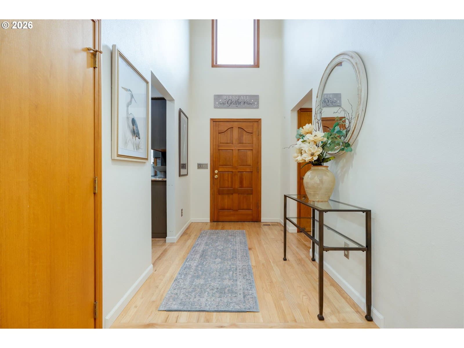 Entertainer's dream home! Located in one of the most desirable, private neighborhoods in McMinnville, you will love coming home as you drive through the heart of a golf community. This is one of the largest homes in Michelbook's 4th Addition, and features a loft for extra room. You'll look out at the 3rd tee in your over-sized living room, featuring vaulted ceilings and a wall of windows. When it's cool, stay cozy with your wood burning stove. Extensive updates, including hard wood flooring, carpet, tiled laundry room and bathrooms, and granite counter tops in the kitchen and bathrooms. Huge primary bedroom with slider to backyard. Luxurious, spa-like primary bath with stand alone soaking tub, heated floor, double sinks and sky lights. Two hot water heaters means you'll never run out of hot water. The outdoor living areas are set among the tall trees, featuring a two-level composite deck, extended patio with tiles, and a beautiful garden courtyard entry with fountain. Nature lovers will enjoy the 75' of golf course frontage, watching the deer, squirrels and birds in your backyard. Large lot and driveway gives you room to spread out. Owners are licensed real estate brokers.