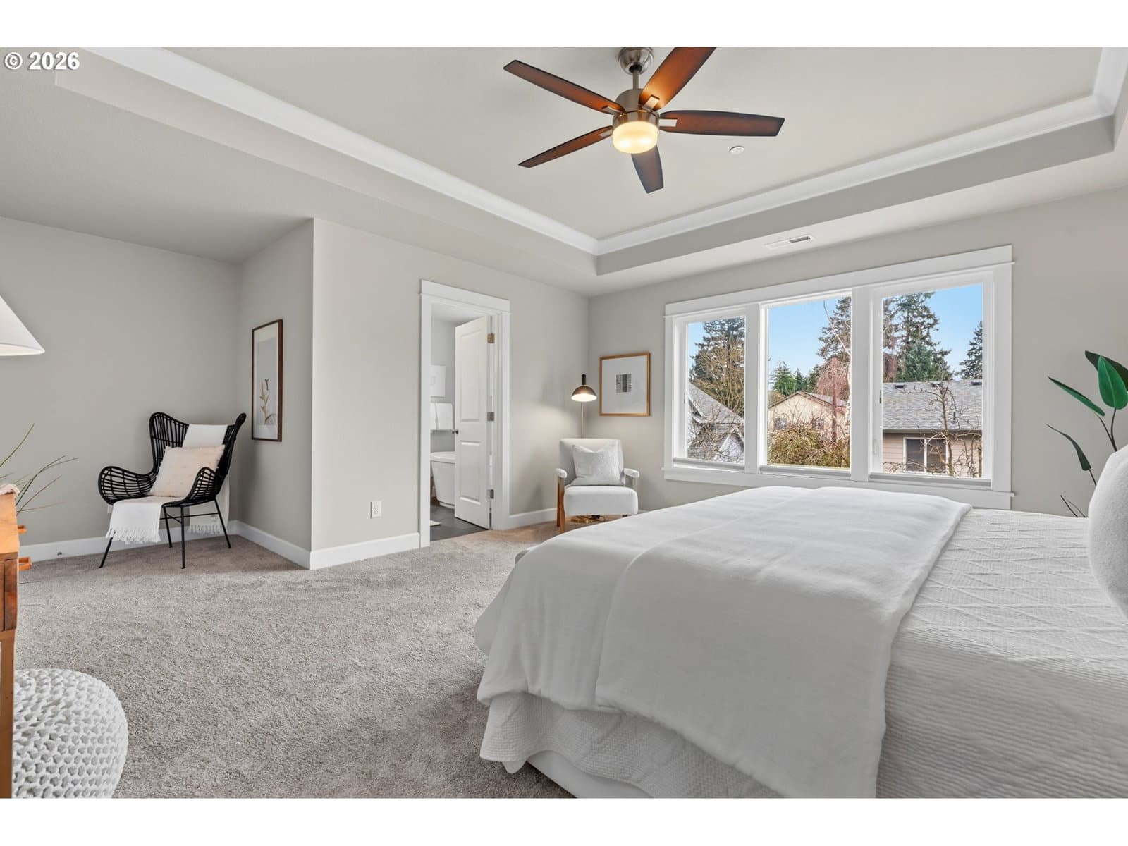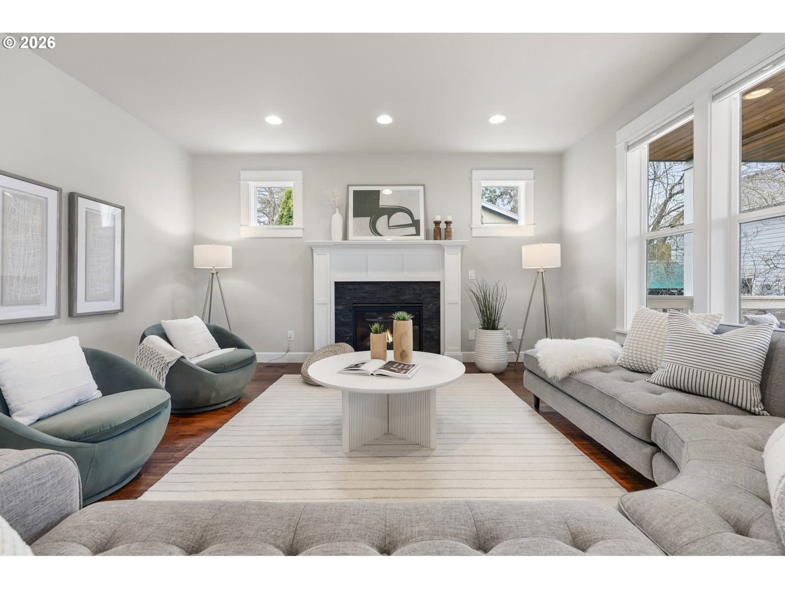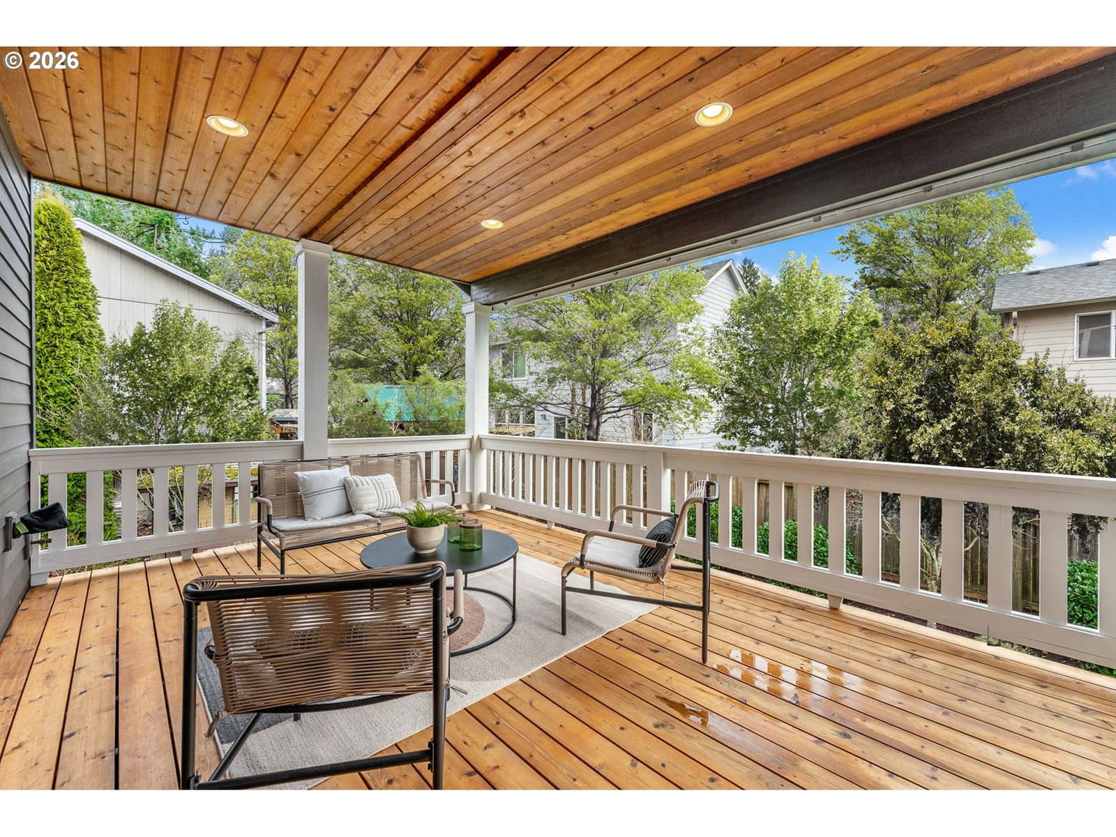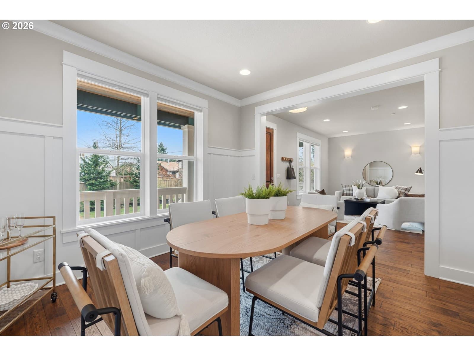 Whisper quiet in Woodstock! Stunning Craftsman-style sanctuary beckons from a private lot amid lush lawns, fruit trees and gardens. Inside, classic elements such as wainscoting and rich-hued hardwood floors combined with a modern floorplan elevate this stately gem. High ceilings and picture windows lend elegance to the formal living and dining rooms. The great-room kitchen forms the heart of this home - offering a copiously sized quartz prep island/eat bar, casual eating area, and butler's pantry. The kitchen sits perfectly adjacent to the family room for a truly communal experience. Step outside to the ample, covered deck for espresso sunrises amid a flourish of fruit trees. Or have an evening meal with a glass of Oregon Pinot on one of those endless summer evenings. For rest, the upstairs provides 4 bedrooms including the pamper-worthy, primary suite replete with tray ceiling, slate flooring, glass & tile shower, walk-in closet and sumptuous soak tub. A laundry room with tile floor, sink and built-ins is conveniently located upstairs as well. For remote workers, the downstairs offers an amazing flex-space: home office, personal gym or 5th (guest) bedroom including closet, concrete floor and egress window. This private lot also features extra parking space, a tuck-under garage and is just blocks to thriving Woodstock: New Season's Market, Grand Central Bakery, food carts, Sunday farmer's market, and easy proximity to Division/Hawthorne/Belmont foodie scene. All of this, just blocks to several parks including Woodstock Park, Brentwood Park and Eastmoreland Golf Course. Easy downtown commute and PDX airport. [Home Energy Score = 5. HES Report at https://rpt.greenbuildingregistry.com/hes/OR10244130]