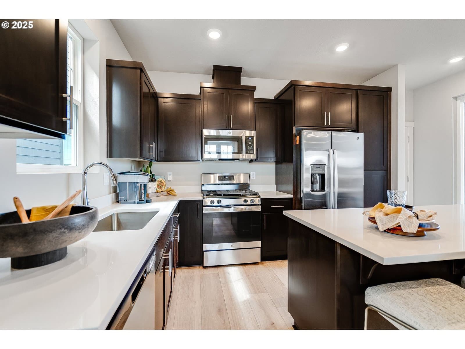Welcome to Meadowview by Lennar. The new construction Clark plan offers a spacious two-story layout designed for comfort and connection. The main level features an open-concept kitchen, dining nook, and fireplace-warmed great room that opens to a covered patio for easy indoor-outdoor living. Upstairs are four bedrooms, including the inviting primary suite with an ensuite bathroom featuring a soaking tub and shower, double vanity, and walk-in closet. Interior highlights include quartz countertops, Shaker-style cabinets, LVP (luxury vinyl plank) flooring in the kitchen and entryway, LVT (luxury vinyl tile) flooring in the bathrooms, and two-tone interior paint. This home also comes complete with central air conditioning, a refrigerator, washer and dryer, and blinds—all at no extra cost. Nestled in a peaceful community surrounded by protected wetlands, Meadowview offers walking access to local parks and trails, as well as nearby grocery stores, schools, and restaurants. Downtown Eugene’s vibrant shopping, dining, and entertainment options are within easy reach, and the University of Oregon provides added opportunities for education and professional growth. With the Willamette River, Fern Ridge Lake, and the Oregon Coast all close by, outdoor recreation abounds. Rendering is artist conception only. Photos are of a similar home, features and finishes will vary. Estimated completion: March 2026 Home Site 9