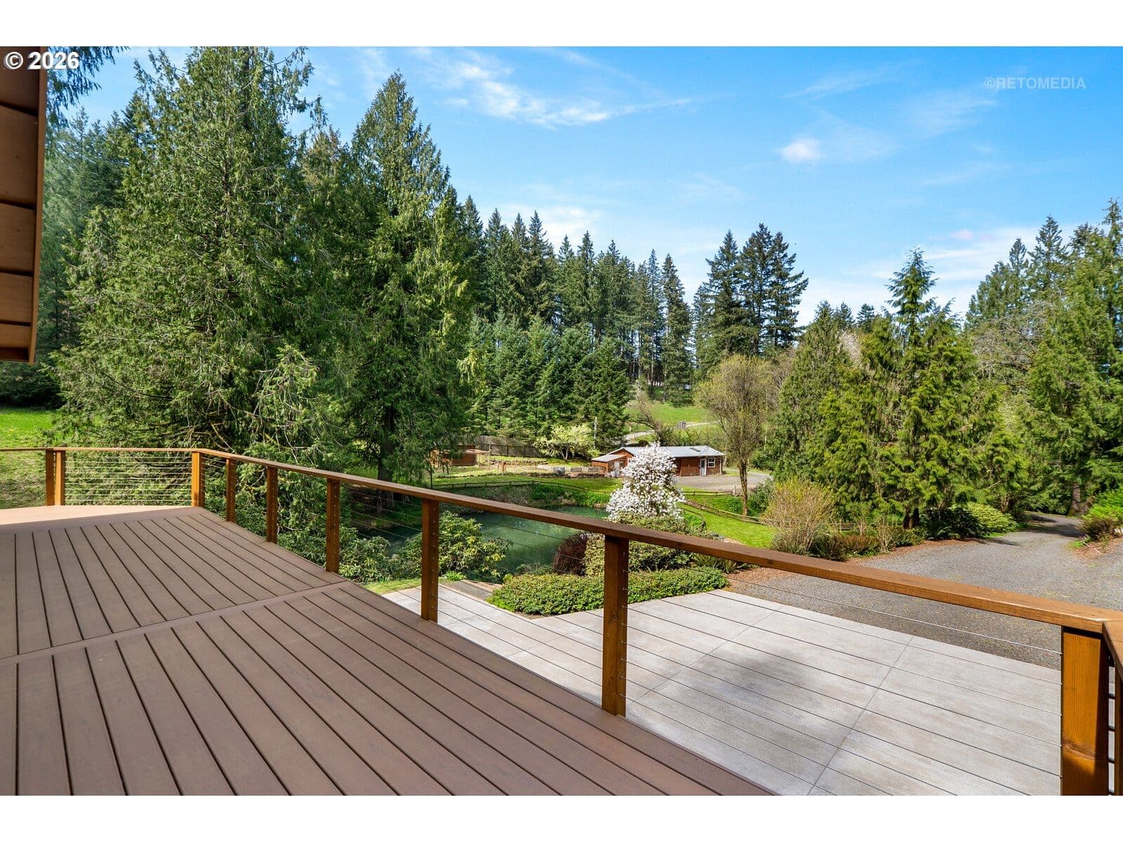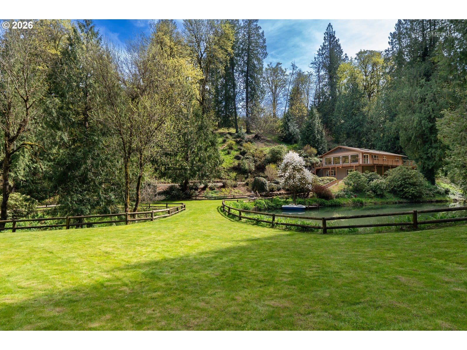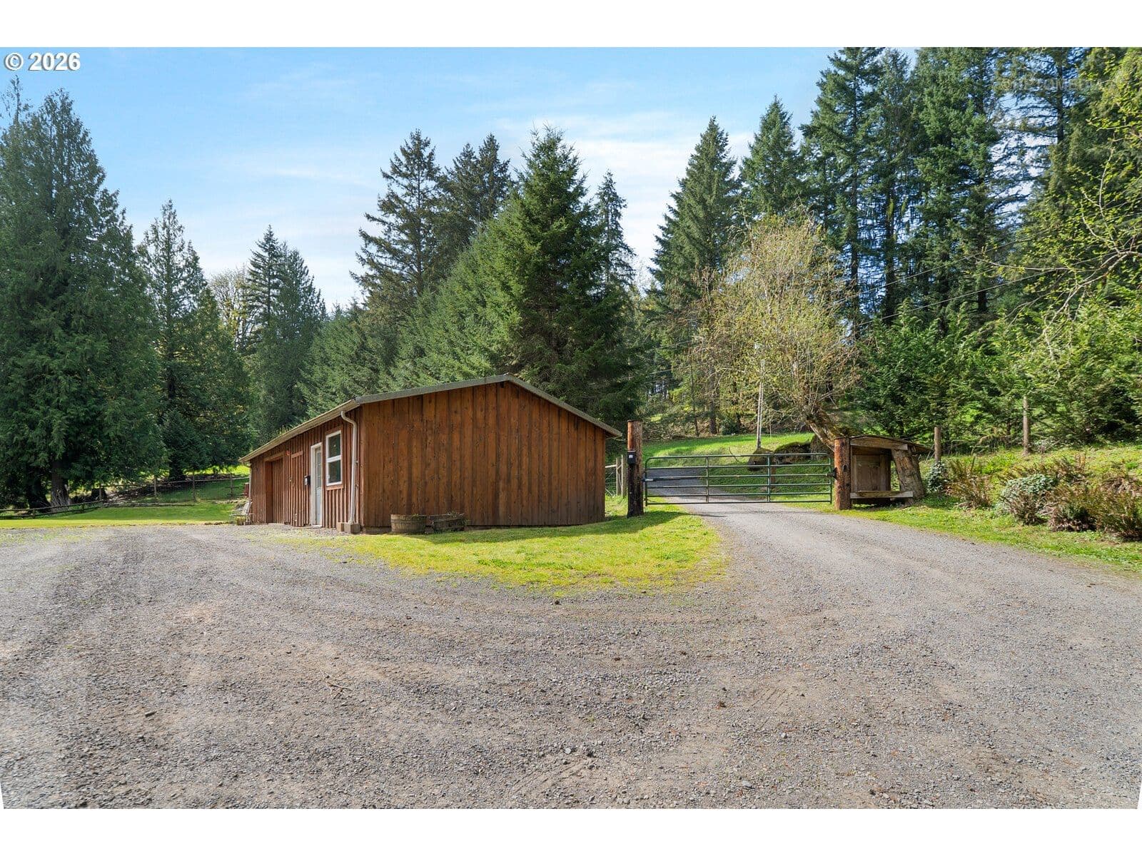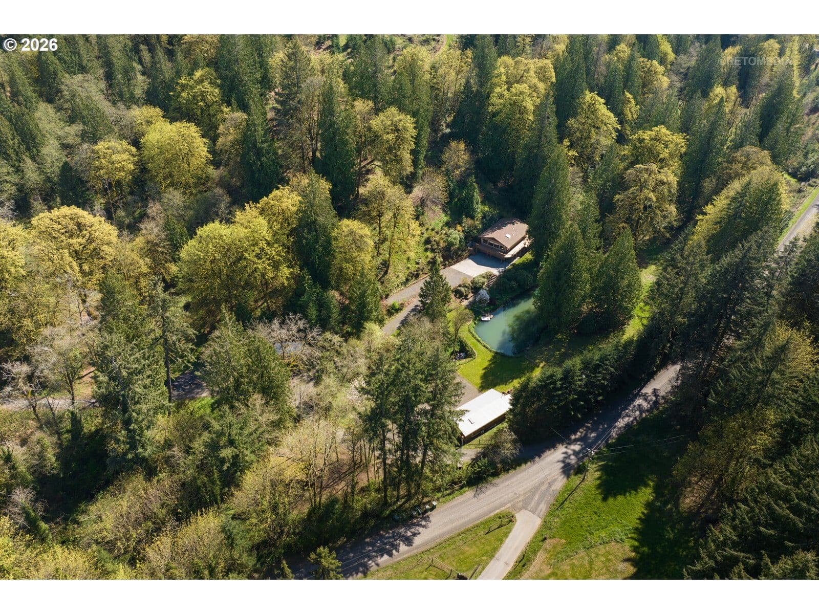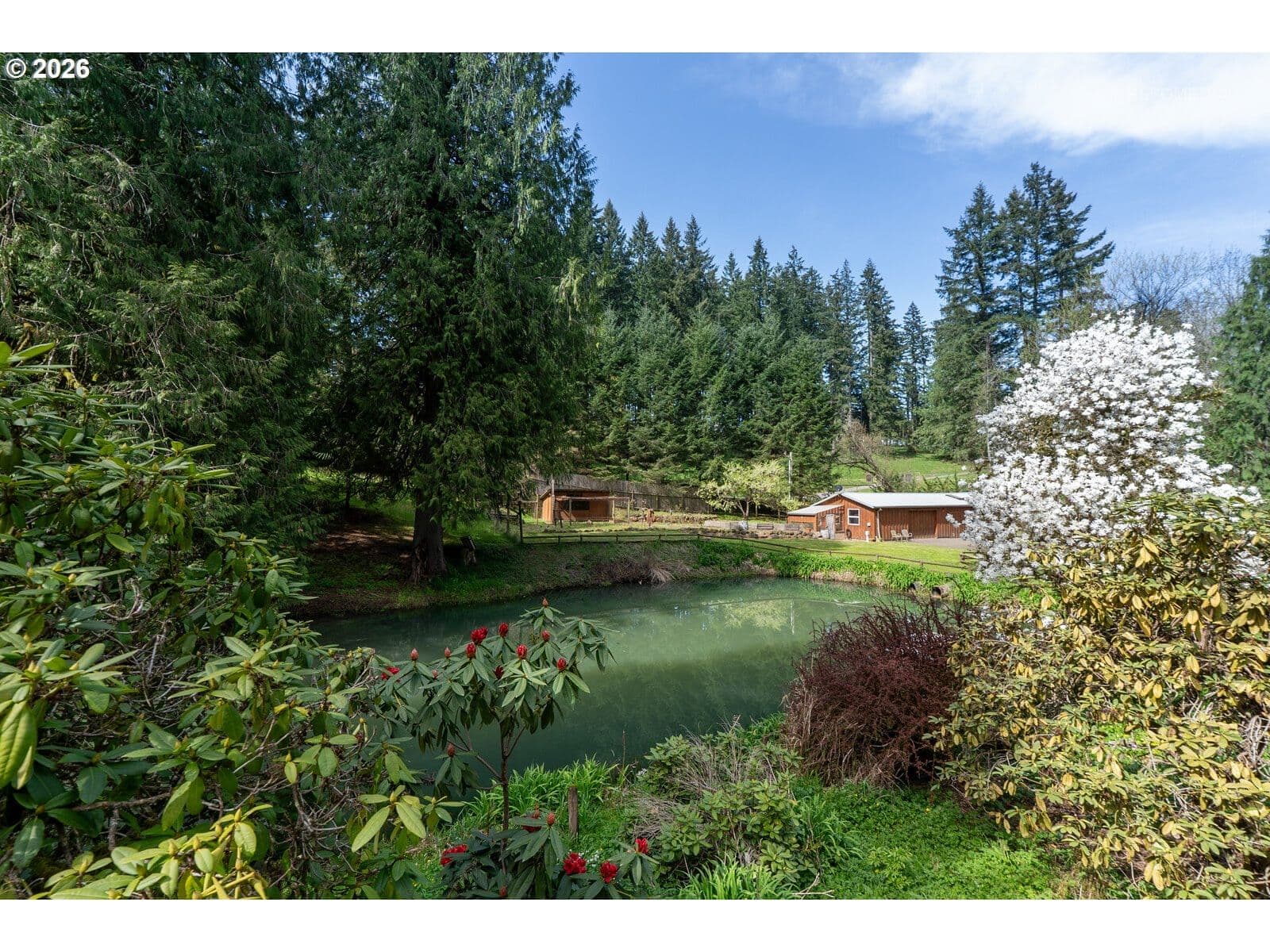 A private sanctuary at the edge of Newberg and Sherwood, this custom 4 bed, 3 bath estate offers over 3,300 square feet and the kind of privacy most people only dream about. Behind a gated entrance, 7 park-like acres live far larger as the property sits adjacent to an 80 acre protected forest area, giving you endless views and peace. The land here invites you to explore, unwind, and play with a gorgeous creek fed private pond, waterfall, chicken coop, hot tub, private trails for hiking or ATVs, and open spaces under a canopy of trees that change with every season. Extensively refreshed inside and out, this custom home is designed to pull the outdoors in with walls of windows, vaulted living spaces, timeless quality updates, and a natural flow that works just as well for quiet mornings as it does for hosting a crowd. Recent major upgrades, including the furnace, deck, and driveway, mean the big projects are already handled so you can simply enjoy the home and focus on your next adventure. A detached flex space expands how you live and work, offering an ideal executive office, creative studio, guest space, or potential bunkhouse, plus additional shop area for projects and storage. Outside, the land invites you to explore, unwind, and play with a gorgeous creek fed private pond, waterfall, chicken coop, hot tub, and open spaces under a canopy of trees that change with every season. Tucked in the heart of Oregon wine country, you are less than 10 minutes to The Allison Inn & Spa and acclaimed area vineyards, with about a 35 minute drive to Portland for commuting, dining, and culture. This is rare, refined country living, with nearby Newberg and Sherwood Oregon amenities making life here feel balanced; schedule a visit, walk the property and experience the magic yourself. Versatile detached flex building offering bonus space along w/adjoining shop, ideal for office, studio, possible future guest overflow or bunkhouse, plus storage for tools, toys and year round projects. The den is heated/finished and features 376 SF
