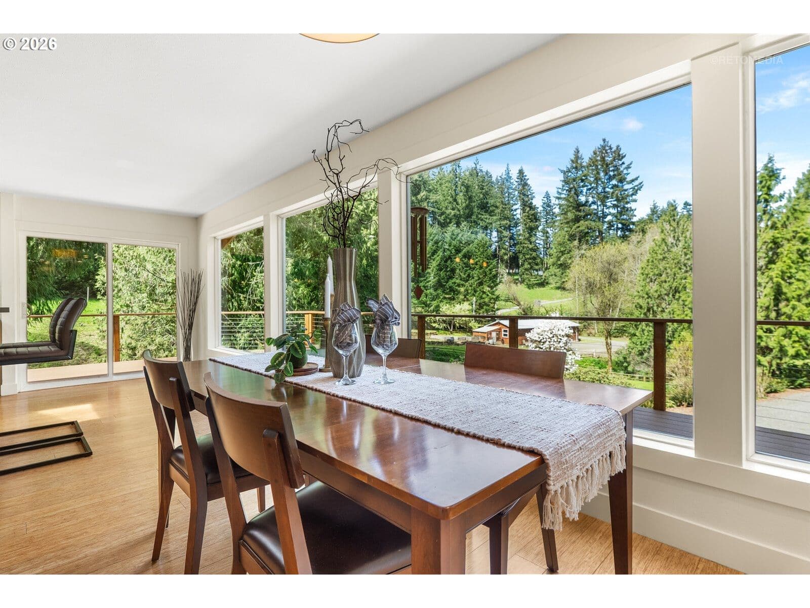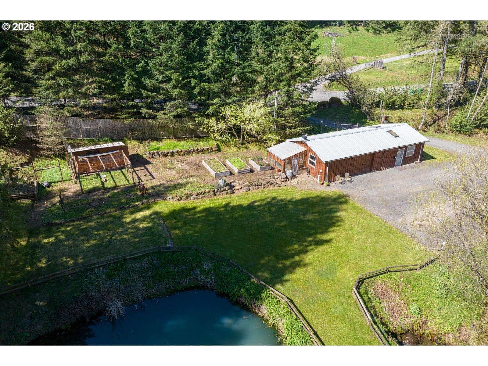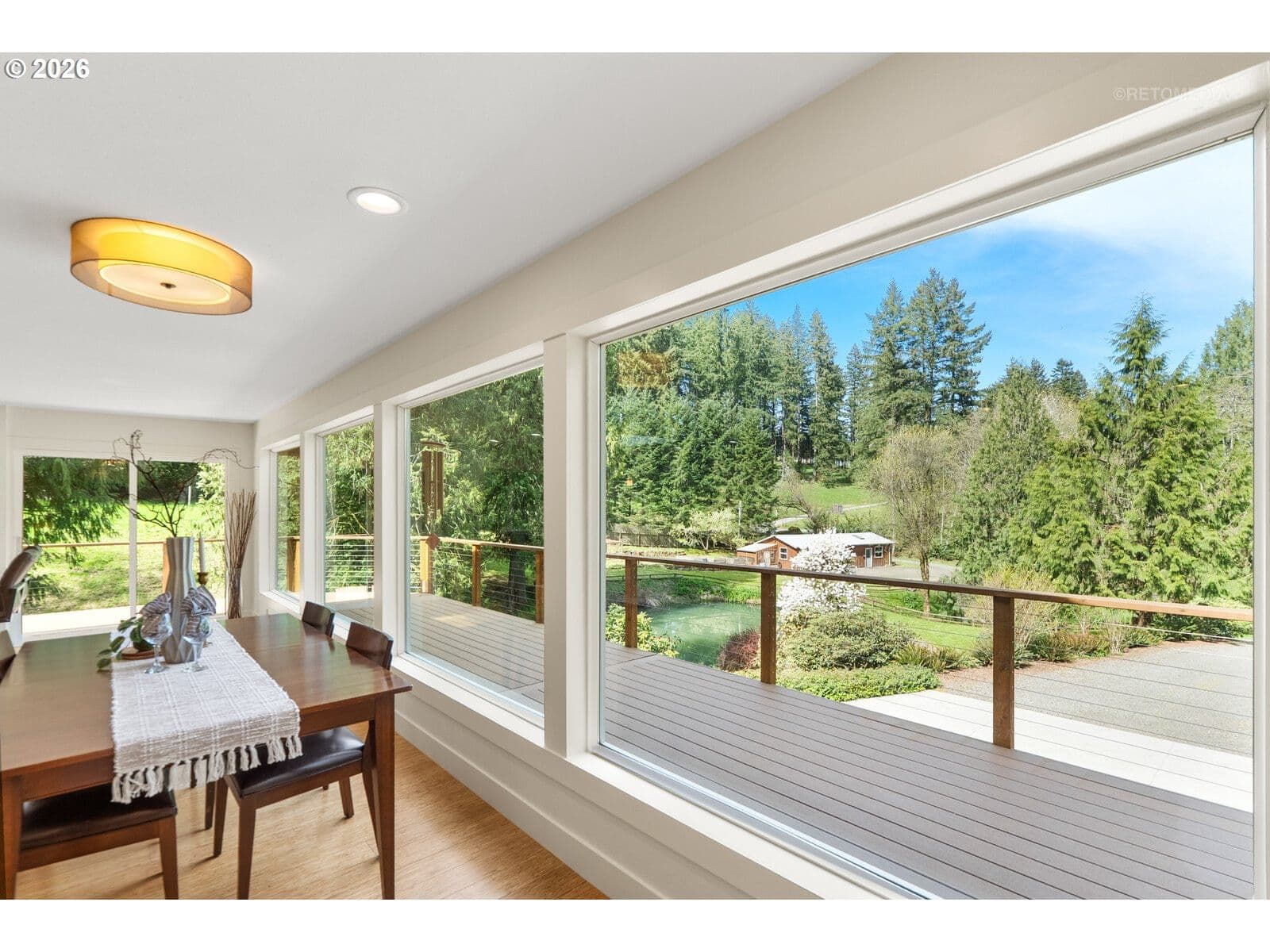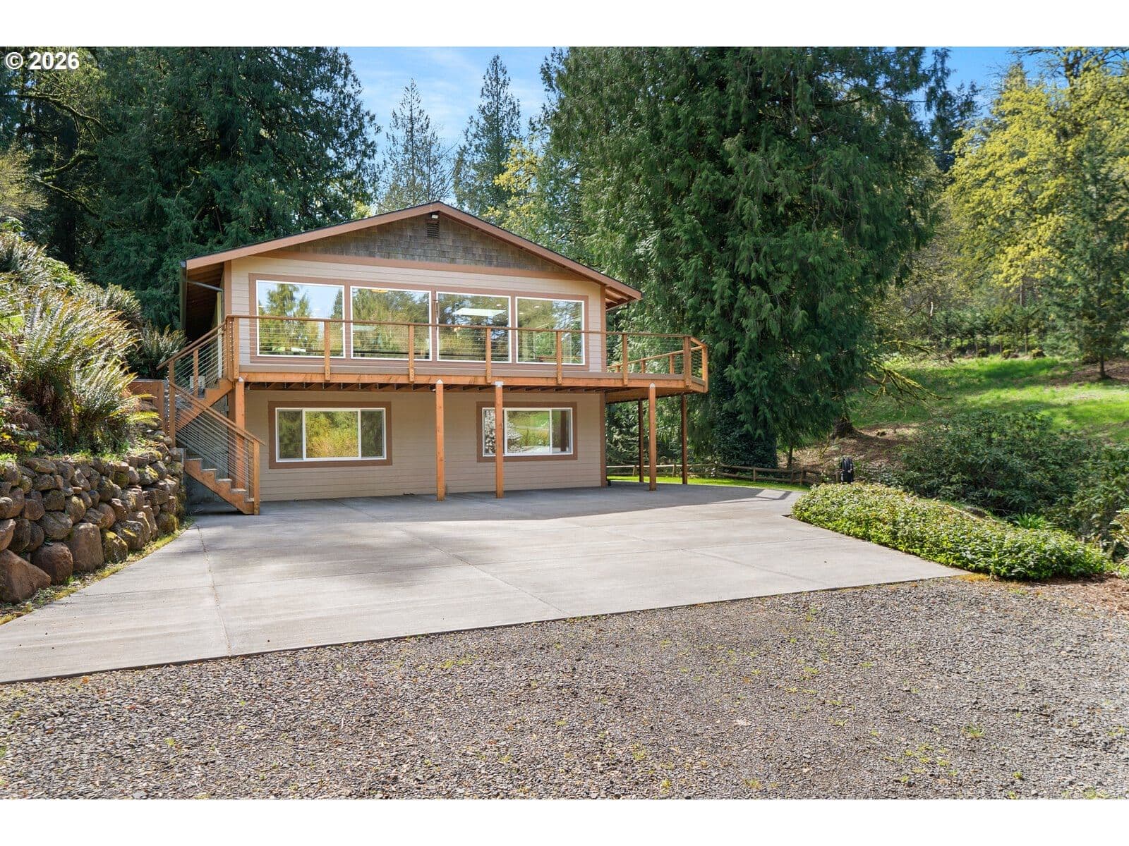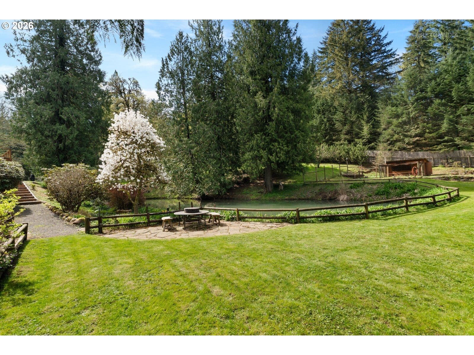 A private sanctuary at the edge of Newberg and Sherwood, this custom 4 bed, 3 bath estate offers over 3,300 square feet and the kind of privacy most people only dream about. Behind a gated entrance, 7 park-like acres live far larger as the property sits adjacent to an 80 acre protected forest area, giving you endless views and peace. The land here invites you to explore, unwind, and play with a gorgeous creek fed private pond, waterfall, chicken coop, hot tub, private trails for hiking or ATVs, and open spaces under a canopy of trees that change with every season. Extensively refreshed inside and out, this custom home is designed to pull the outdoors in with walls of windows, vaulted living spaces, timeless quality updates, and a natural flow that works just as well for quiet mornings as it does for hosting a crowd. Recent major upgrades, including the furnace, deck, and driveway, mean the big projects are already handled so you can simply enjoy the home and focus on your next adventure. A detached flex space expands how you live and work, offering an ideal executive office, creative studio, guest space, or potential bunkhouse, plus additional shop area for projects and storage. Outside, the land invites you to explore, unwind, and play with a gorgeous creek fed private pond, waterfall, chicken coop, hot tub, and open spaces under a canopy of trees that change with every season. Tucked in the heart of Oregon wine country, you are less than 10 minutes to The Allison Inn & Spa and acclaimed area vineyards, with about a 35 minute drive to Portland for commuting, dining, and culture. This is rare, refined country living, with nearby Newberg and Sherwood Oregon amenities making life here feel balanced; schedule a visit, walk the property and experience the magic yourself. Versatile detached flex building offering bonus space along w/adjoining shop, ideal for office, studio, possible future guest overflow or bunkhouse, plus storage for tools, toys and year round projects. The den is heated/finished and features 376 SF