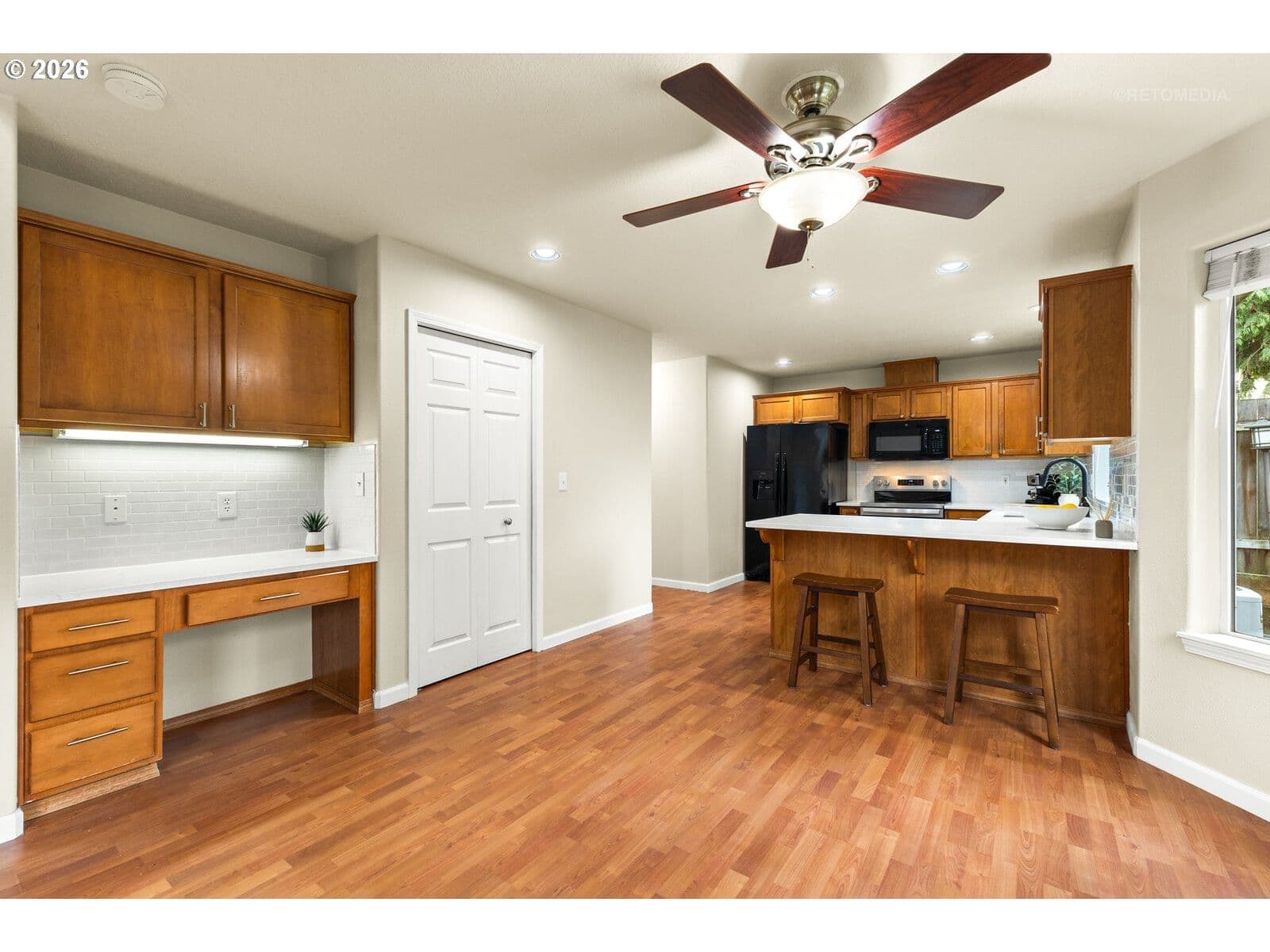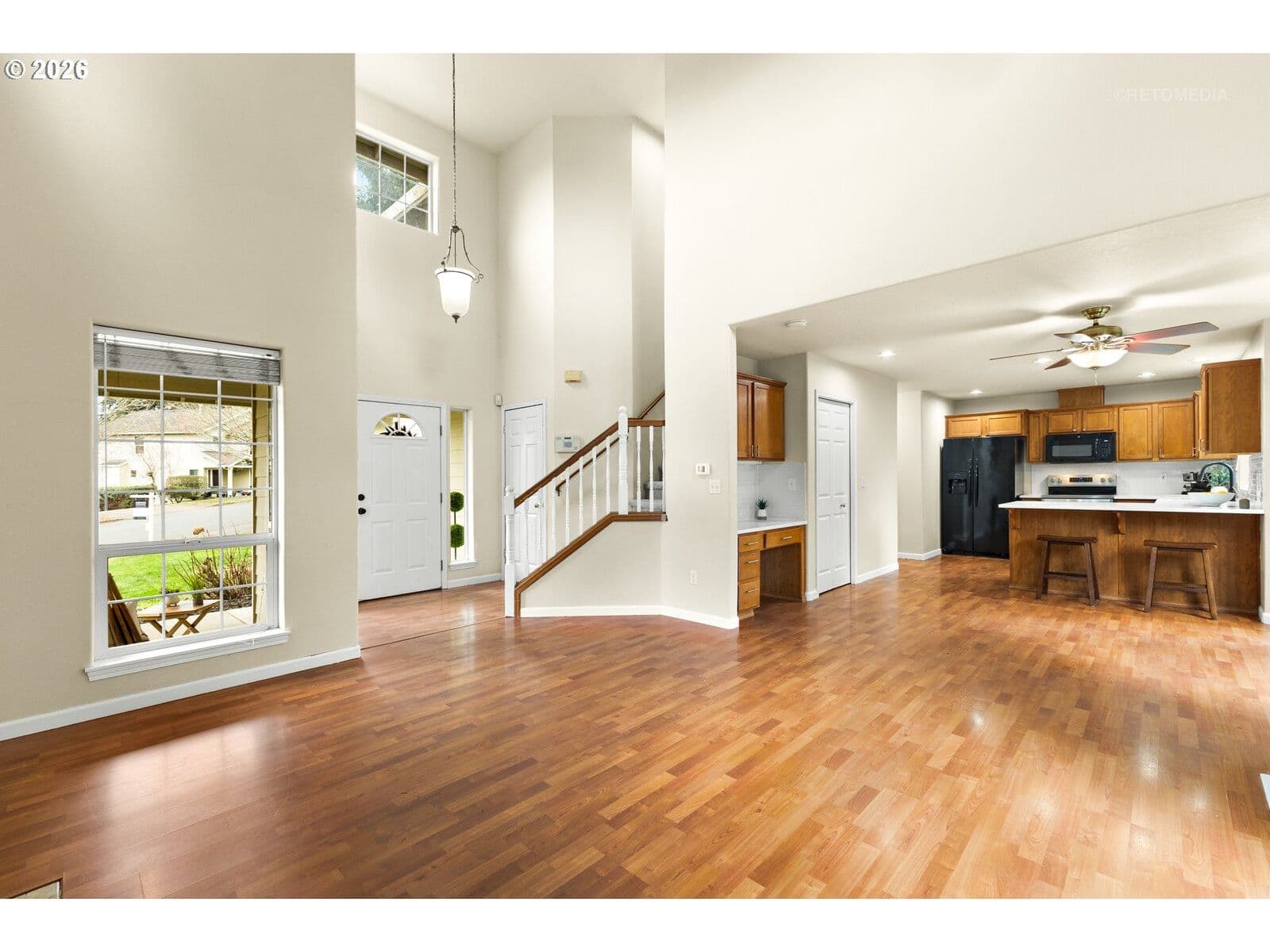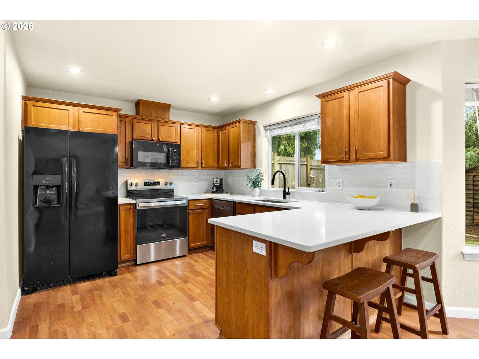 Turn the key and fall in love! Refreshed, refined, and absolutely charming, this Sherwood home is perfectly positioned at the edge of a quiet cul-de-sac with newly updated living spaces and the peace of mind of a new roof! The eye-catching two-story entry welcomes you with soaring ceilings and sun-filled walls of windows. A contemporary gas fireplace serves as a stylish focal point, ideal for cozy evenings with a book, friends or your favorite show! The newly refreshed kitchen features new quartz counters, a full-height subway tile backsplash, updated hardware, and a brand-new range. Generous counter space, pantry storage, backyard views, and all appliances included make everyday life easy! A handy office-study nook with upper and lower cabinetry, a stylishly updated powder bath, and a main-level laundry with washer and dryer complete the main floor. Upstairs, the private primary suite offers large windows, peaceful tree views, a walk-in closet, and a spacious bathroom with a freshly painted dual-sink vanity and walk-in shower with new glass door. Two additional well-sized bedrooms each feature a reading nook, complemented by a refreshed hall bath with single-sink vanity and tub-shower combination. New carpet throughout the upper-level living areas adds comfort and style. Outside, the fully fenced backyard is a peaceful escape with a patio, yard, raised beds, and tool shed, ready for relaxing, playing, or gardening. Additional features include central air conditioning and an attached two-car garage. Additional new updates include refreshed bathroom cabinetry, fixtures, and lighting, new carpet, fresh paint, and a new roof (September 2025)! Located in a coveted Sherwood neighborhood, enjoy small-town charm, tree-lined streets, and community spirit with easy access to Old Town, schools, restaurants, shopping, local wineries, parks, and more! Comfort, style, and move-in-ready living, with freshly updated spaces that make everyday life feel easy!