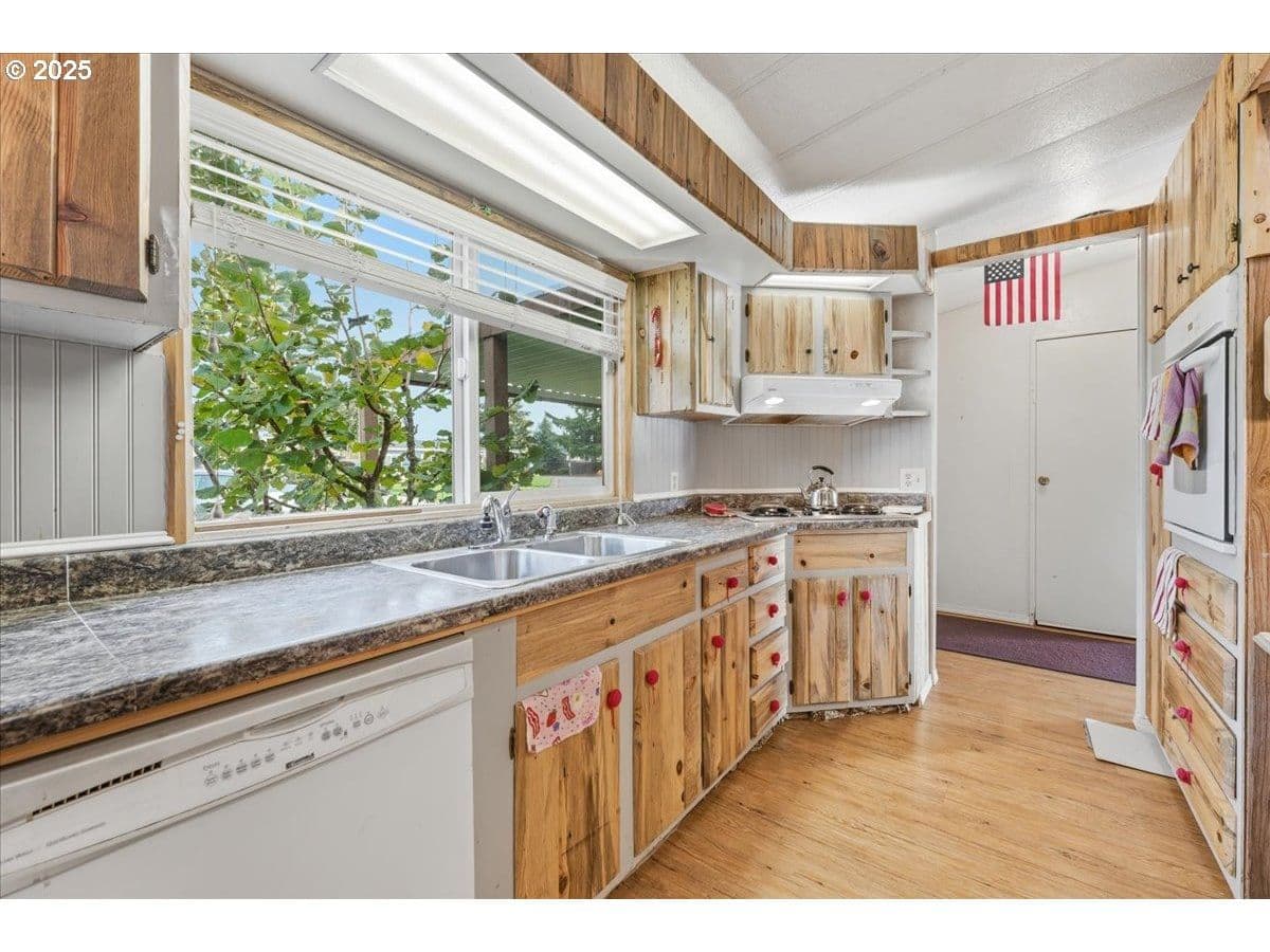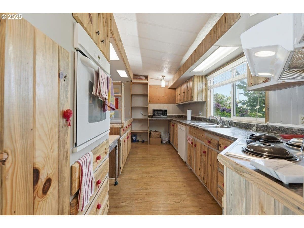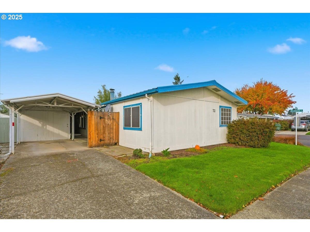 Welcome to this beautifully maintained 3 bedroom, 2 bath home in a desirable gated 55+ community! Set on a spacious corner lot, this property offers an inviting open-concept layout with a formal dining area, separate living and family rooms, and a cozy wood-burning fireplace. The primary suite features a charming clawfoot tub, ideal for relaxing after a long day. Also this home boasts a durable hi-rib roof, an updated heat pump & water heater (2014), updated furnace, a factory-installed wood-burning fireplace, enclosed front porch, large rear deck, a wired shop, extra parking, and sprinkler system! All electrical was just serviced in 2021. Enjoy the community’s fantastic amenities, including a pool, common area party/meeting room, and secure gated entrance. Water, sewer, and garbage are included with the space rent, adding convenience and value. Pride of ownership shows throughout this well cared for home, come see all it has to offer!