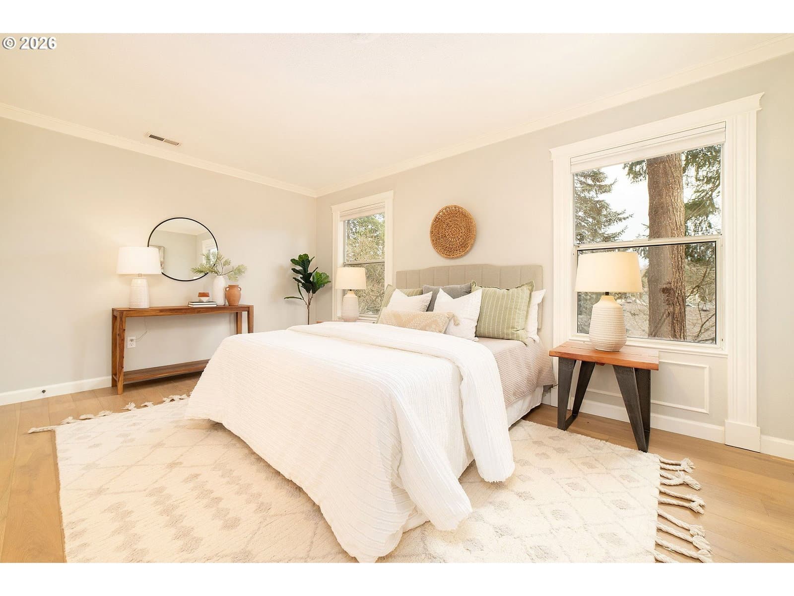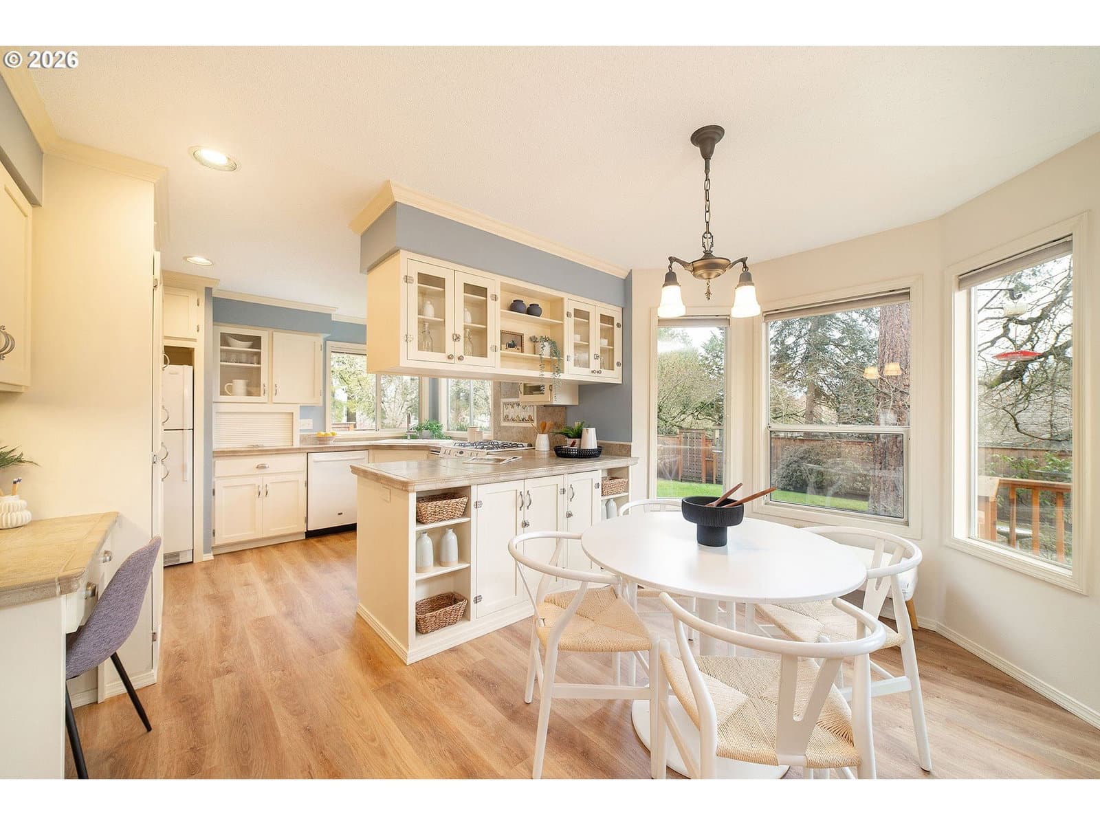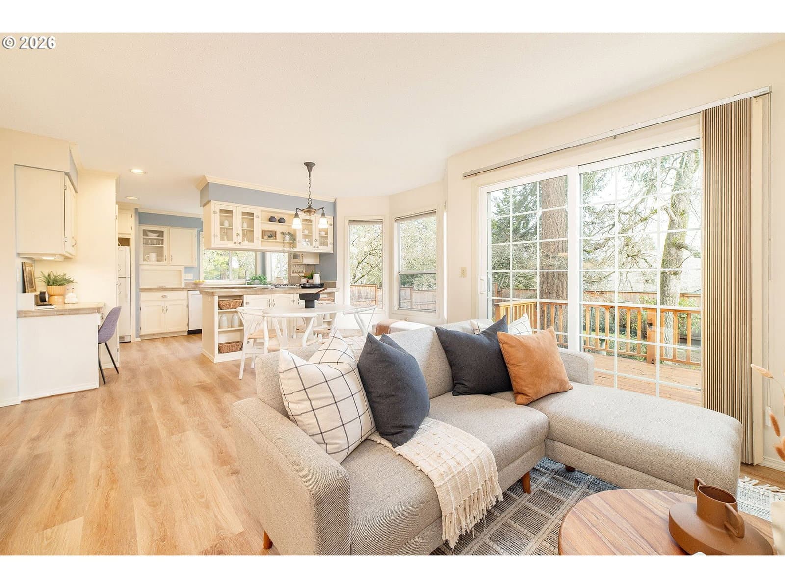 Meticulously maintained home on a picturesque corner lot in a desirable Beaverton neighborhood. The well-designed floor plan lives comfortably, with soaring vaulted ceilings that create an immediate sense of space and light upon entry. Lovingly owned for 30 years, this home clearly reflects pride of ownership throughout. Refinished hardwood floors welcome you at the front of the home, while the rest of the house has been thoughtfully updated with all new flooring. The seller invested in top-quality upgrades, including a beautifully crafted juniper wood deck, durable 50-year tile roof, highly efficient 97% furnace, new water heater, fresh interior paint, and front-and-rear landscape sprinklers. The remodeled primary suite is a true retreat, featuring a spa-like Pottery Barn–inspired bathroom with heated tile floors that blends modern comfort with timeless craftsmanship. Set on an oversized lot, the property offers generous outdoor space and a peaceful buffer from neighboring homes. Truly move-in ready and exceptionally cared for, this home delivers enduring quality, comfort, and style.