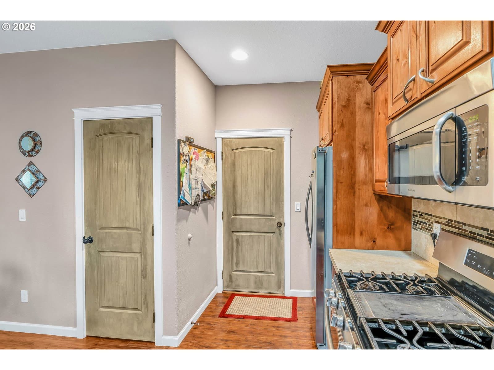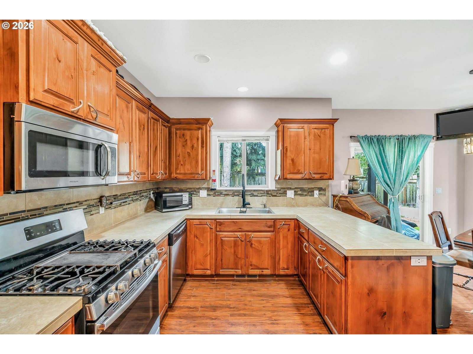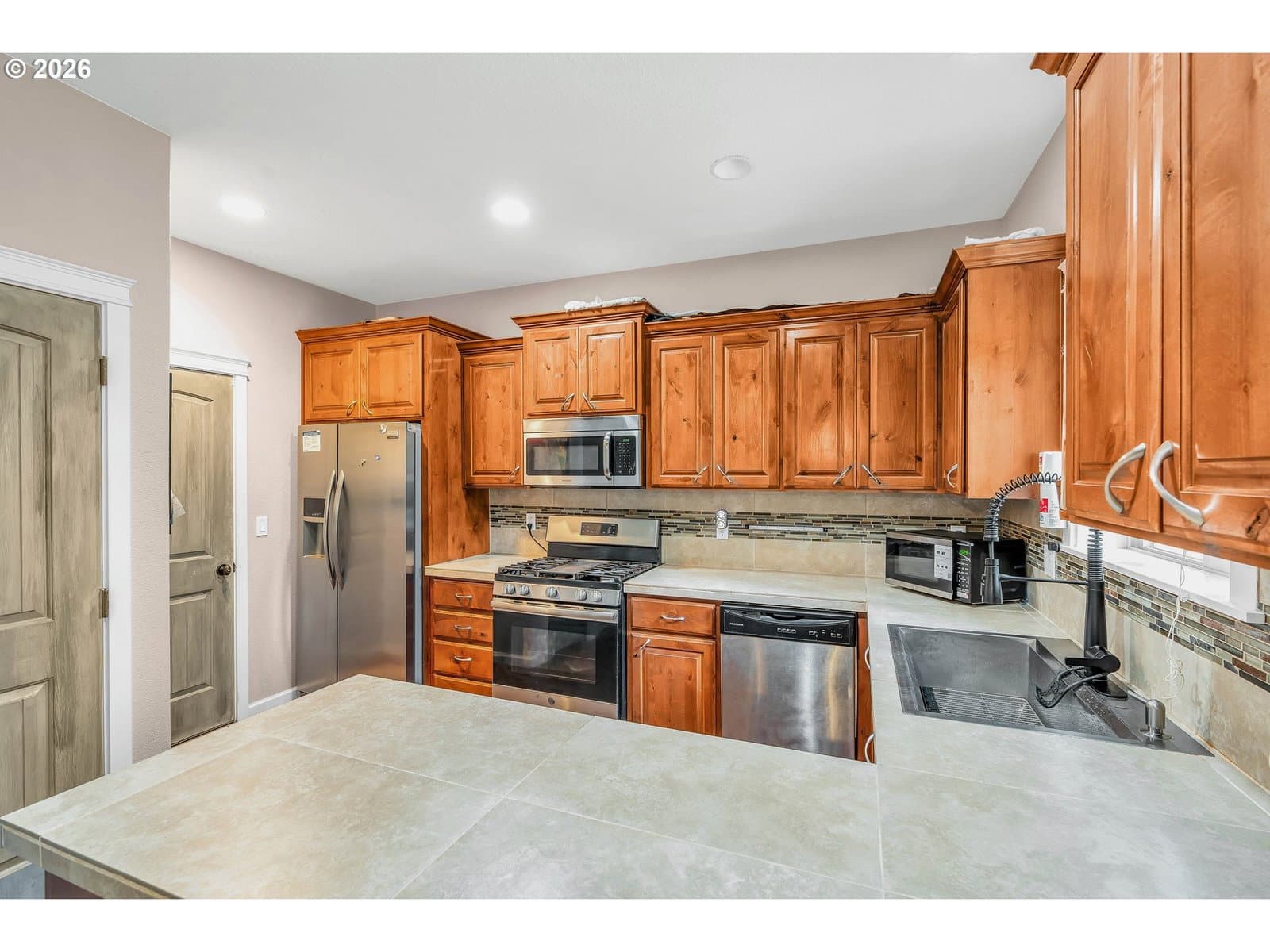 Welcome to this charming single-level home nestled in the heart of Yamhill, where small-town warmth meets the beauty of Oregon wine country. Full of character and thoughtful design, this home offers a bright, inviting layout with hardwood floors flowing through the living and dining areas, creating a warm and timeless feel.The spacious living room is a true centerpiece, featuring soaring vaulted ceilings, abundant natural light, and a cozy fireplace that makes the space feel both open and comfortable. The dining area is perfectly positioned with sliding doors that lead to the backyard, creating an effortless indoor-outdoor connection—ideal for entertaining or enjoying quiet evenings at home.The primary suite continues the airy feel with its own vaulted ceilings and ceiling fan, along with a private ensuite bathroom complete with double sinks and a walk-in shower.Step outside to a generously sized, fully fenced yard shaded by mature, beautiful trees—offering privacy, space to play or garden, and a peaceful setting to unwind. A covered patio extends your living space outdoors, making it easy to enjoy the outdoors year-round.Located in a quiet, welcoming community known for its rolling farmland and proximity to renowned vineyards, this home offers the perfect balance of tranquility and convenience—all just a short drive to the charm of downtown Yamhill and surrounding wine country destinations.A rare opportunity to own a home that blends comfort, character, and the relaxed lifestyle of Oregon’s countryside.