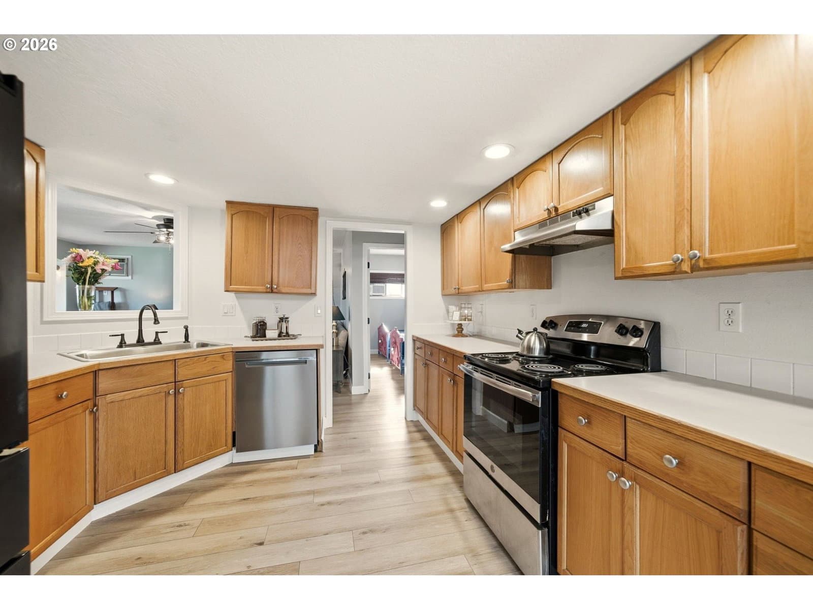 Welcome home! This new to market charmer is a single level ranch in Oak Grove, optimizing for privacy and ease of living. This 3 bed 1.5 bath has a wonderful layout- open and bright, with a living room that flows directly into the kitchen + dining area, and has a dedicated den nook. All three bedrooms are tucked down a hallway for privacy, while a practical mudroom + half bath connects to the garage. Enjoy two fully fenced yards, a covered patio, large deck, and even a water feature! This home is on a quiet dead-end street, and is blocks to everything: the scenic Trolley Trail, Oak Grove Boat Ramp and Willamette River recreation, MAX line for commuting, and downtown Milwaukie. Being in Clackamas county, you’ll enjoy lower taxes too. Schedule your private showing today!