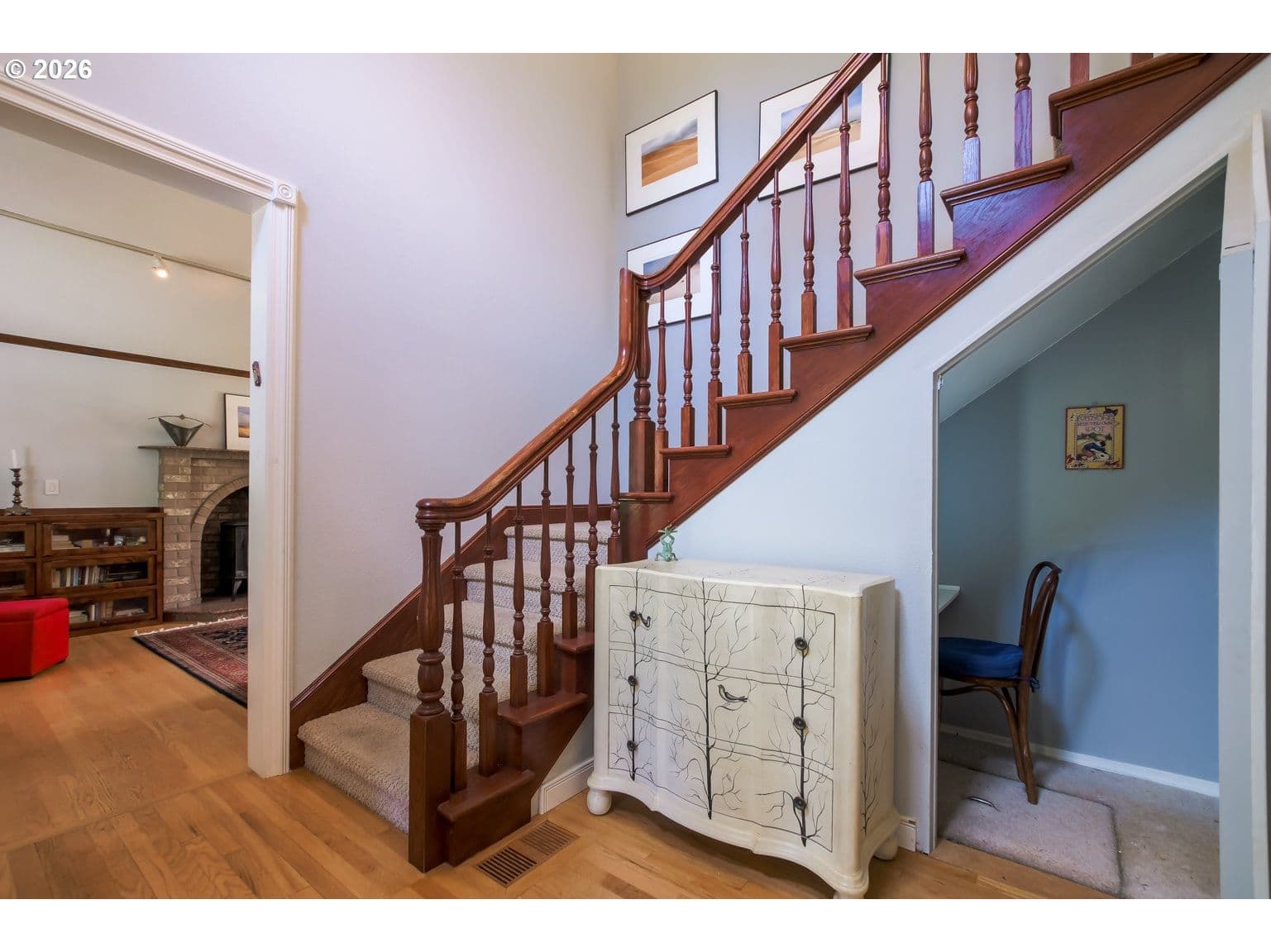 This home has been filled with love & laughter, and is now ready to continue that legacy with new owners. This stately home is on its own private road with amazing features like the oversized primary bedroom on the main floor, & a beautiful sunroom off the family room for year-round enjoyment of dappled sunlight, peace, and privacy. From the front covered porch to the large back patio, you will love the outdoor living this home provides. Inside the grand 2-story entryway, you will journey to the vaulted living room & formal dining room on your left, or the family room on your right. The dining room has double doors to your back patio and leads to your kitchen, which overlooks the patio with seasonal views of our local hills & features abundant cabinets and storage. You won't lack places for all your food & cooking/baking needs here. From the kitchen, you can also enter the very spacious family room with a bay window overlooking the circular driveway, which still has room for another dining area or whatever works best for you. The vaulted primary bedroom on the main floor is at the rear of the home with a roomy walk-in closet & bathroom. Upstairs, you will enjoy 2 more comfortable bedrooms, & another full jack-n-jill bathroom. This home takes advantage of all the natural light with many well-placed windows. On 2.35 acres, there is room to roam & explore. The crown jewel, though, is the 1740 sq ft shop with electric & water, & yes, a setup started for guest quarters. This is a terrific opportunity for possible multi-generational living. There is a driveway next to the home to the shop, and a separate driveway from 219th Street as well. If that wasn't enough, there is also a 224 sq ft pole cover for perfect RV parking, & a carport in the front next to the driveway. There is so much to love & enjoy about this special home & property. I am excited for the lucky buyers who get to continue the joyful legacy that it offers.