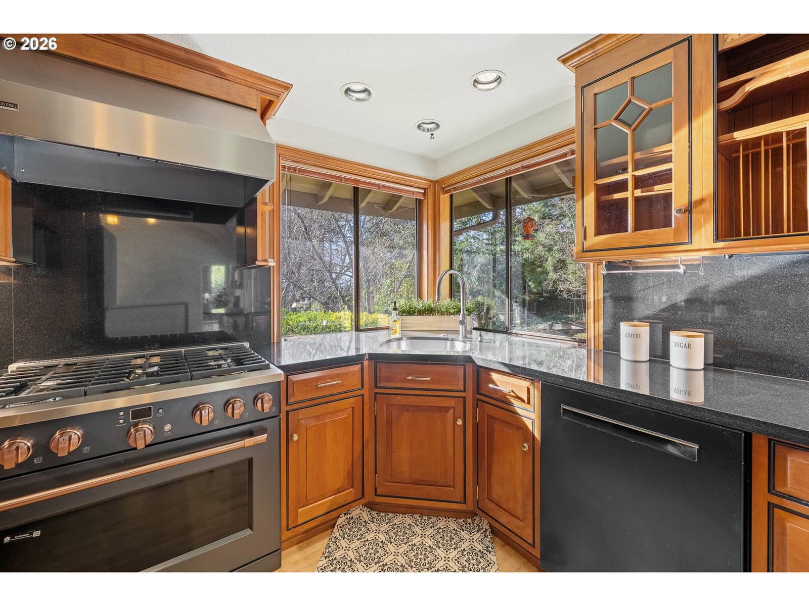 OPEN SAT 1-3 & SUN 12-2! Welcome to this beautifully updated 3-bedroom, 2-bath home in desirable Cedar Mill! Step inside and be greeted by vaulted ceilings and an abundance of natural light from windows throughout the main living area. The formal sunken living room features a cozy fireplace and flows seamlessly into the formal dining area—perfect for entertaining. The custom kitchen is a standout, offering ample cabinetry, a bright eat-in area, and impressive upgrades including a professional GE Café gas range with copper trim (2025), a Samsung French-door refrigerator (2024), and a new microwave (2025). The adjoining family room features a second fireplace and opens to a generous patio, creating an effortless indoor-outdoor living experience.Upstairs, the primary suite features a fully updated ADA-compliant spa-like bathroom with a tiled walk-in shower and towel warmers. A large walk-in closet with custom organizers add convenience and function. Two additional bedrooms offer flexibility for family, guests or a home office. Step outside to a spacious stamped concrete and flagstone patio, raised garden beds, and espaliered fruit trees throughout the backyard. A detached studio/shop and two additional workshop areas in the lower level of the home add exceptional versatility. The studio/shop features a separate power panel, full electric, air conditioning, and plumbing— ideal for hobbies, projects, or home business. Two additional attached sheds add even more storage.Enjoy Cedar Mill amenities including dining, parks, and nearby trails just minutes away plus desirable local schools. Comfortable, stylish, and on a quiet cul-de-sac, don't miss your chance at this stunning home. Schedule a showing today!