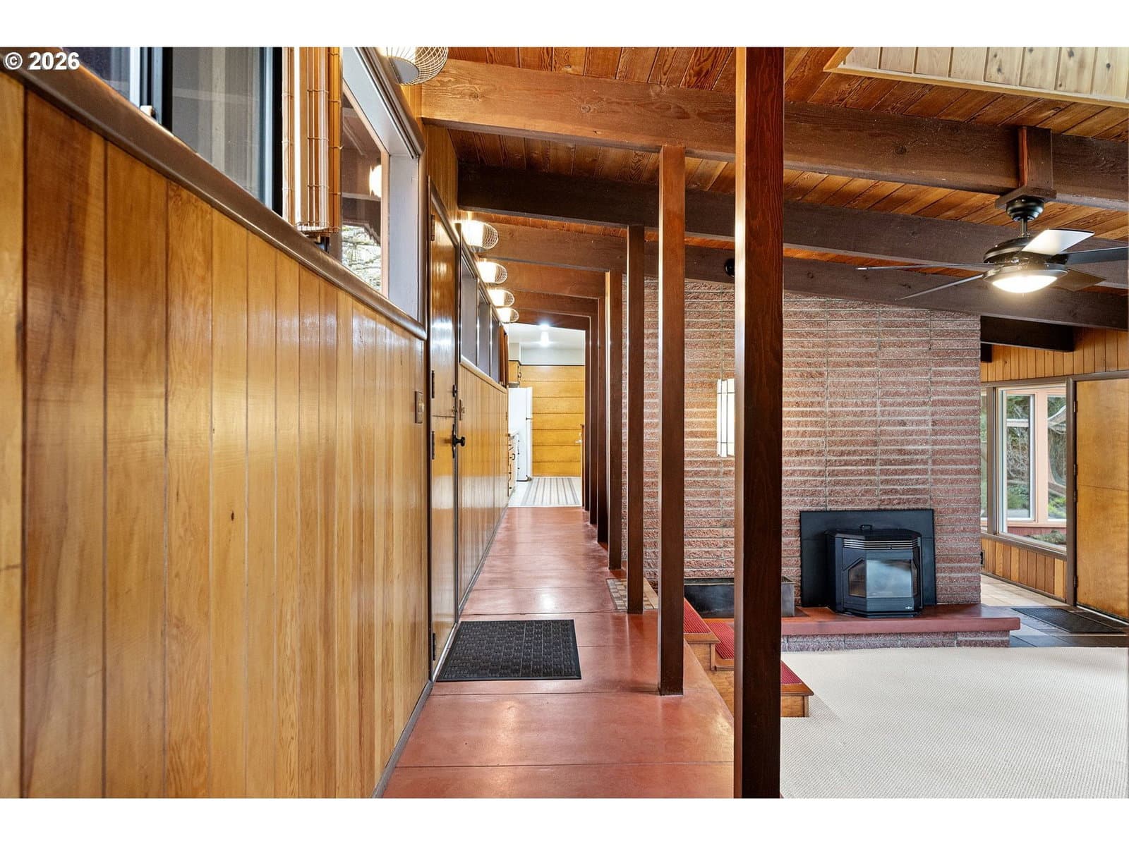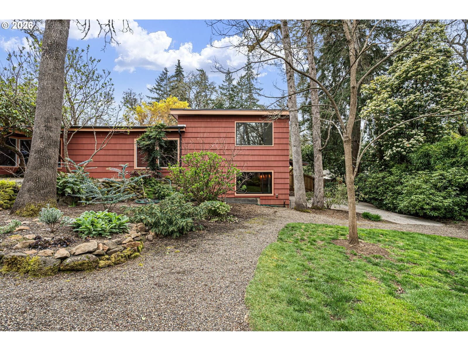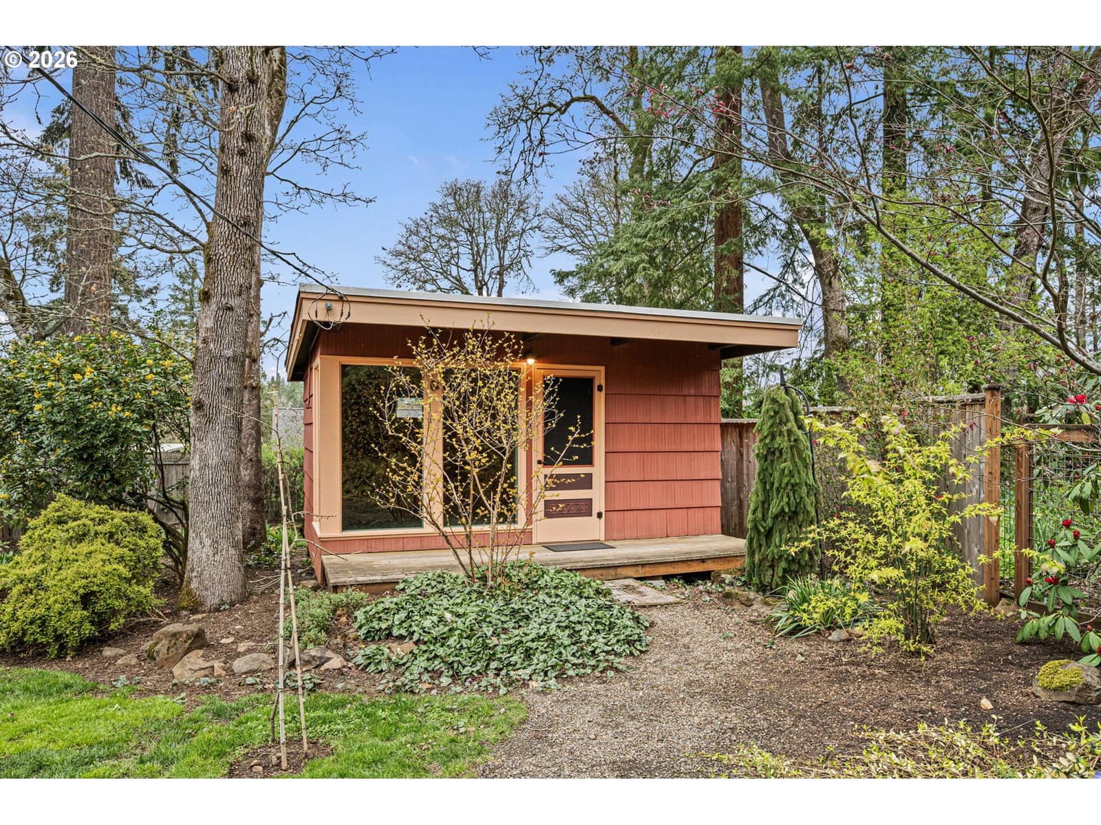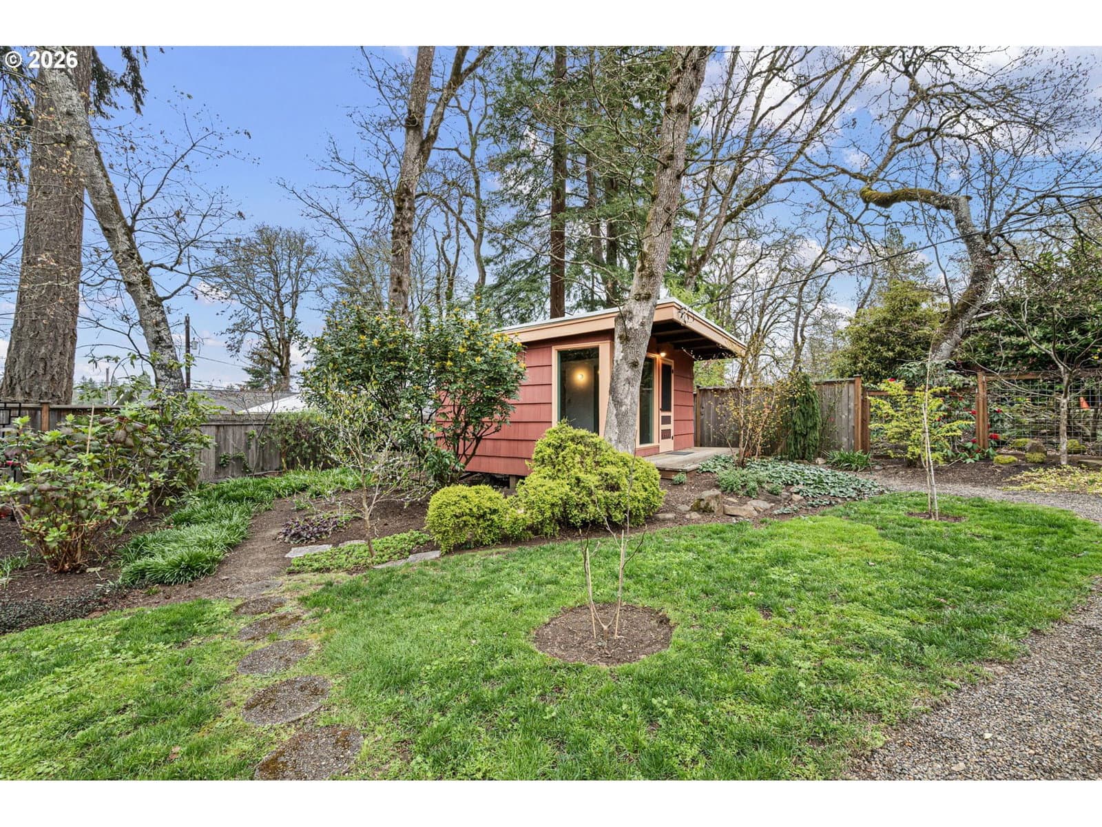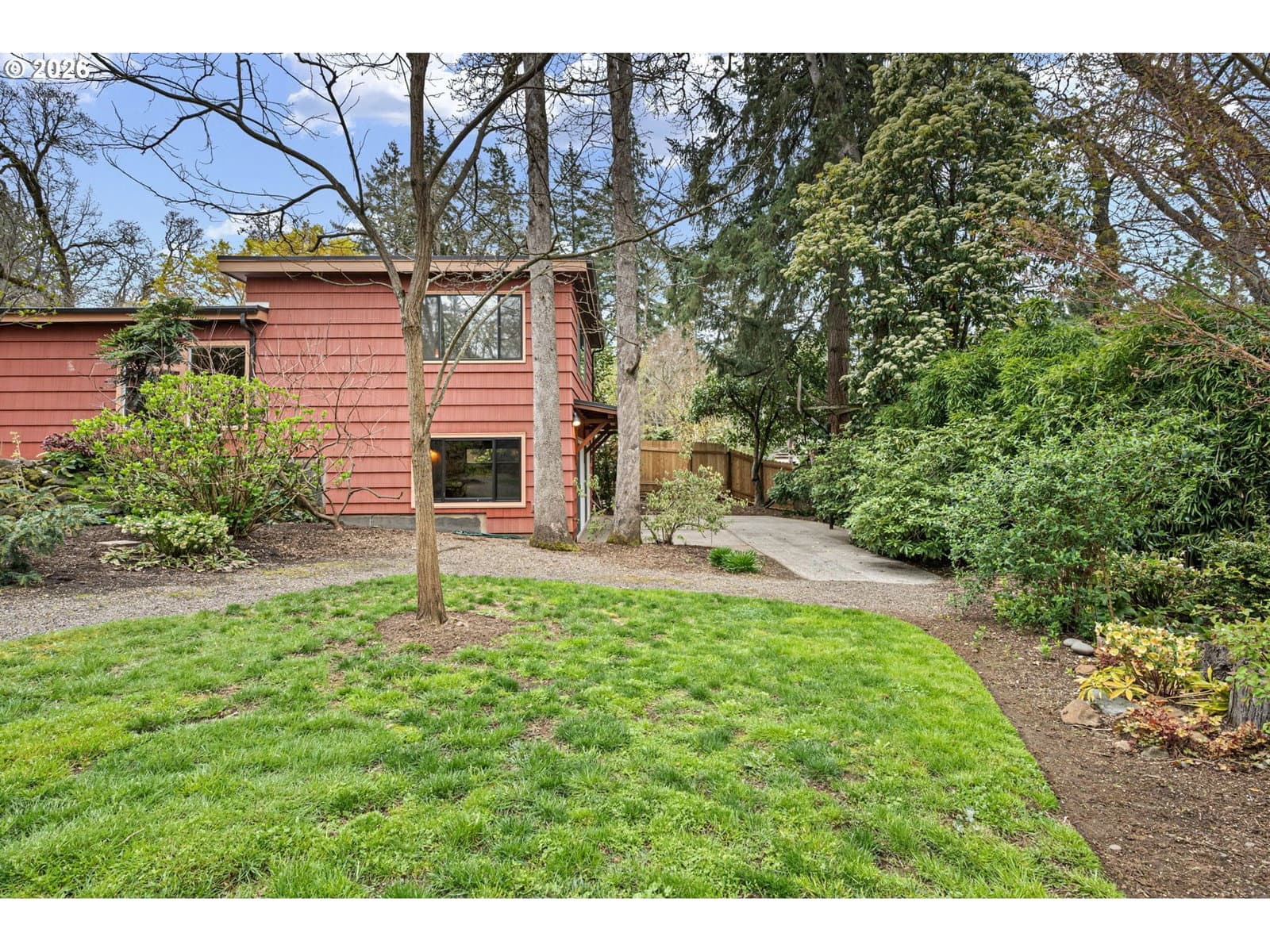 Beautiful architecture! This 2465sf mid-century modern home has a well thought out floorplan with three bedrooms, two bathrooms and a large bonus room with double sliders to patio, built ins and a wet bar. Mature landscape created and maintained with much care and with an eye for detail with a natural park like feel. Attached garage. New carpet and interior paint, pellet stove, all appliance stay and an abundance of storage throughout. Two Dutch doors and many original details. New roof in 2025. Detached 224 square foot studio ready for your imagination: use for work, guests, rest or play. A former lumber dealer's own custom built home in 1952, old growth tongue and groove walls and open beam ceilings. Truly a special home in a great location, please preview to fully appreciate all that 75 W 35th Place has to offer.