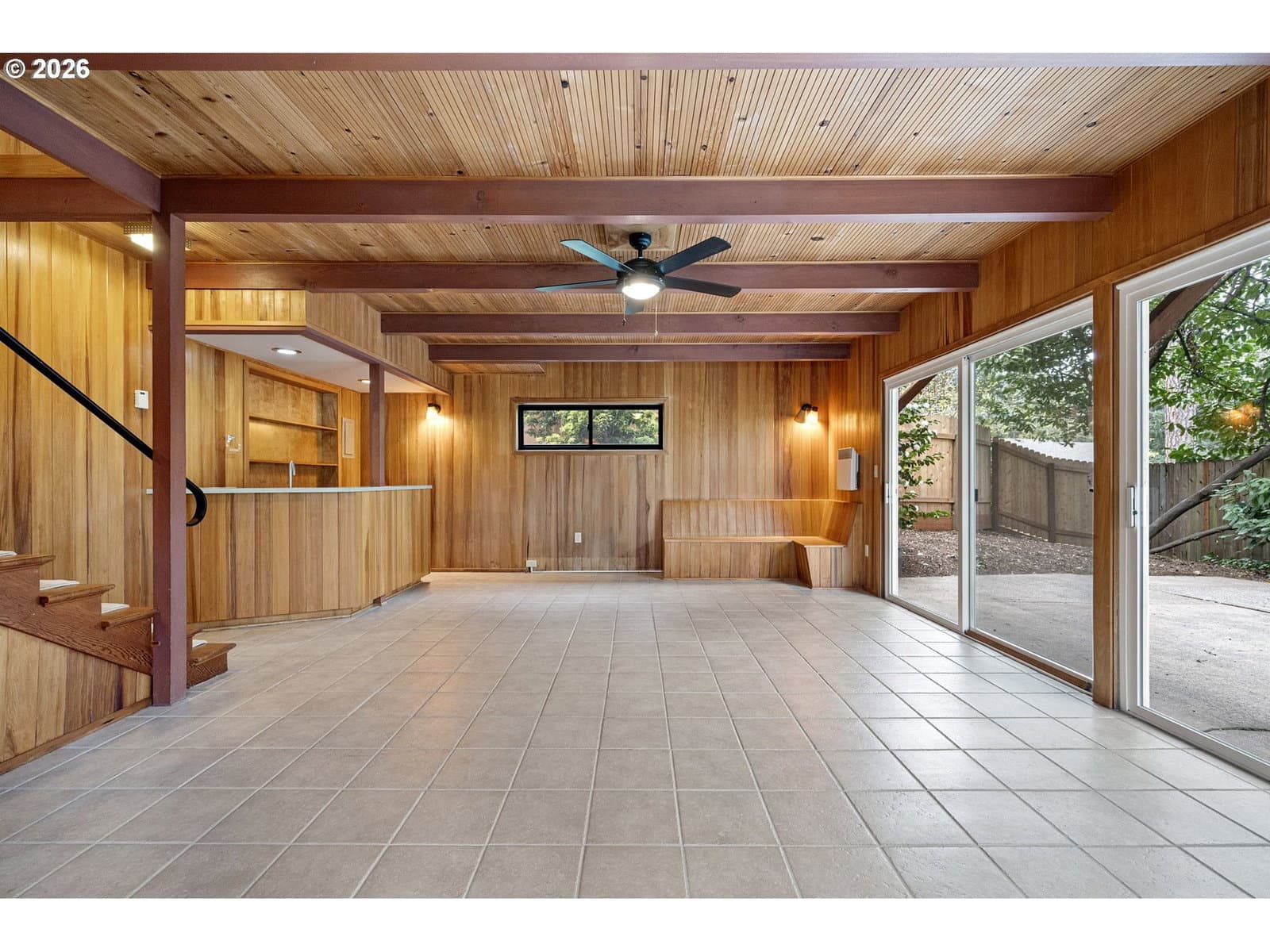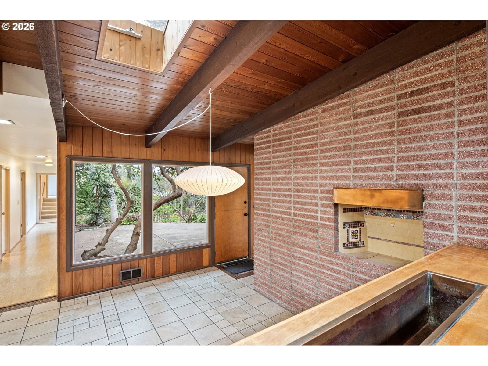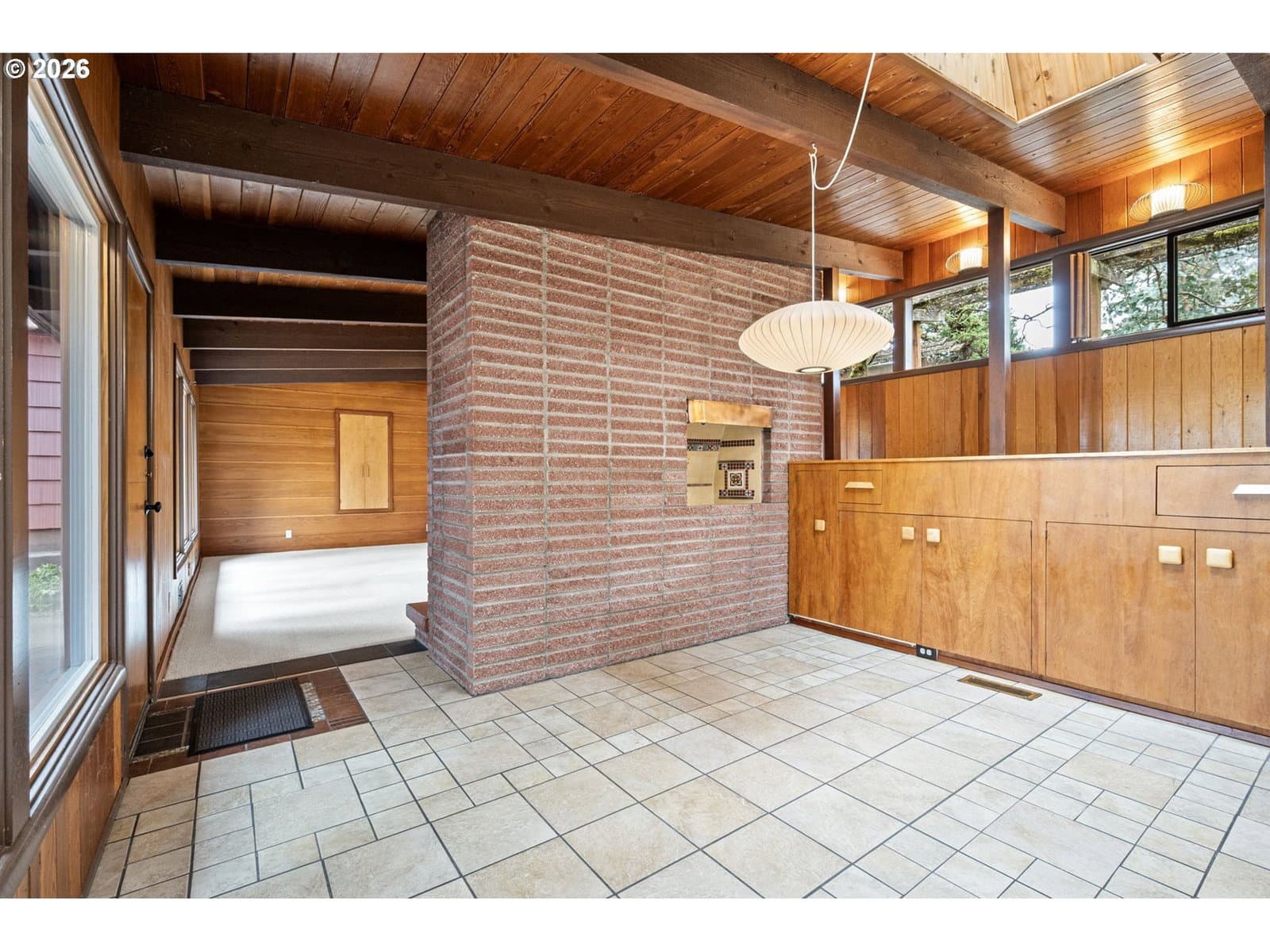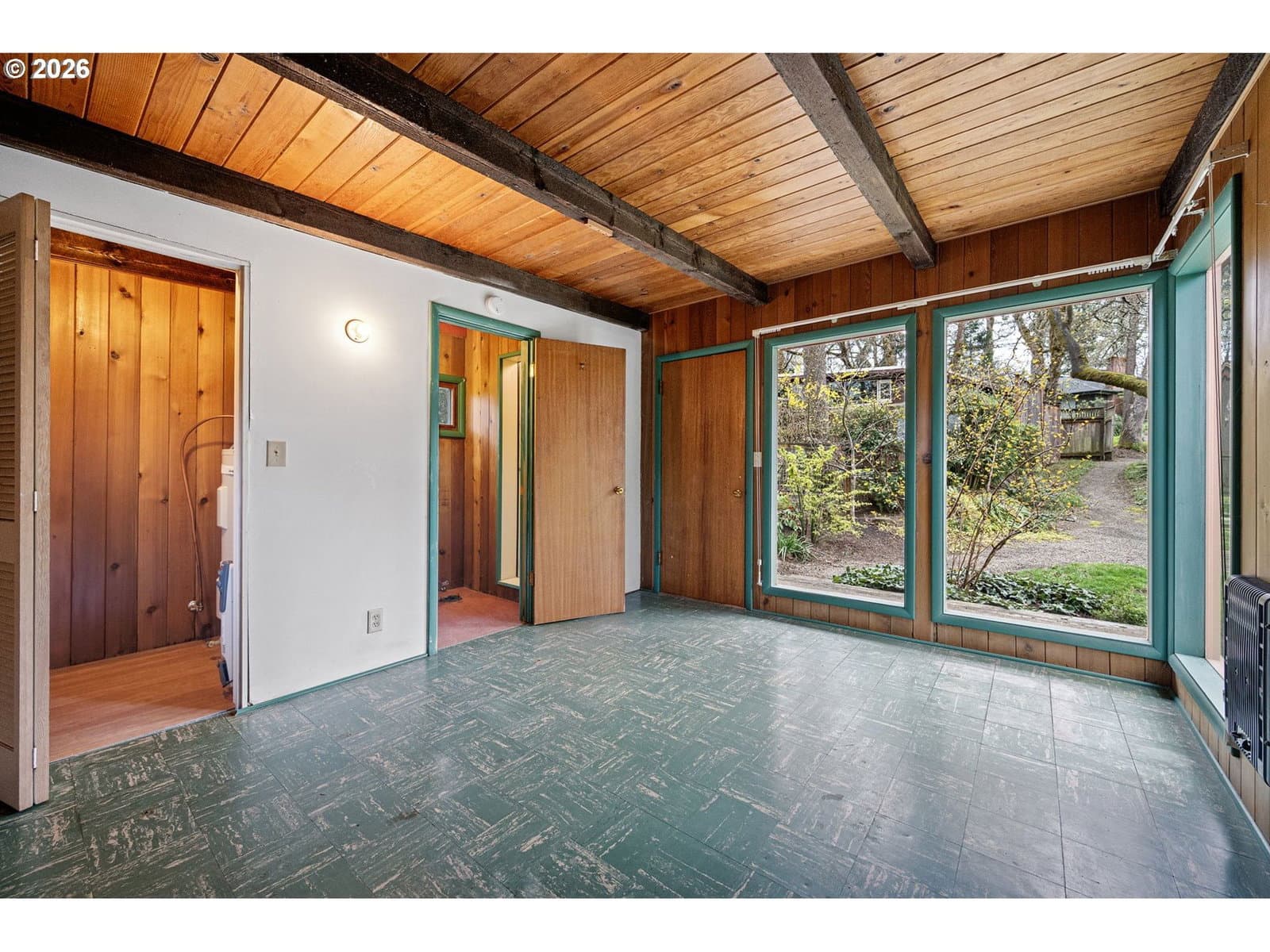 Beautiful architecture! This 2465sf mid-century modern home has a well thought out floorplan with three bedrooms, two bathrooms and a large bonus room with double sliders to patio, built ins and a wet bar. Mature landscape created and maintained with much care and with an eye for detail with a natural park like feel. Attached garage. New carpet and interior paint, pellet stove, all appliance stay and an abundance of storage throughout. Two Dutch doors and many original details. New roof in 2025. Detached 224 square foot studio ready for your imagination: use for work, guests, rest or play. A former lumber dealer's own custom built home in 1952, old growth tongue and groove walls and open beam ceilings. Truly a special home in a great location, please preview to fully appreciate all that 75 W 35th Place has to offer.