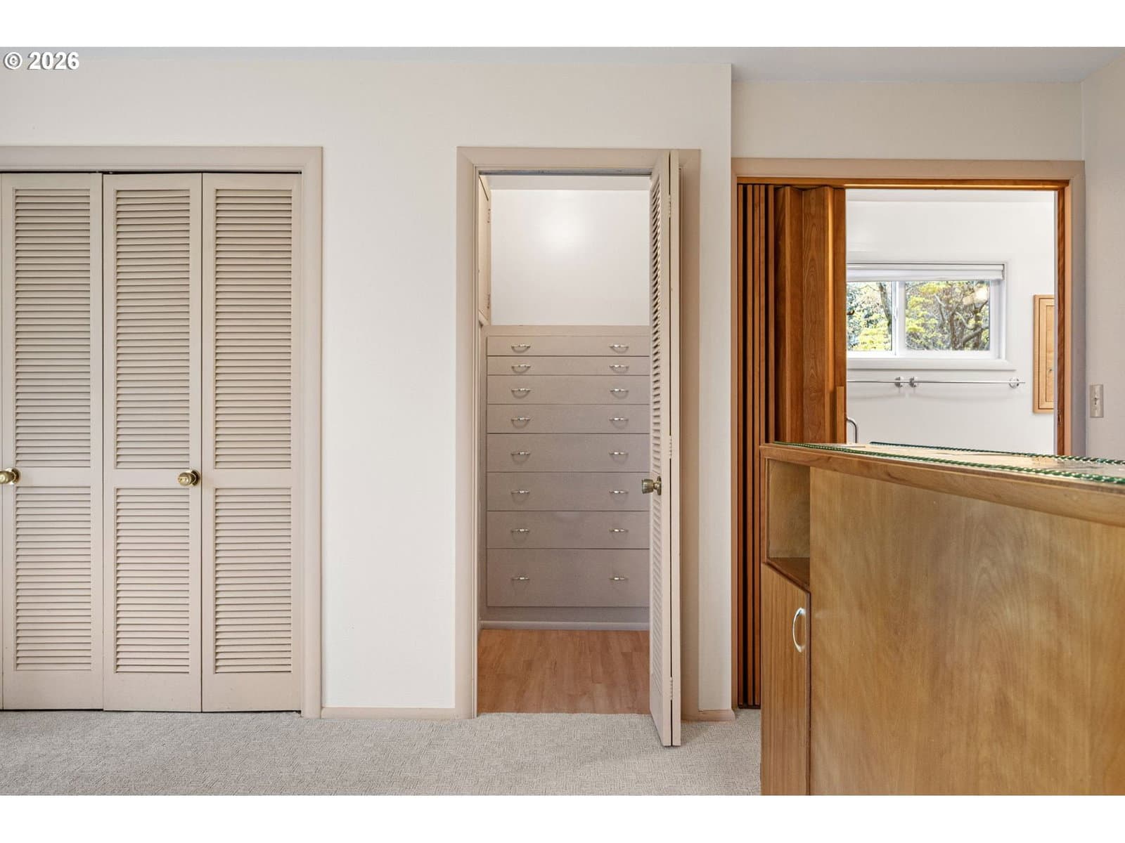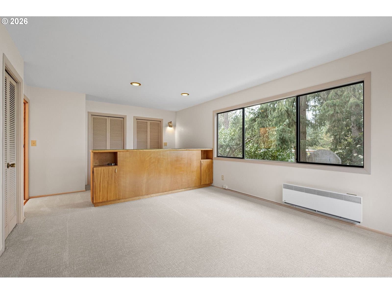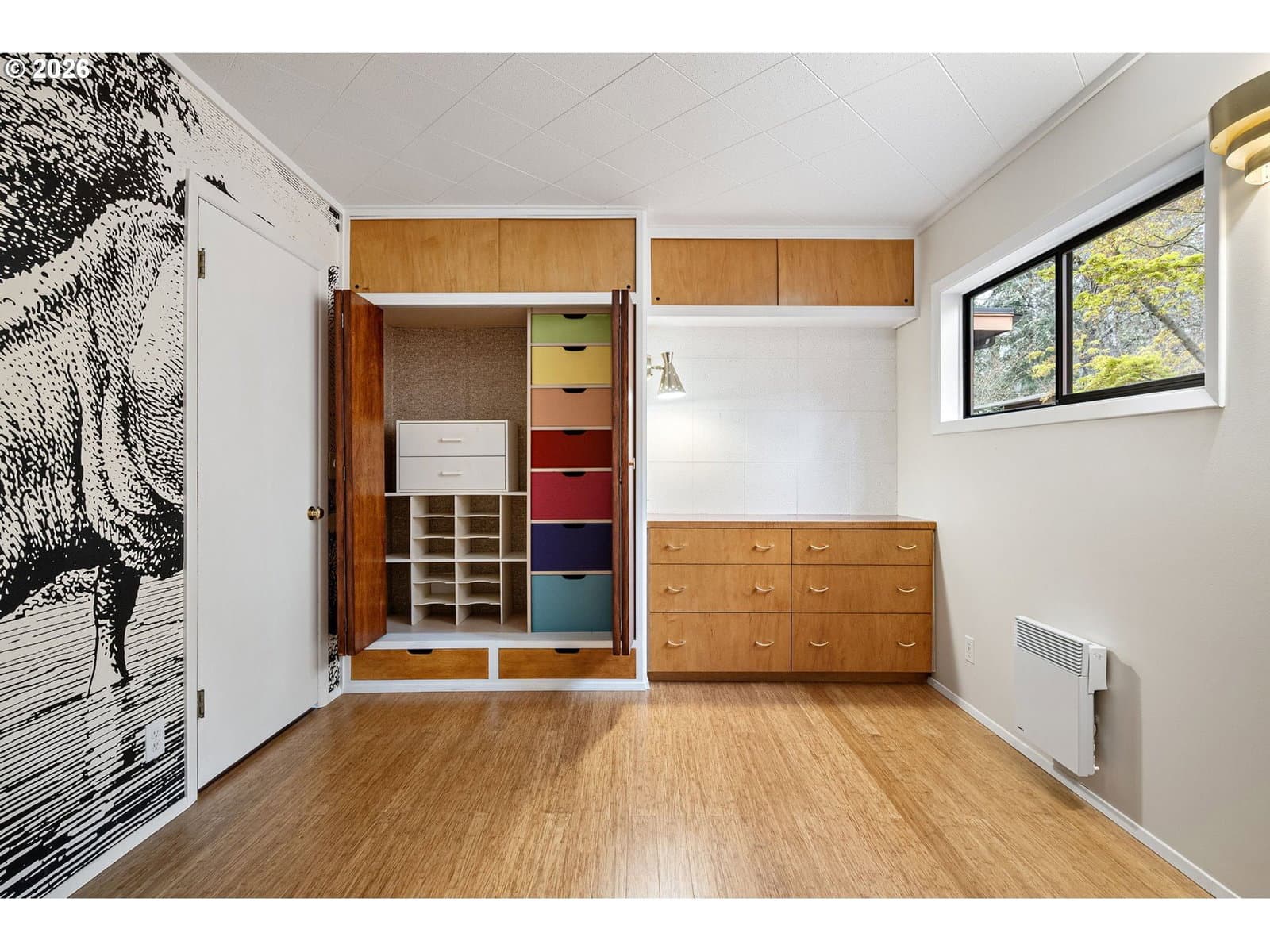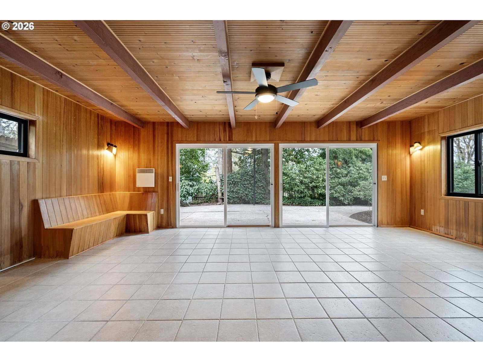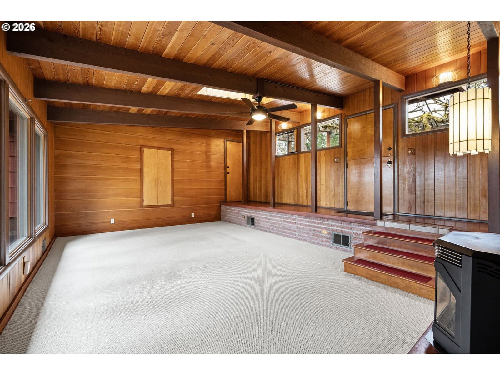 Beautiful architecture! This 2465sf mid-century modern home has a well thought out floorplan with three bedrooms, two bathrooms and a large bonus room with double sliders to patio, built ins and a wet bar. Mature landscape created and maintained with much care and with an eye for detail with a natural park like feel. Attached garage. New carpet and interior paint, pellet stove, all appliance stay and an abundance of storage throughout. Two Dutch doors and many original details. New roof in 2025. Detached 224 square foot studio ready for your imagination: use for work, guests, rest or play. A former lumber dealer's own custom built home in 1952, old growth tongue and groove walls and open beam ceilings. Truly a special home in a great location, please preview to fully appreciate all that 75 W 35th Place has to offer.