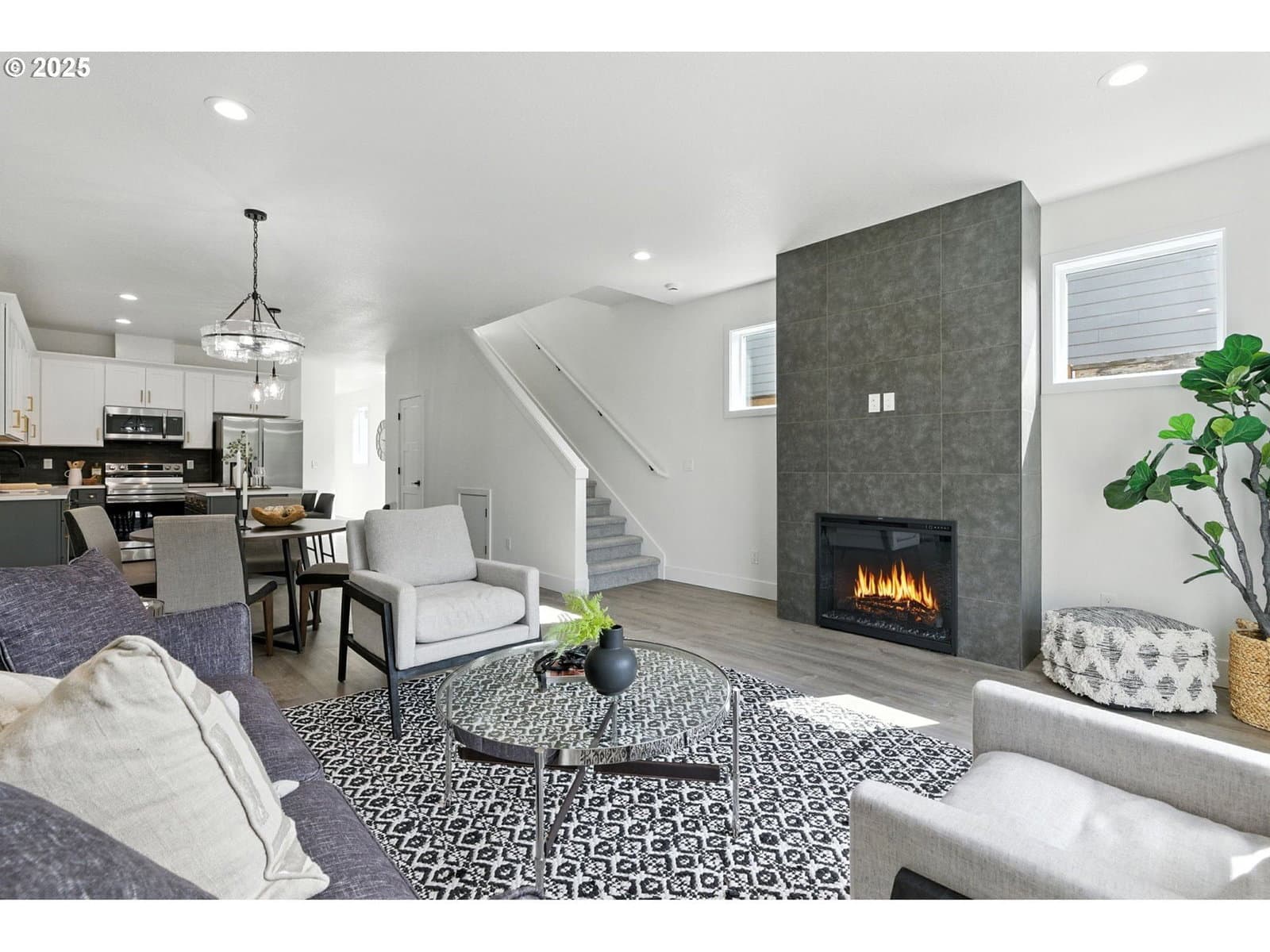 New Construction designed with modern comfort and efficient living in mind ~ 3 bedroom, 2.5 bath ~ Open-concept main level ~ Stylish kitchen with: quartz countertops; tile backsplash; island; pantry; SS appliances ~ Great room with tiled fireplace ~ Upstairs: 3 bedrooms; 2 full baths; laundry room with built-in cabinetry ~ Spacious primary suite: dual walk-in closets; ensuite with walk-in shower and high end finishes ~ Fenced in backyard with concrete patio ~ Energy-efficient home with mini-splits in each room for customizable comfort ~ Solar panel ready ~ Easy access to shopping, dining, public transportation & freeways.