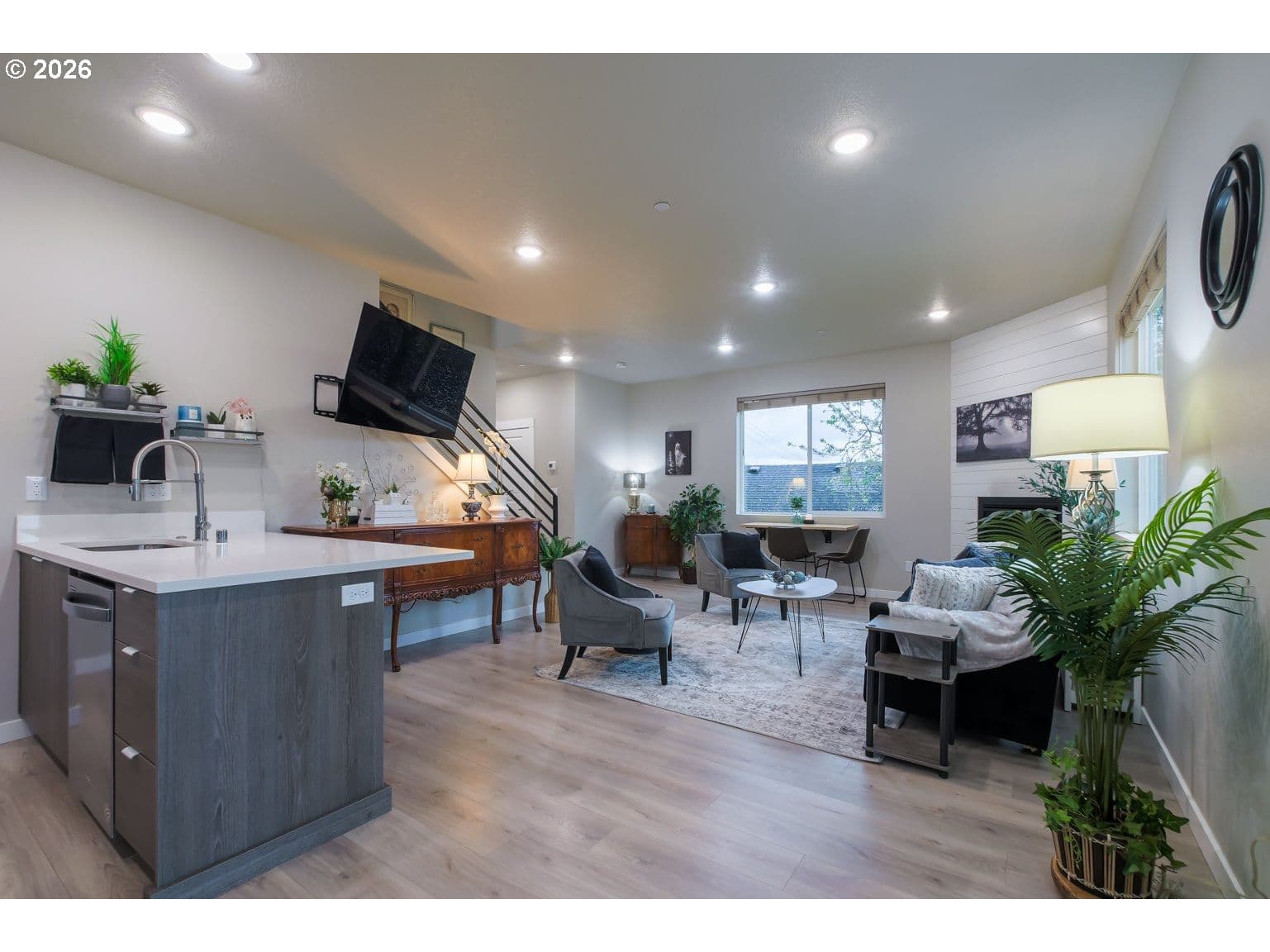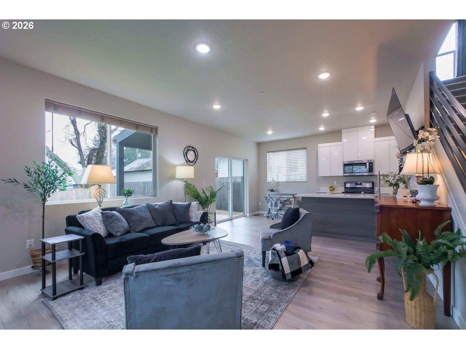 This lovely home is really the 'best of both worlds'. Enjoy a 5-year new home in an established neighborhood with NO HOA's! This 3-bedroom, 2 1/2-bath beauty is only 2 blocks from the newly renovated Crown Park. For the nature lovers, it is also close to Lacamas Lake, Round Lake, & Fallen Leaf Lake, all with great hiking trails. The location of this home is sublime, only about a half mile from vibrant Camas downtown, with shopping & restaurants, and it has easy access to SR 14. No matter what they say, though, location isn't everything. From the moment you enter this immaculate home, you will see what the home truly is: the star of this show. When you open the front door, you are greeted by high ceilings, light from a multitude of windows, and a warm entry that is a perfect 'drop-off' zone for coats & shoes. The great room has a corner gas fireplace with shiplap for that cozy, clean look, LVP flooring, gorgeous southern-facing windows, and an efficiently modern kitchen with quartz counters & an expansive pantry. Journey up the stairs with a sleek metal railing to the open 2nd floor. The south-facing primary bedroom enjoys a peek-a-boo river view, a walk-in closet, & a primary bath with quartz counters & dual sinks. There are 2 comfortable bedrooms on the front of the home, another full bathroom, & a convenient laundry room upstairs... where all your laundry is. This sweet home enjoys a well-thought-out floor plan for ease of living & peace of mind with interior fire sprinklers. My favorite part of the home is all the windows, both upstairs & downstairs, that really showcase the natural light... even on gray days, there are no dark corners in this spotless home. As our weather begins to warm, you will really enjoy the covered back patio, fully enclosed, fenced yard, and central air conditioning. If you are looking for a home with the 'full package', you have found it!