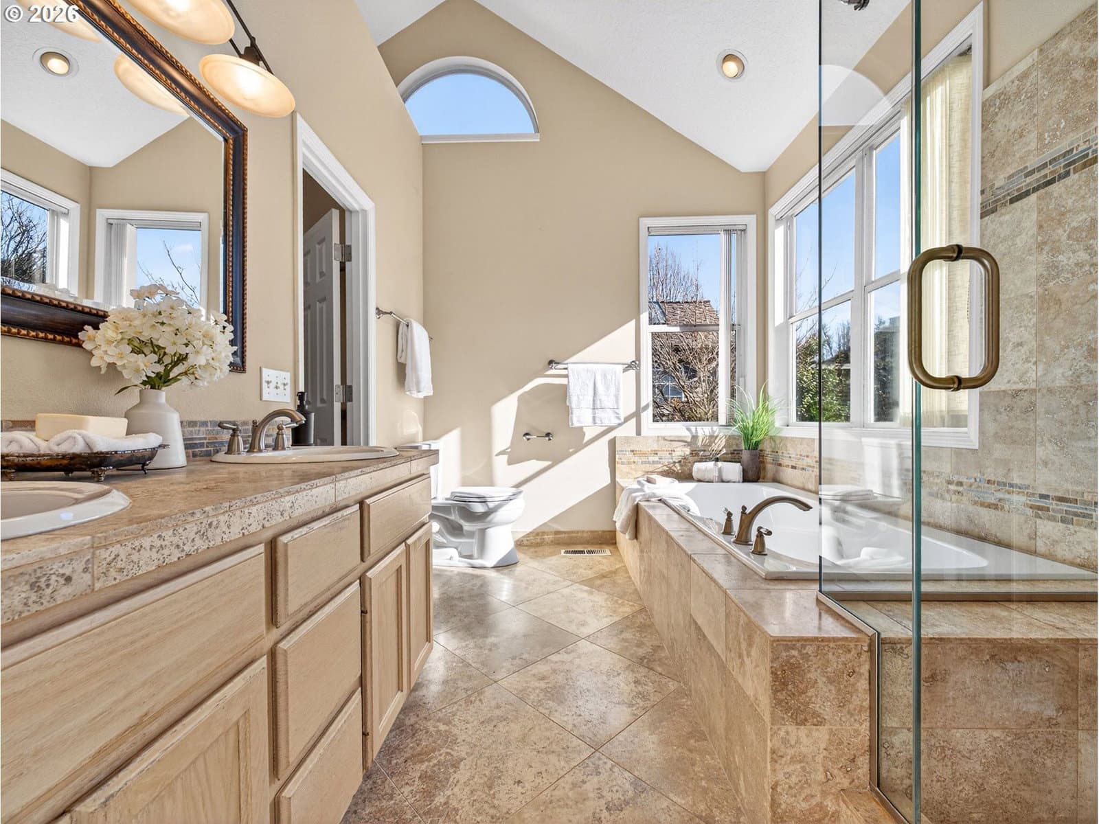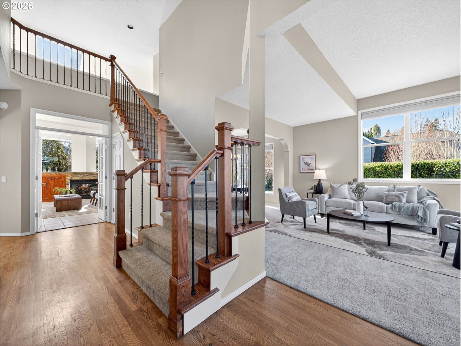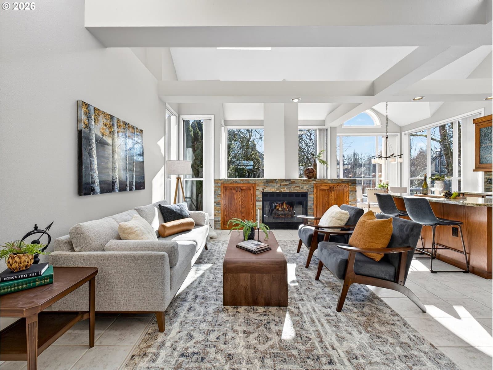 4 bdrm + den. Beautiful Fox Hill home w/main-level living features light-filled vaulted living spaces, large windows & skylights. Living room opens to formal dining room. Updated kitchen has slab granite countertops, ss applcs, soft close cabinetry, eating island & walk-in pantry. Sunny nook w/floor-to-ceiling windows & door to large patio. Family room has French doors, vaulted beamed ceiling, stone fireplace & built-ins. Main level primary suite has updated tiled bathroom w/dual sinks & soaking tub. Main level den w/French doors & nice size closet w/organizer. Versatile bonus room & den work well as additional bedrooms. Fenced backyard w/extended paver patio, grassy area & auto sprinklers. Oversized 3-car garage w/storage closet & 240V for EV Charging. Ring doorbell. Exterior paint (2023). Gas furnace & heat pump (2022). Located near Legacy Meridian Park Hospital, Browns Ferry & Atfalati parks, Tualatin Greenway Trail, Bridgeport Village, commuter transportation, and 1-5 & 1-205 freeways.