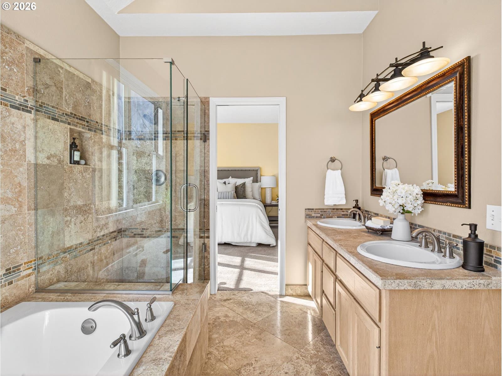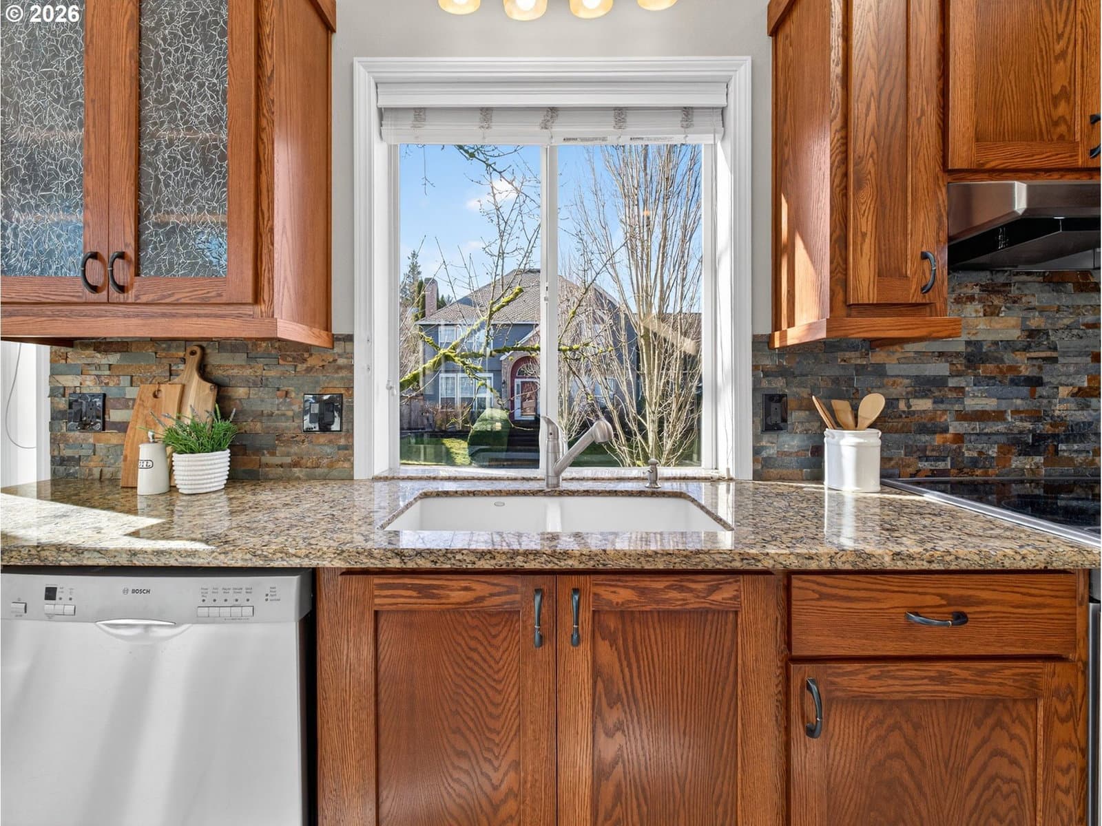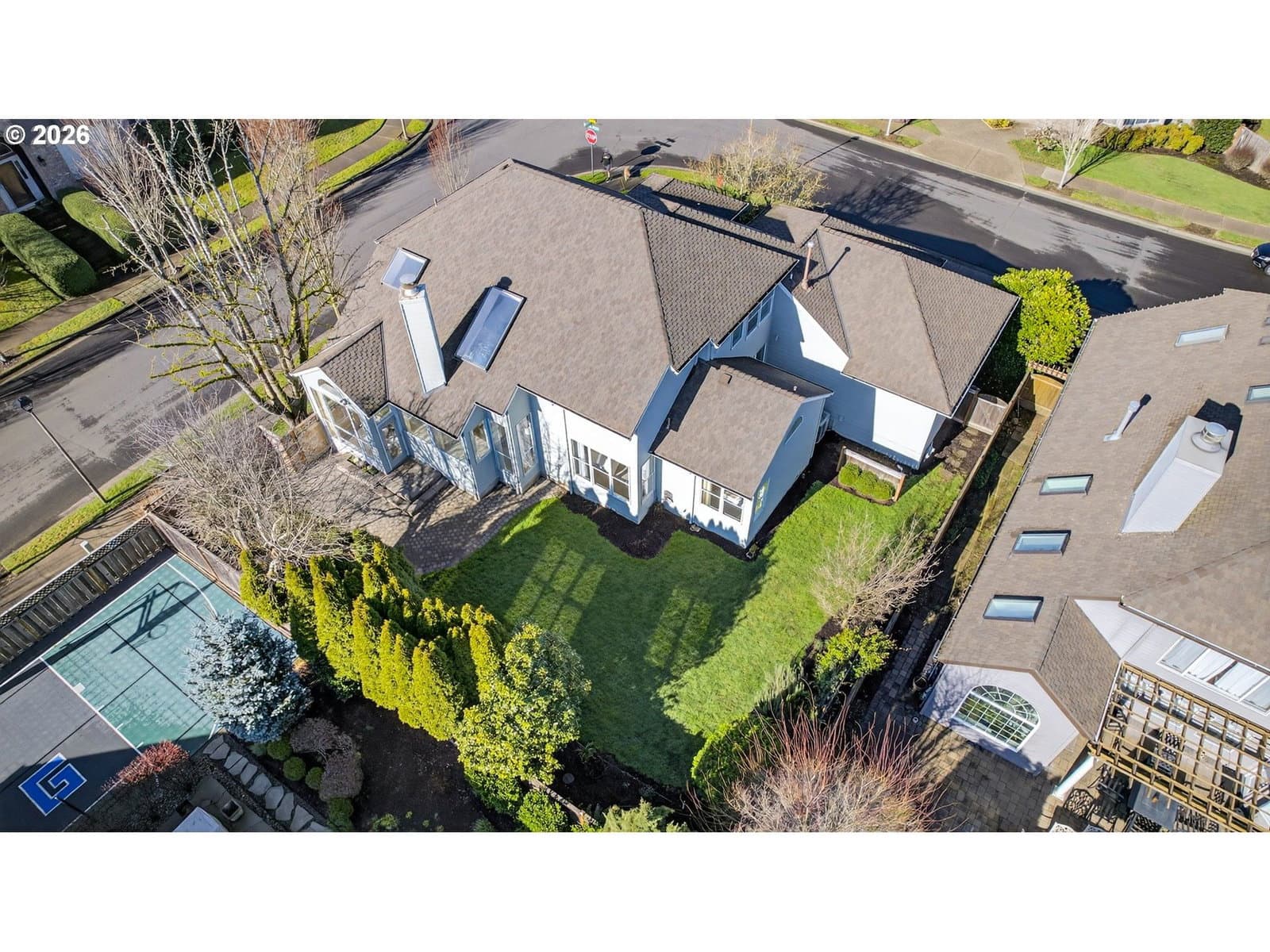 4 bdrm + den. Beautiful Fox Hill home w/main-level living features light-filled vaulted living spaces, large windows & skylights. Living room opens to formal dining room. Updated kitchen has slab granite countertops, ss applcs, soft close cabinetry, eating island & walk-in pantry. Sunny nook w/floor-to-ceiling windows & door to large patio. Family room has French doors, vaulted beamed ceiling, stone fireplace & built-ins. Main level primary suite has updated tiled bathroom w/dual sinks & soaking tub. Main level den w/French doors & nice size closet w/organizer. Versatile bonus room & den work well as additional bedrooms. Fenced backyard w/extended paver patio, grassy area & auto sprinklers. Oversized 3-car garage w/storage closet & 240V for EV Charging. Ring doorbell. Exterior paint (2023). Gas furnace & heat pump (2022). Located near Legacy Meridian Park Hospital, Browns Ferry & Atfalati parks, Tualatin Greenway Trail, Bridgeport Village, commuter transportation, and 1-5 & 1-205 freeways.
